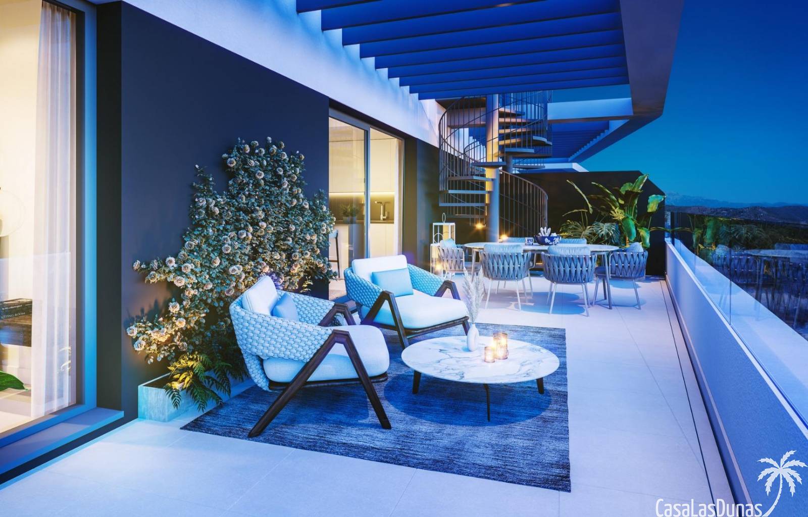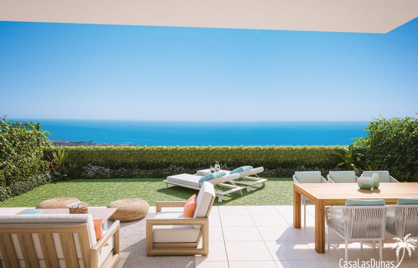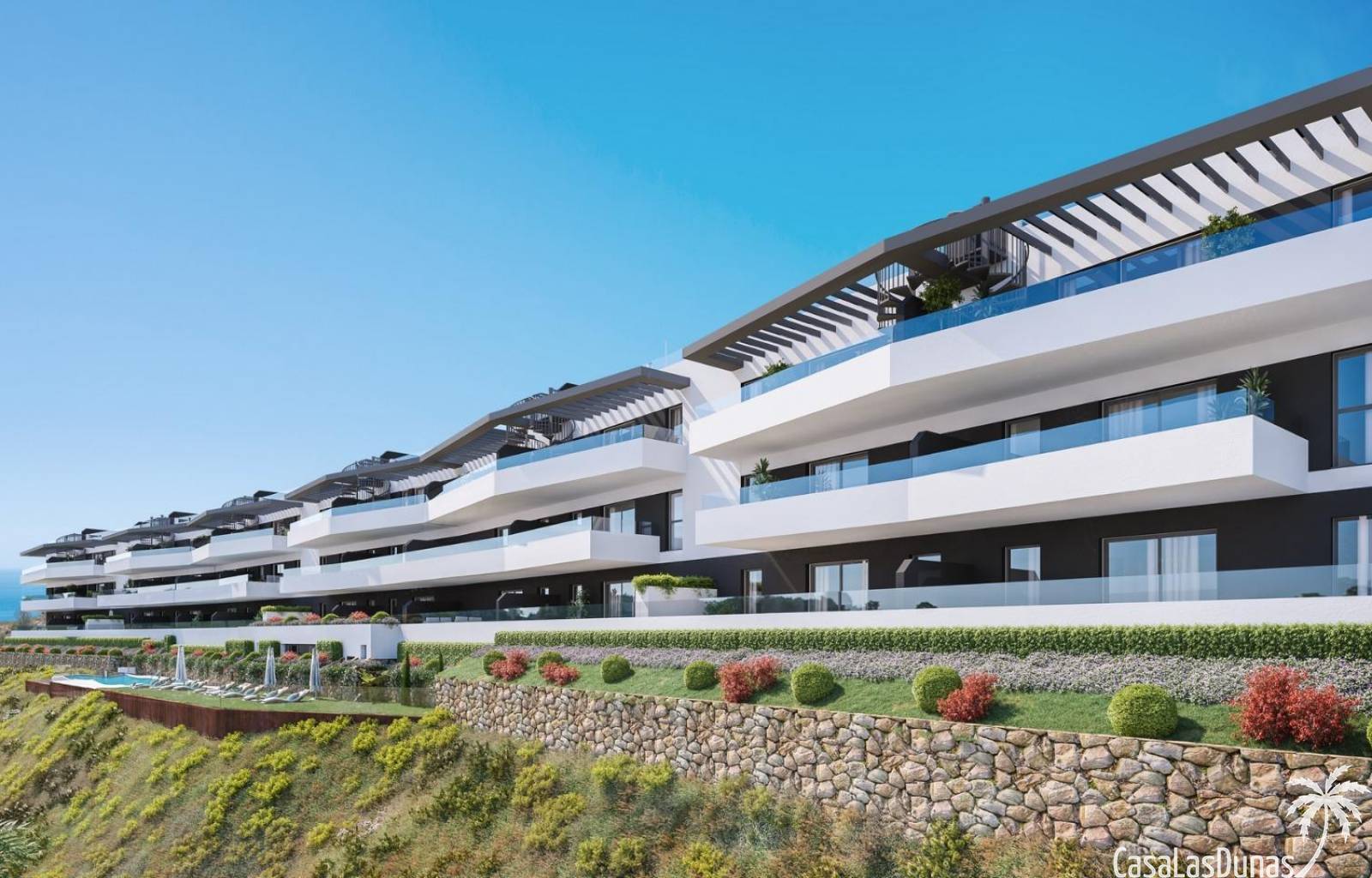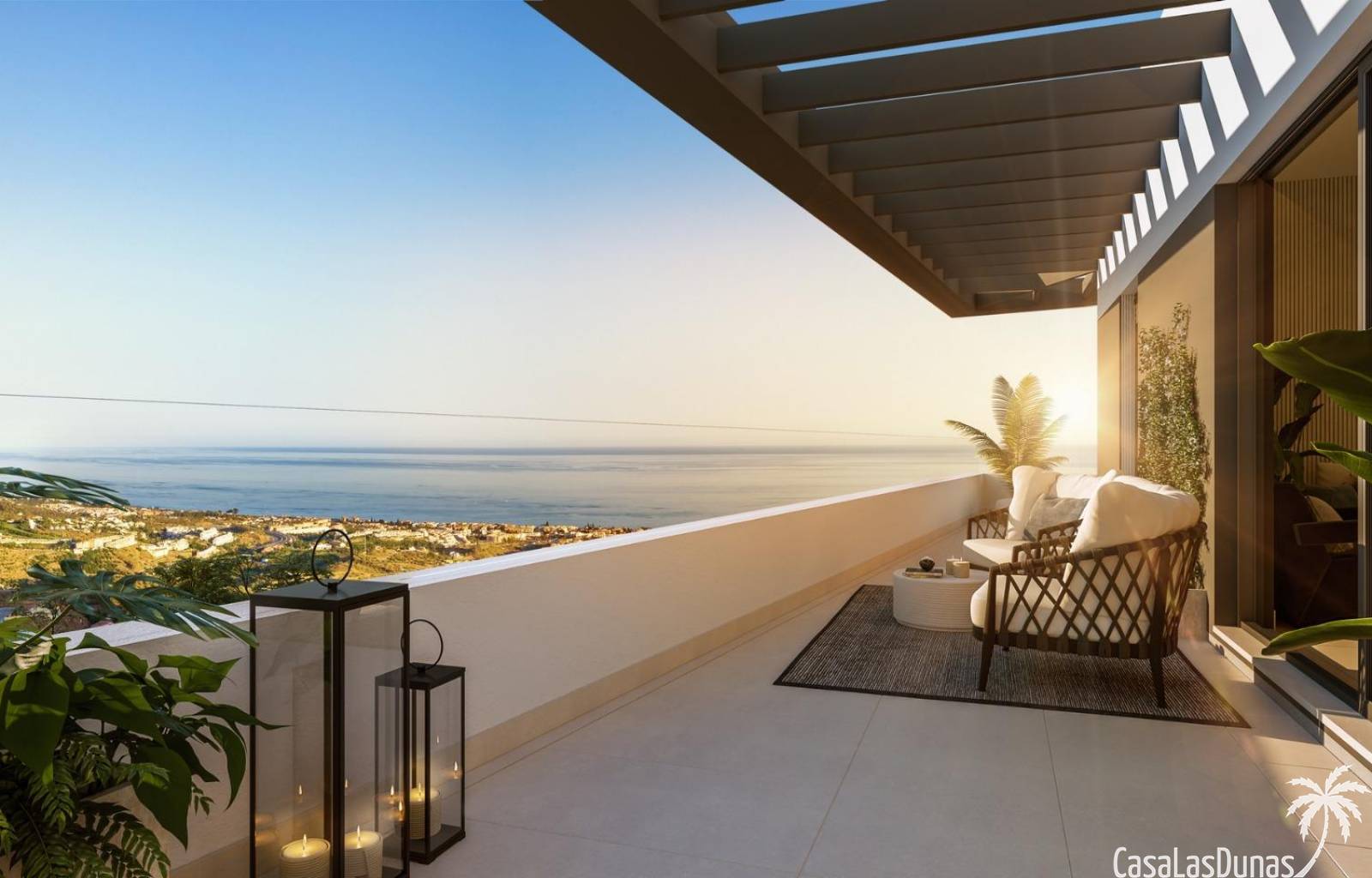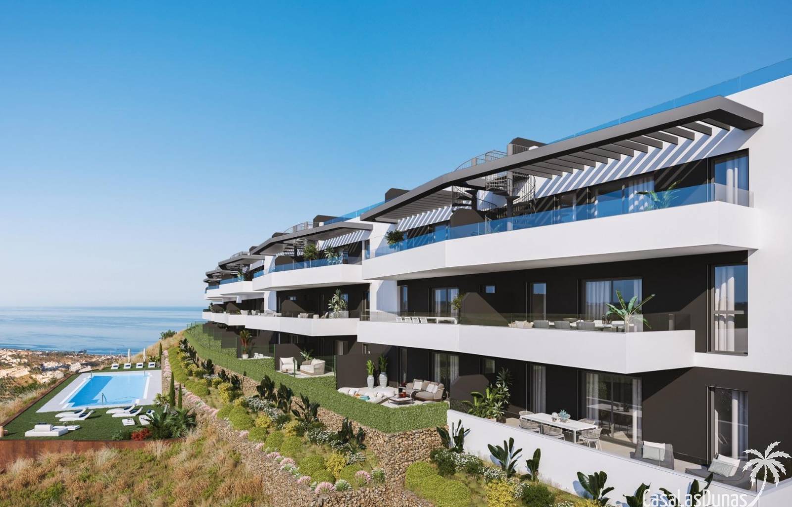 Zowel de avant-gardistische woningen als de complete gemeenschappelijke ruimtes zijn zo ontworpen dat ze opgaan in de omgeving. Met de vegetatie en het landschap als achtergrond opent het zich naar het spectaculaire uitzicht op de baai van Malaga, zonder af te zien van het panoramische uitzicht dat het complex omringt, beschut door de natuurparken van de Sierra de Tejada en de Montes de Malaga.