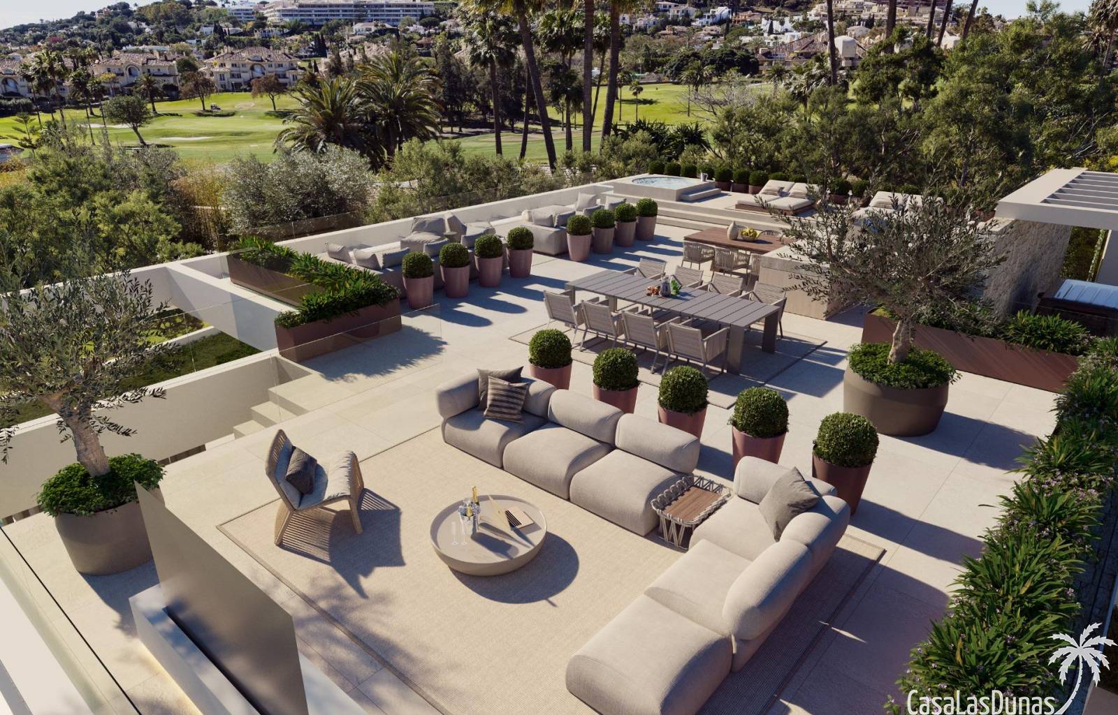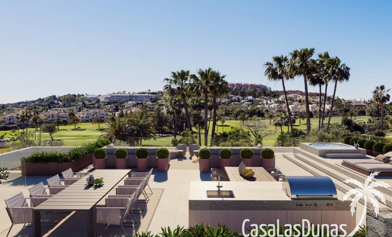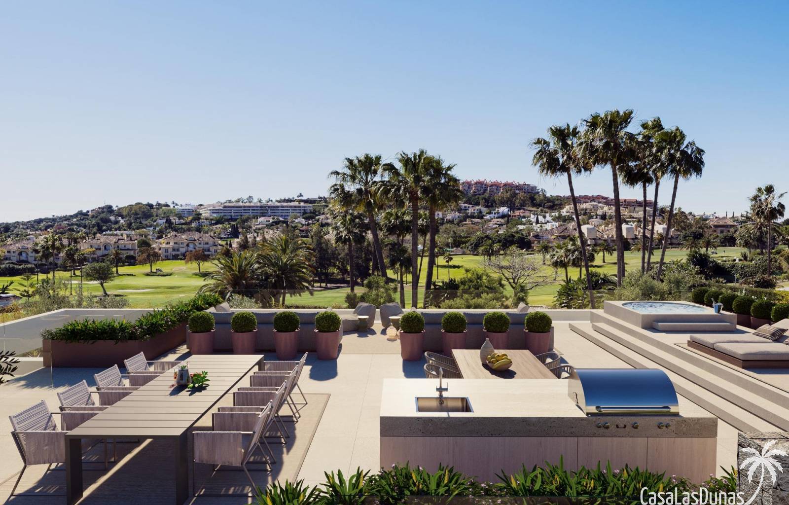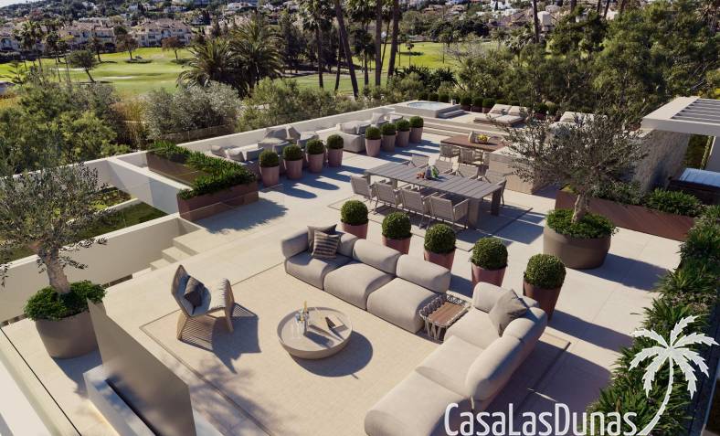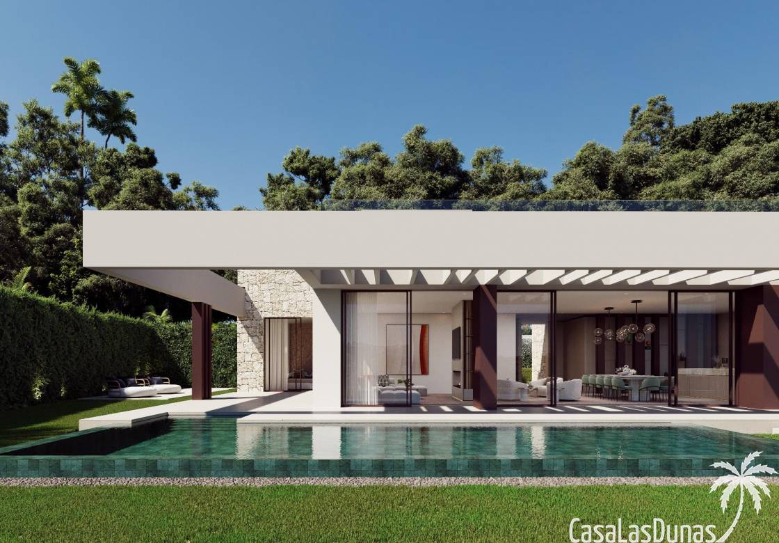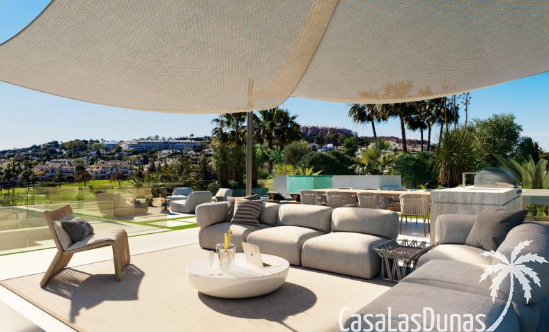 Dankzij de oriëntatie kun je genieten van het prachtige terras en het privézwembad met de hele dag zon en prachtig uitzicht op de golfbaan, met directe toegang met buggy vanuit je huis. In het solarium kun je genieten van een buitenkeuken, ontspanningsruimte, bioscoop en spa, en in de kelder heb je een fitnessruimte, kantoor en wasruimte.