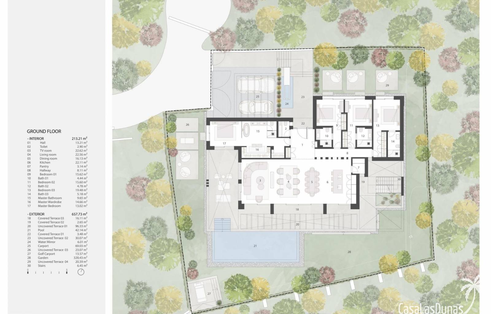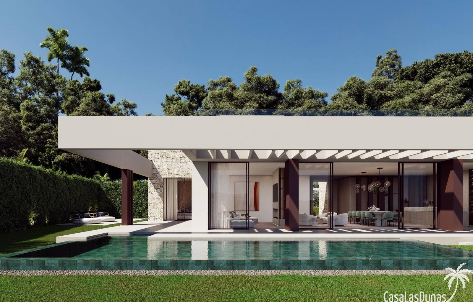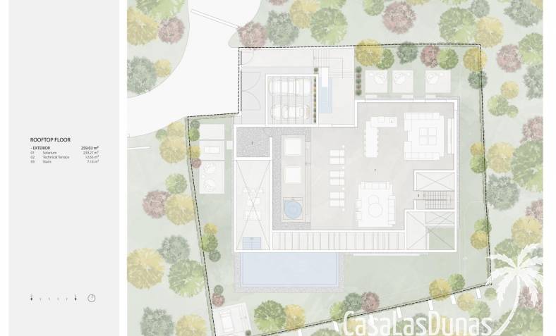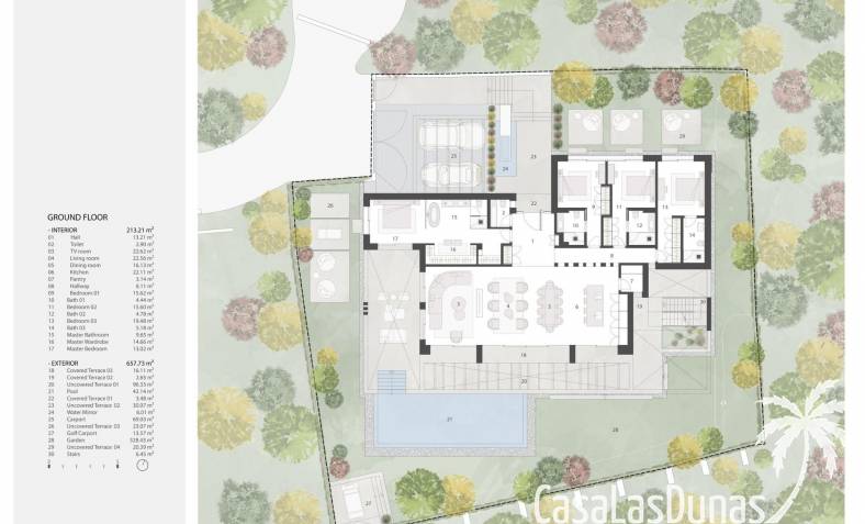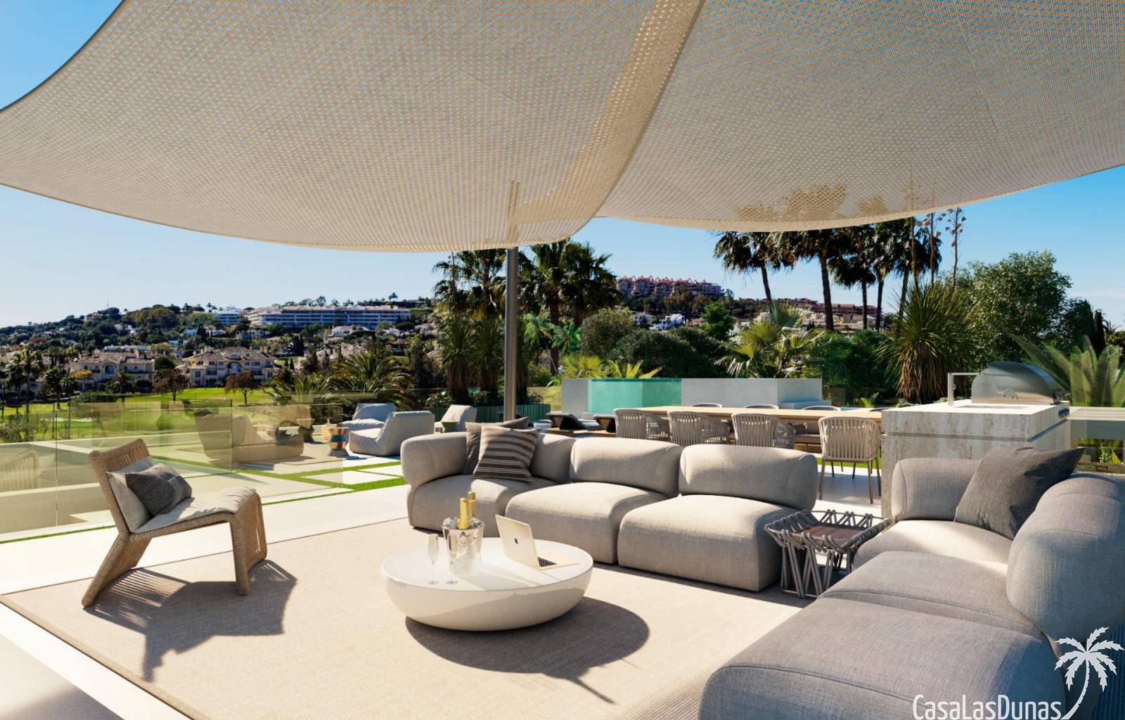 Dankzij de oriëntatie kun je genieten van het prachtige terras en het privézwembad met de hele dag zon en prachtig uitzicht op de golfbaan, met directe toegang met buggy vanuit je huis. In het solarium kun je genieten van een buitenkeuken, ontspanningsruimte, bioscoop en spa, en in de kelder heb je een fitnessruimte, kantoor en wasruimte.