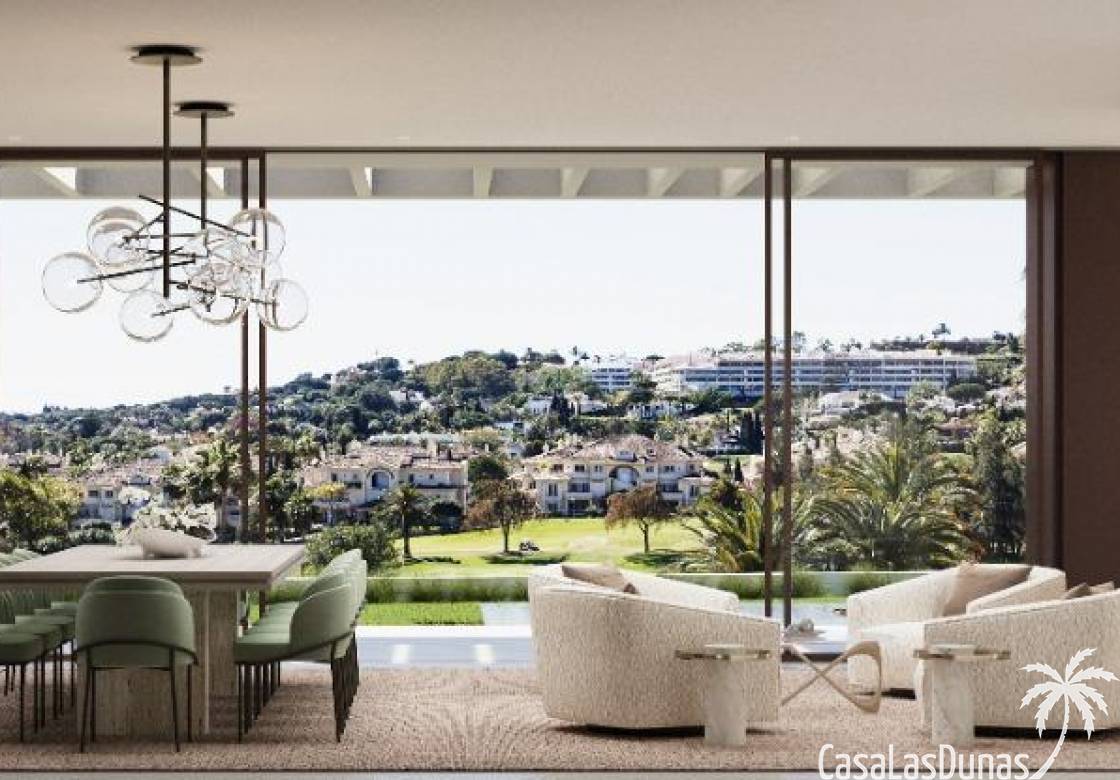 Luxe villa, front line golf, ruim, modern en elegant, met een mooi en functioneel ontwerp van keuken open naar de eetkamer en woonkamer. Door de ramen van vloer tot plafond kunt u genieten van ongelooflijk uitzicht op de Los Naranjos golfbaan. Er zijn 4 slaapkamers, allemaal met een eigen badkamer en een eigen terras. De hoofdslaapkamer is bijna 40m2, met een grote kleedkamer, waar je kunt genieten van de luxe van ruimte en comfort.