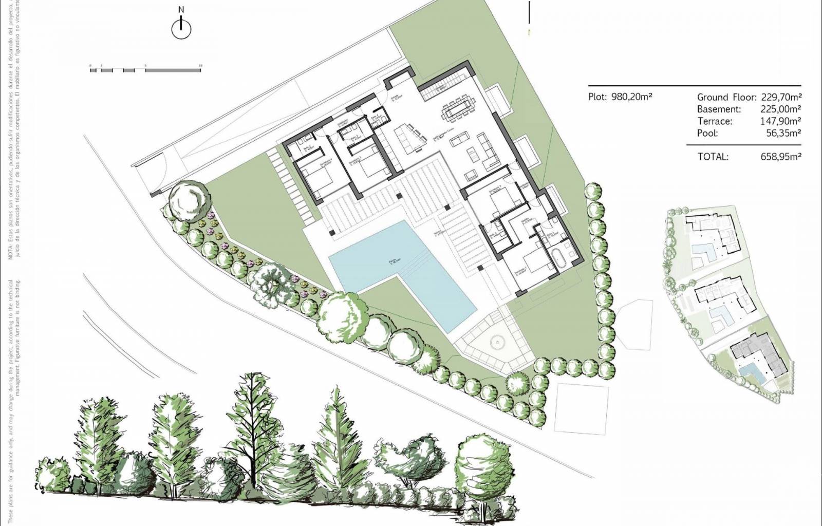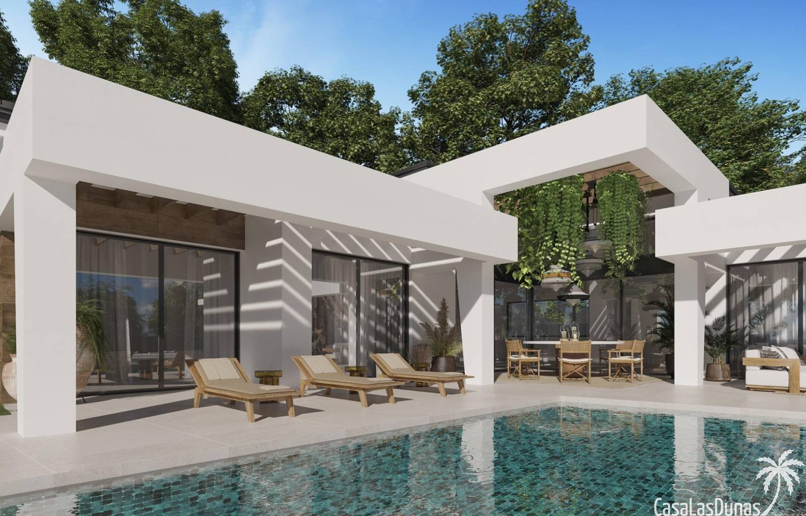 Drie unieke villa's gebouwd op één verdieping, elk met een eigen aangelegde tuin en ecologische moestuin van 36 m2. Ruime terrassen, tuingedeeltes met gazons met automatische irrigatie met diffusors, zwembad met chloorzout en chill-outruimte met wintervuur. Ze hebben een ondergrondse garage en een grote kelder die kan worden aangepast aan de smaak en levensstijl van elk gezin.