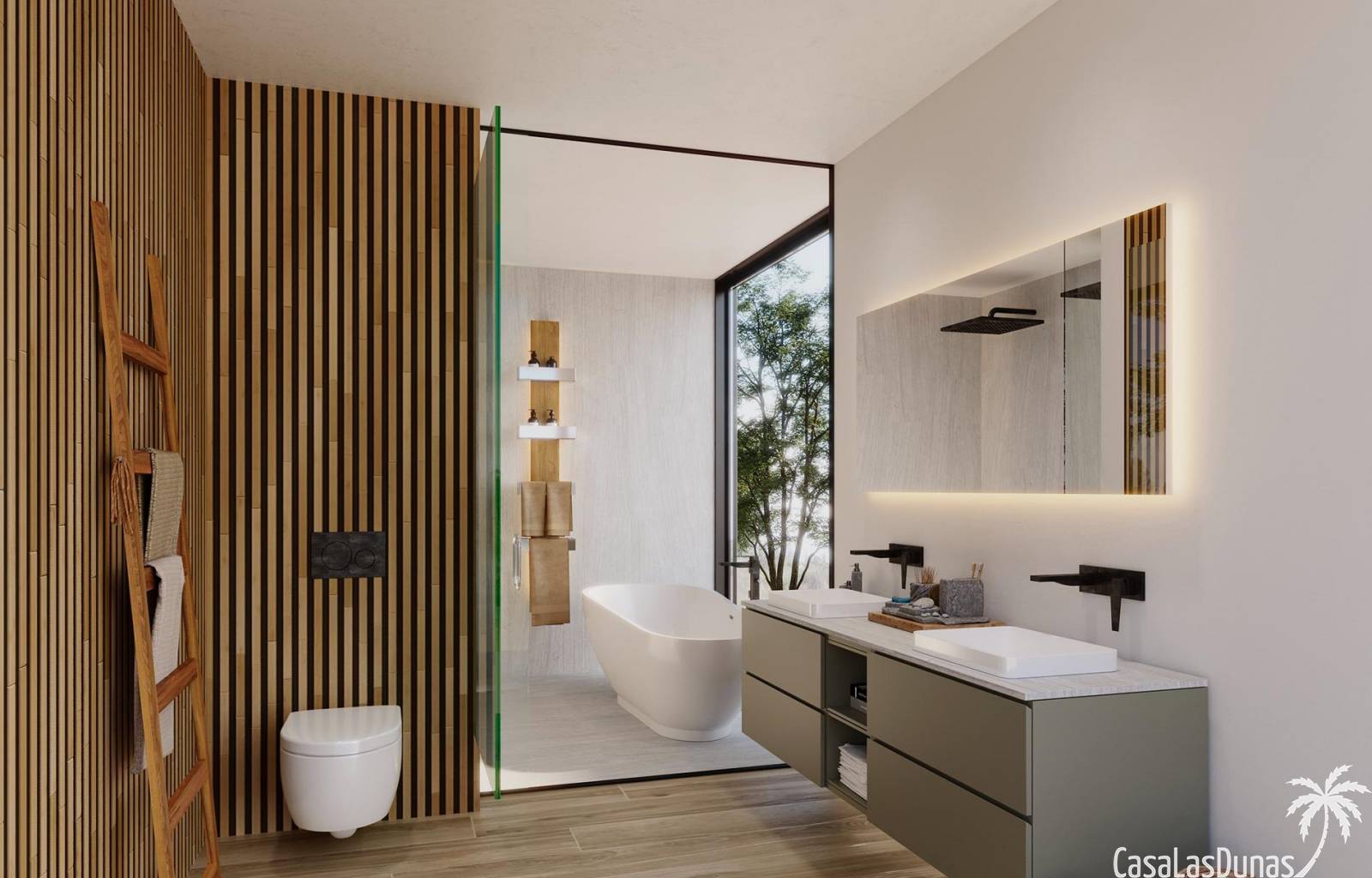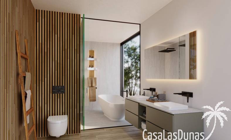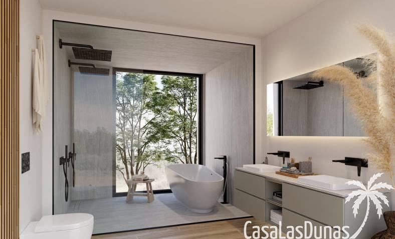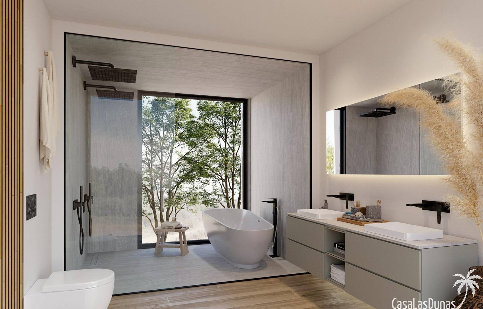 Elke villa wordt uitgerust met de meest geavanceerde technologieën (aerothermie, LED-verlichting, domotica). Dit alles stelt ons in staat om een comfortabel, modern en efficiënt huis te creëren, een huis van de 21e eeuw. De combinatie van natuurlijke kleuren en het gebruik van hout creëren een uitzonderlijke sensatie van absoluut comfort en een intieme vereniging met de natuur.