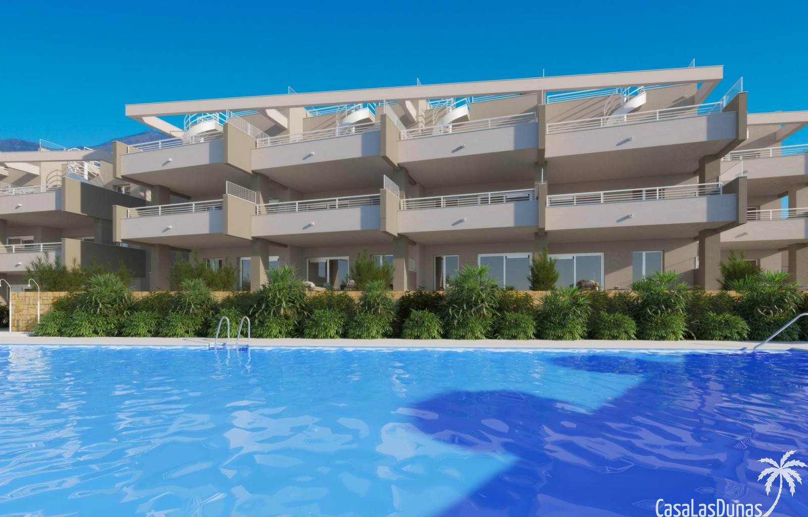Dit nieuwe wooncomplex van 69 appartementen met 2 of 3 slaapkamers heeft panoramisch uitzicht op de golfbaan en sommige woningen hebben ook uitzicht op zee. De appartementen liggen op het zuiden/zuidwesten en hebben heerlijk lichte en luchtige kamers.