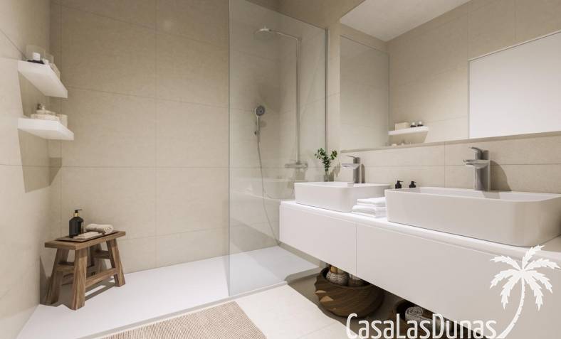 Modern wooncomplex met een zeer verfijnde architectuur. Het onderscheidt zich door de elegantie van het ontwerp, door te kiezen voor wit, waardoor het volledig integreert in de mediterrane omgeving zonder af te zien van een eigentijds beeld van strakke en vloeiende lijnen.