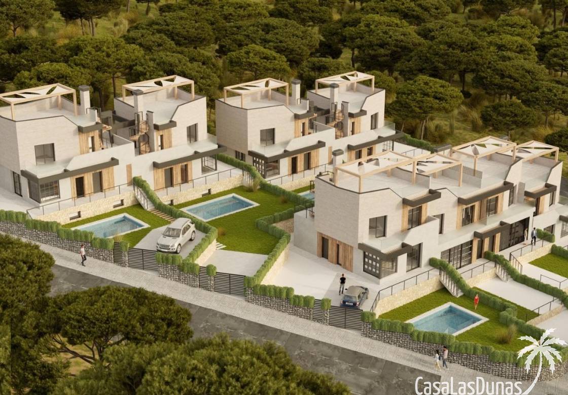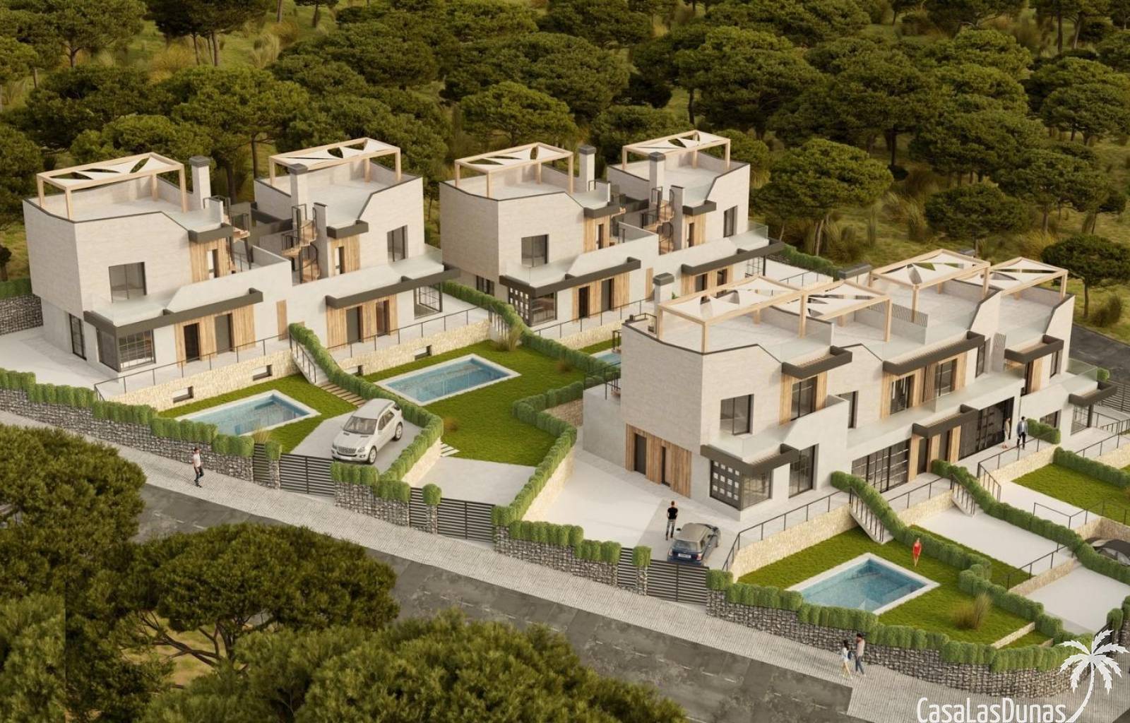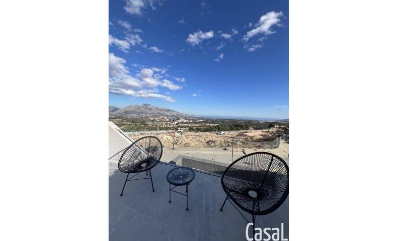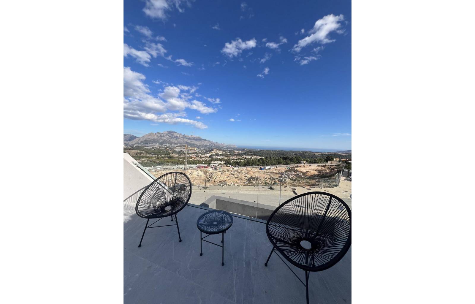 Nieuwbouw moderne herenhuizen en halfvrijstaande villa's met verschillende terrassen en solarium, volledig omheind, met parkeerplaats voor voertuigen en privézwembad in Polop.