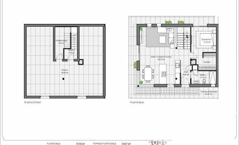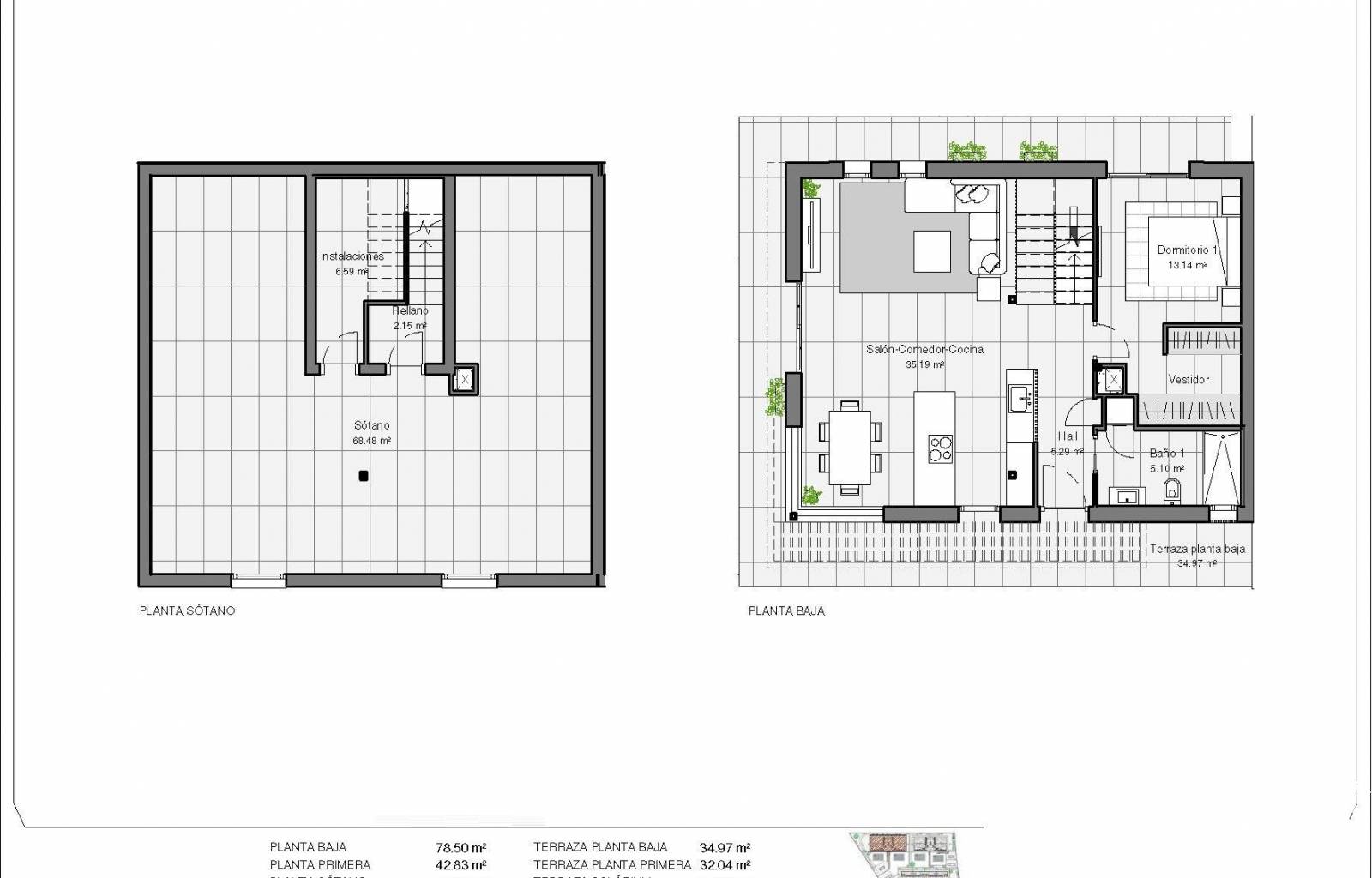 Moderne woningen met 3 ruime slaapkamers met ingebouwde kasten (de grootste op de begane grond, met badkamer en kleedkamer en suite), 2 ruime badkamers, grote woon-eetkamer met open keuken, ruime terrassen, grote halve kelder met ramen.