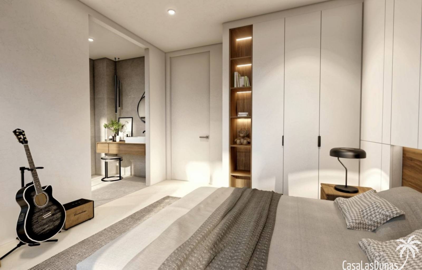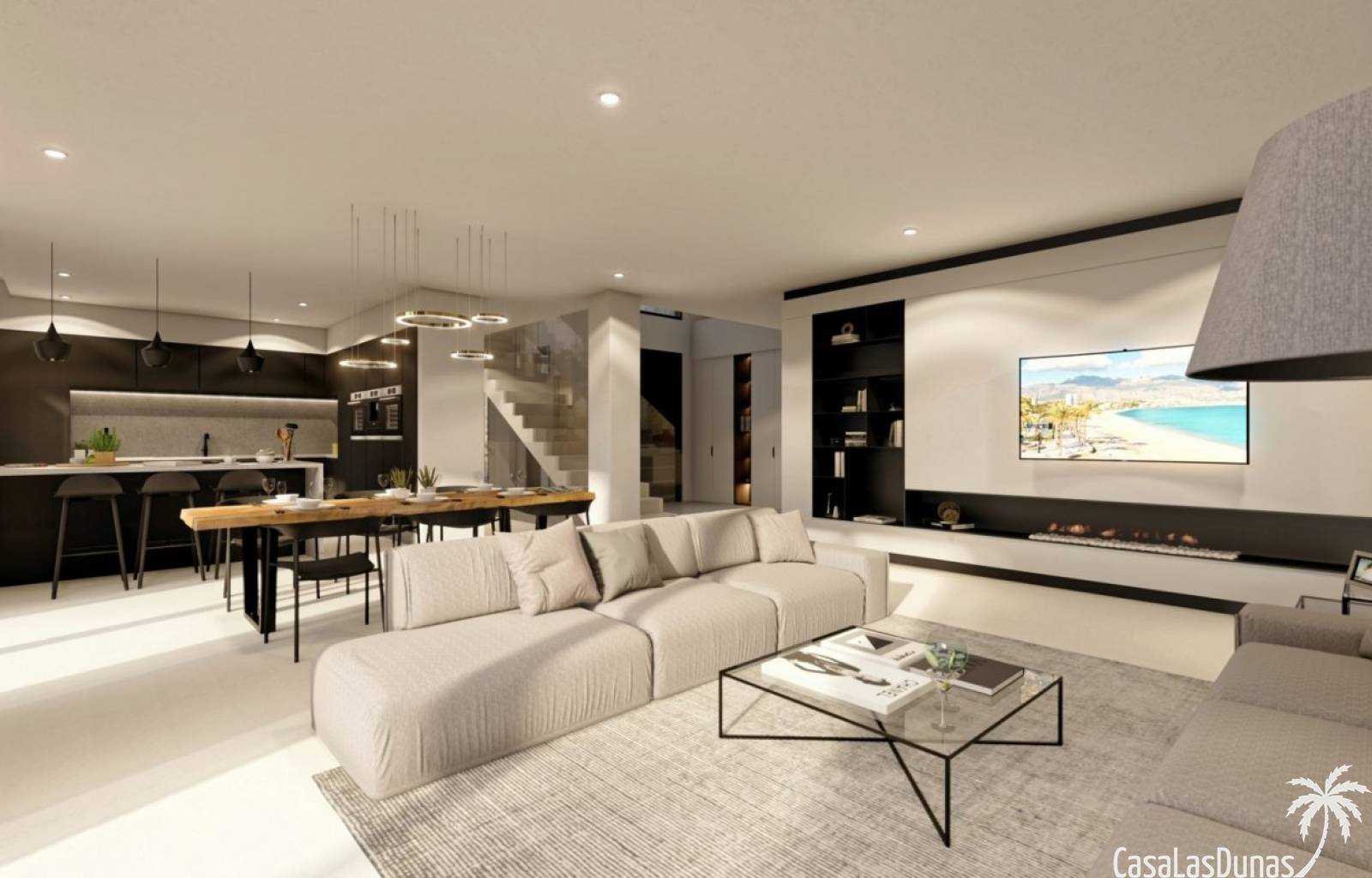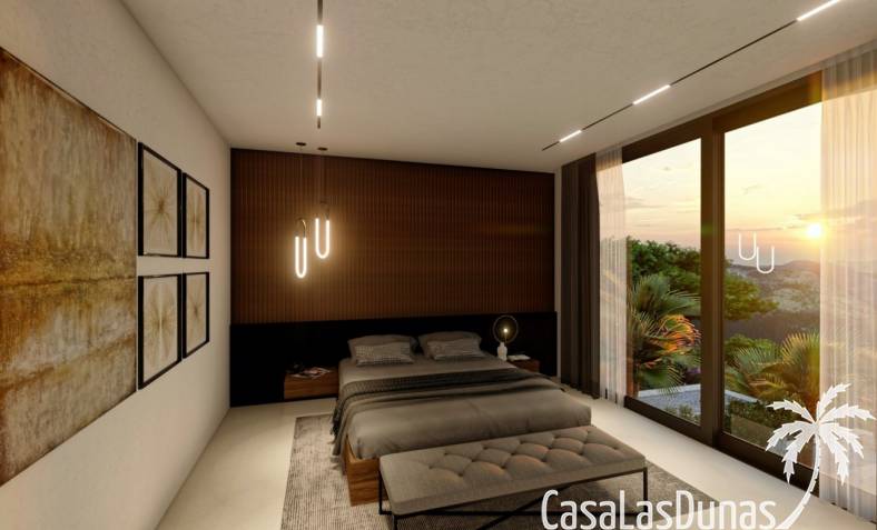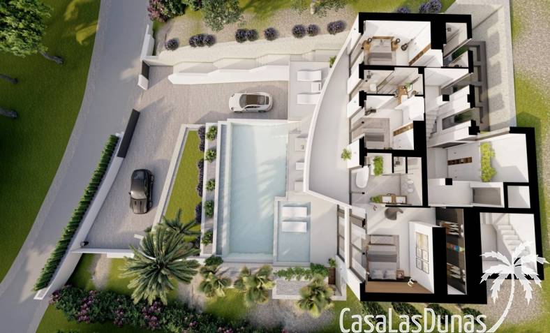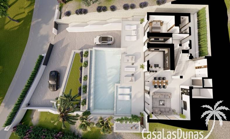 Op de begane grond vindt u een grote woonkamer met zit- en eetgedeelte, met een grote slaapkamer met eigen badkamer, een open keuken, terras aan de achterzijde van het pand en een groot pooldeck aan de voorzijde met infinity pool.