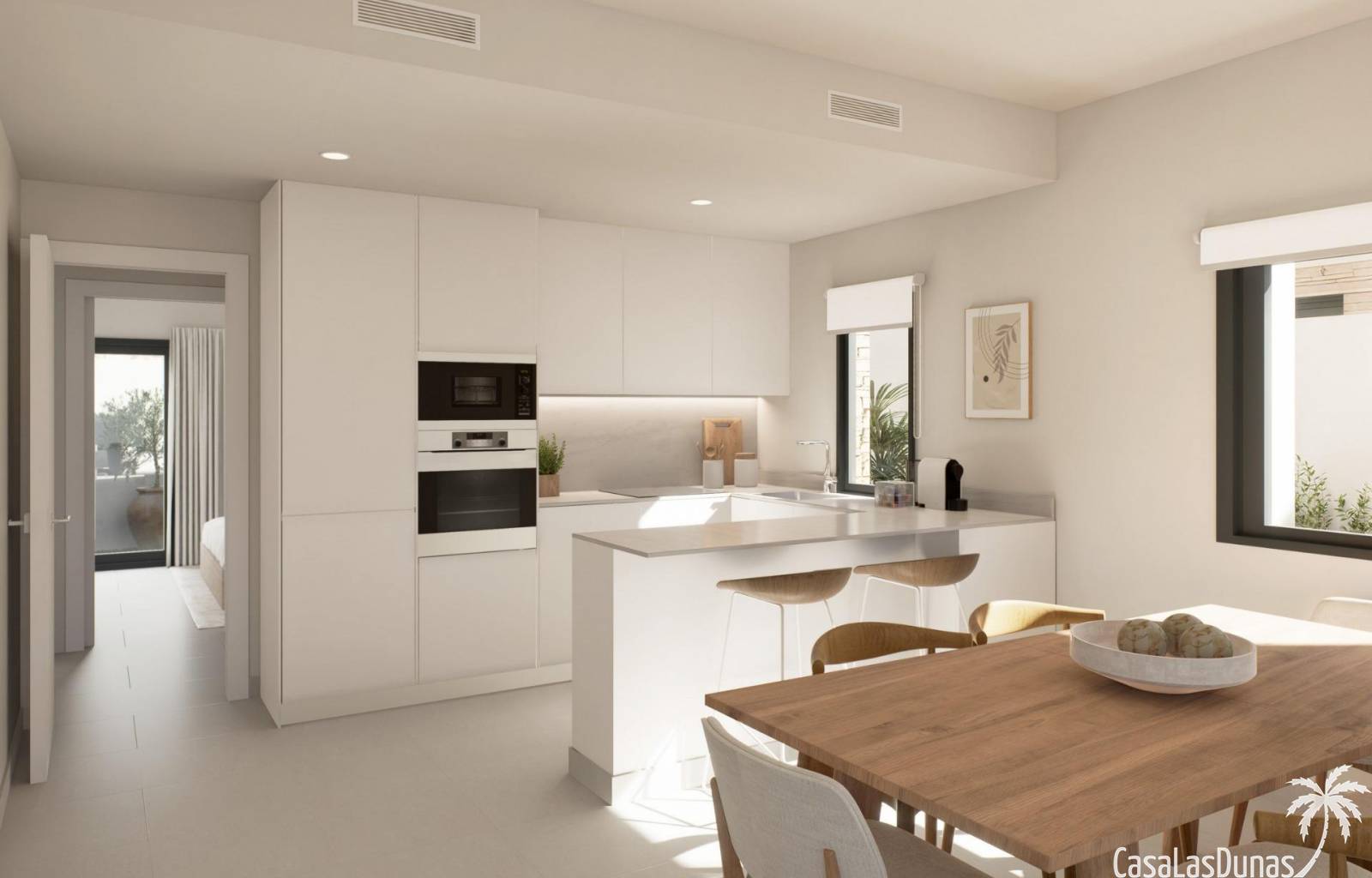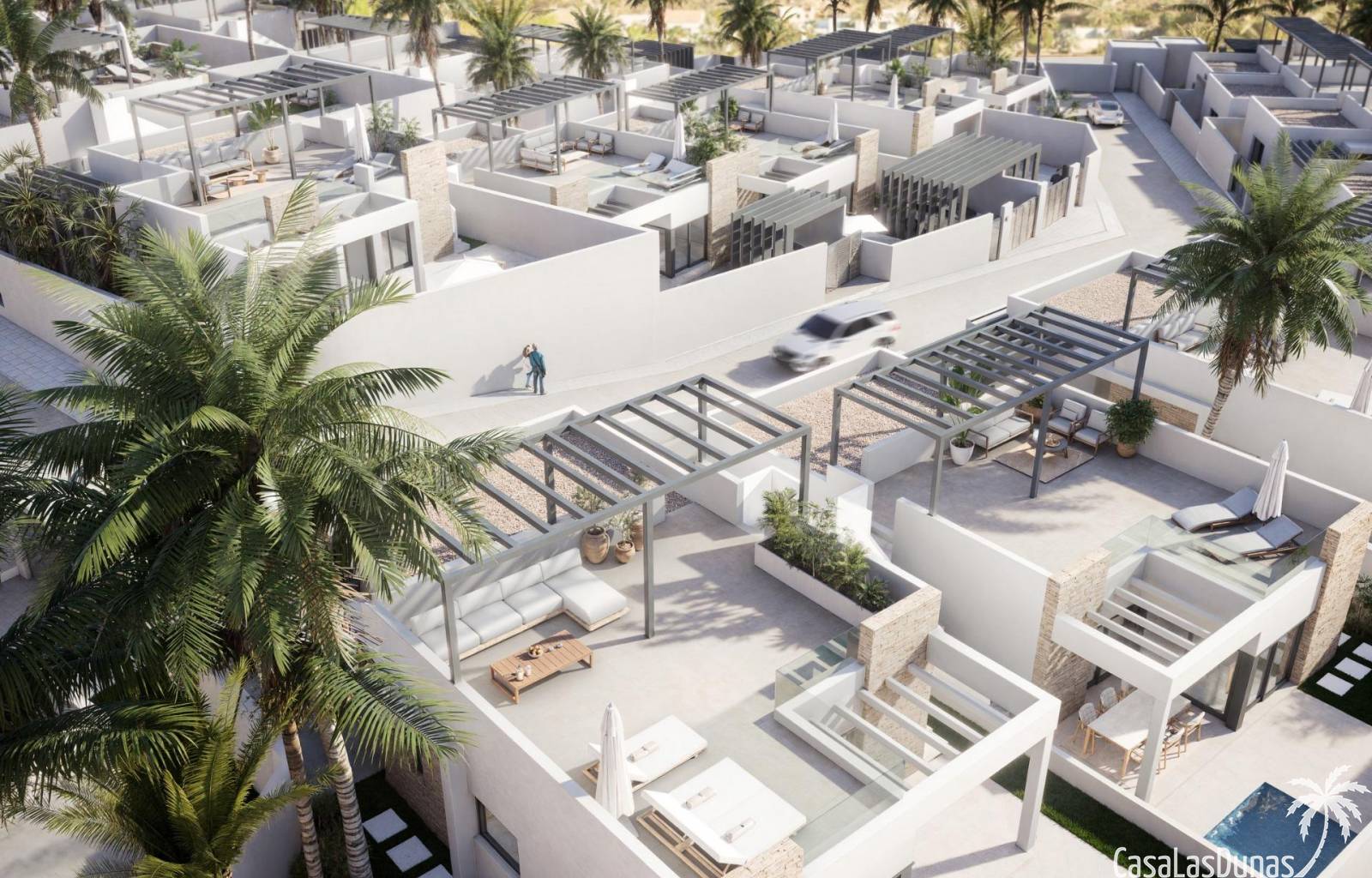 Deze prachtig ontworpen woningen beschikken over 3 slaapkamers en 2 badkamers, een ruime open woonkamer en een naadloze verbinding tussen binnen en buiten. Elke villa heeft een eigen solarium, een privézwembad en een onafhankelijk perceel met aangelegde tuinen.