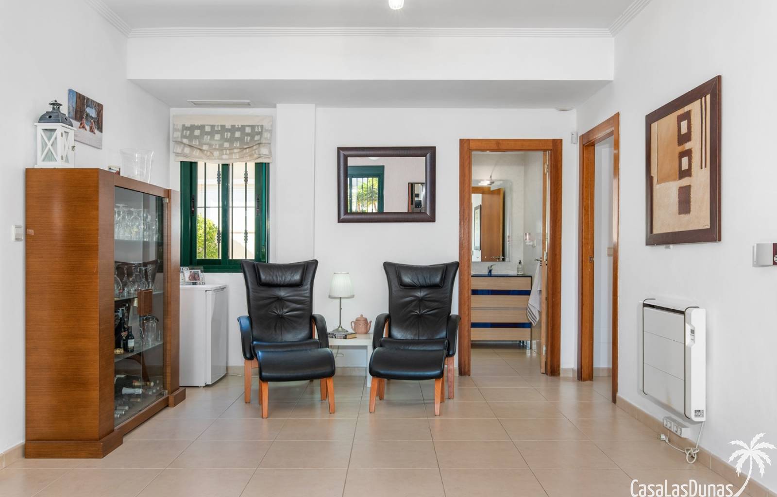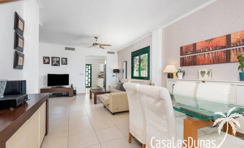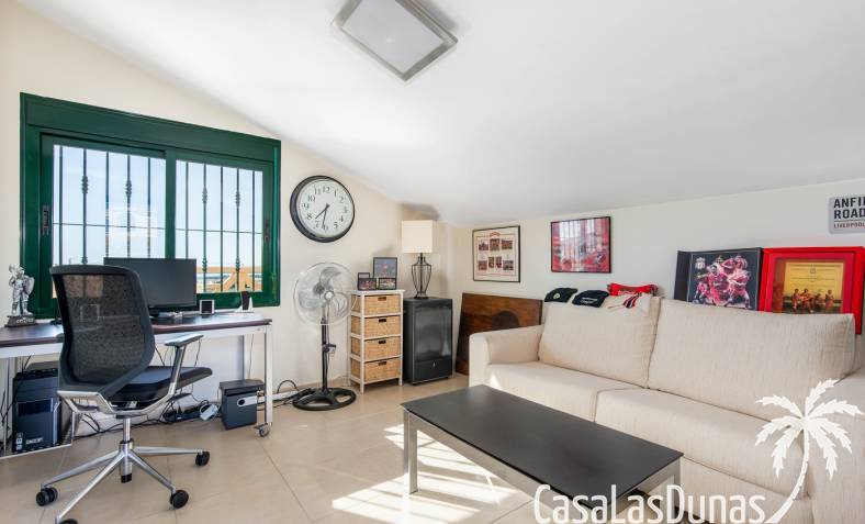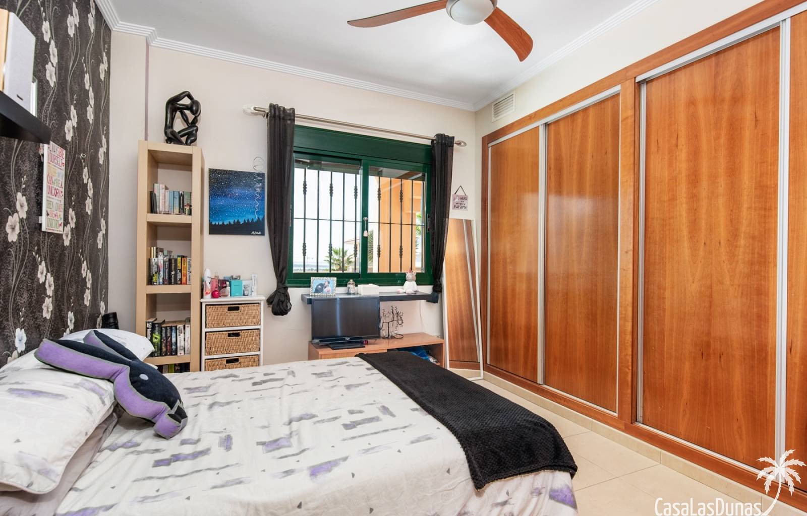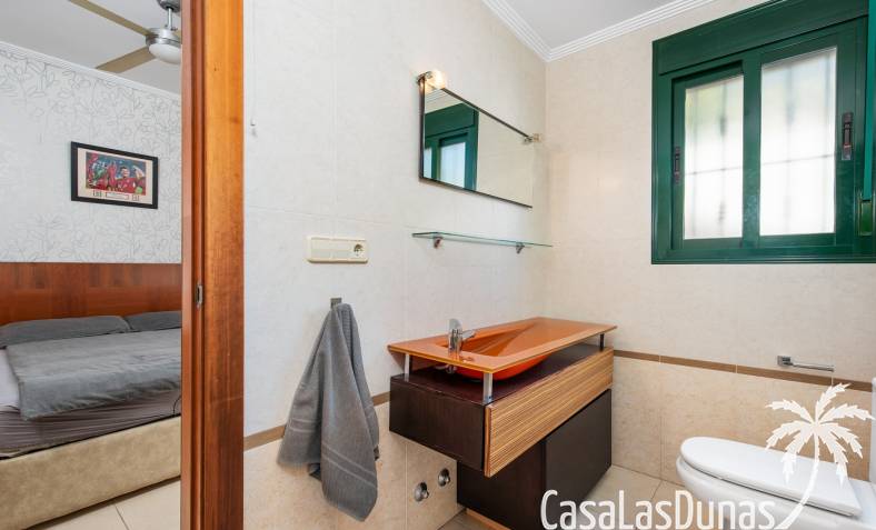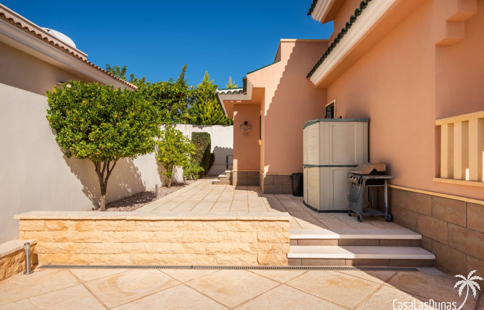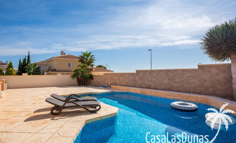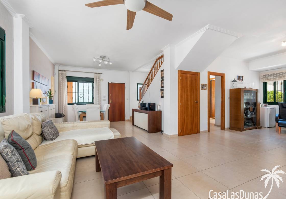 BuitenruimteDe villa ligt op een zuidgericht perceel van 546 m². Er is een mooie betegelde tuin met een zwembad en veel ruimte voor zitgedeeltes buiten en ligbedden. Bij de ingang is er ook een groot overdekt terras. Aan de achterkant van het huis bevindt zich een grote parkeerplaats met ruimte voor meerdere auto's. De villa heeft ook een groot terras op de eerste verdieping met prachtig uitzicht op de zoutmeren en Torrevieja.