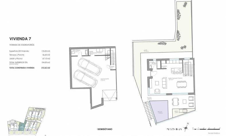 Dit unieke project biedt woningen met drie slaapkamers en drie badkamers, beschikbaar in twee configuraties. Kopers kunnen kiezen tussen vier herenhuizen met een eigen solarium en optionele jacuzzi, of zes halfvrijstaande villa's met elk een eigen zwembad. Alle woningen hebben een grote keldergarage voor twee auto's, ruime terrassen en royale tuinen die het buitenleven en het uitzicht op zee maximaliseren.