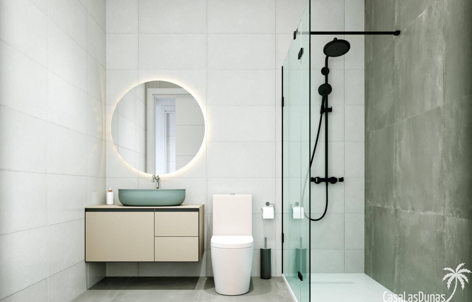 De buitenkant is niet minder indrukwekkend, met een privézwembad en een groot solarium met zomerkeuken zodat je het hele jaar door van de zon kunt genieten. Bovendien hebben de woningen een pre-installatie voor het opladen van elektrische auto's.