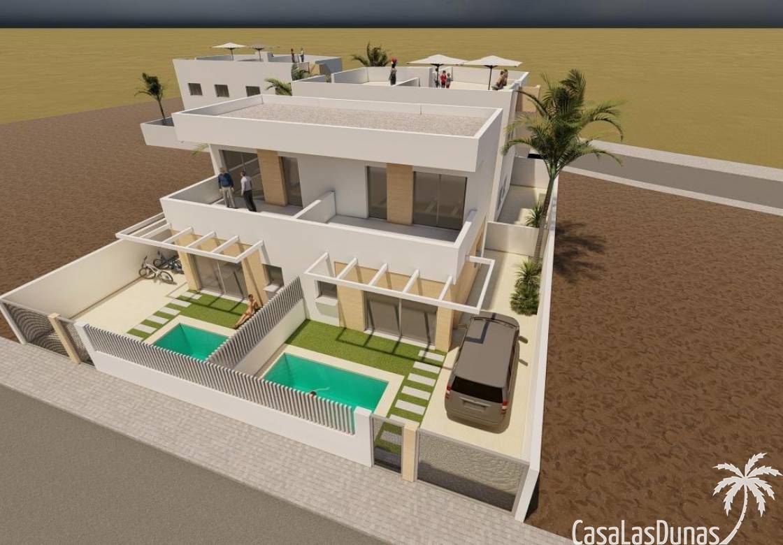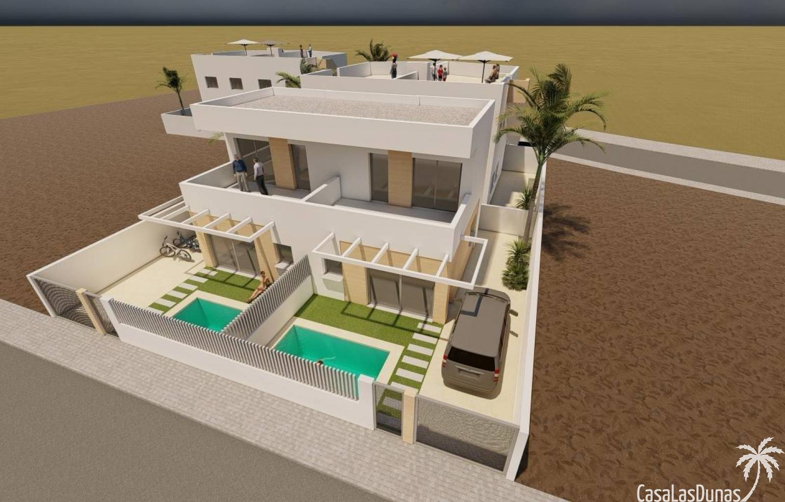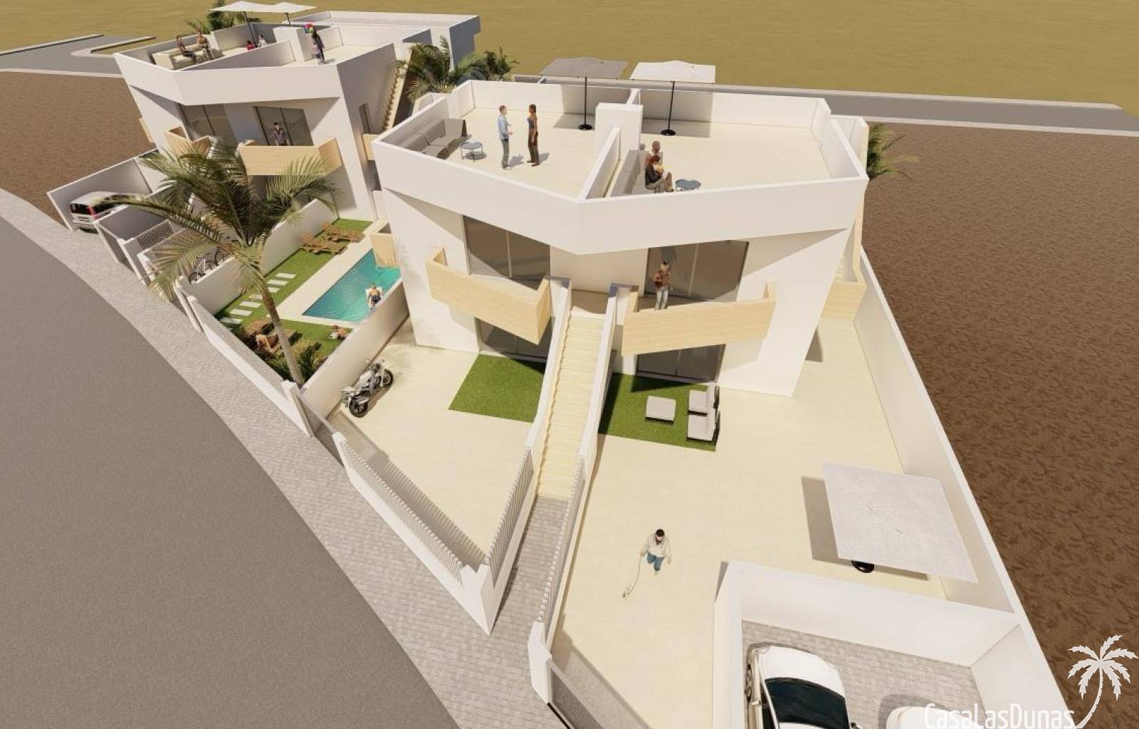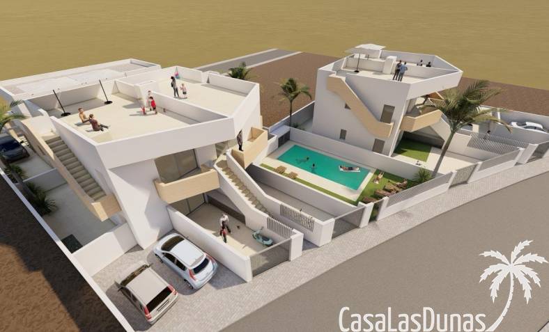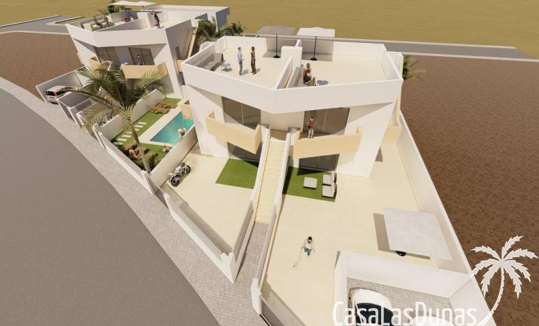 Deze exclusieve promotie bestaat uit slechts 10 woningen, waarvan er nog 2 twee-onder-een-kapwoningen beschikbaar zijn, elk met 2 slaapkamers en 2 badkamers. De woning, verdeeld over 2 verdiepingen, heeft een woonkamer-keuken op de begane grond, samen met een slaapkamer en een badkamer, met toegang tot het privéterras met parkeerplaats en de mogelijkheid om tegen meerprijs een privézwembad aan te leggen. Via een trap komt u op de bovenverdieping, waar zich de hoofdslaapkamer met ensuite badkamer bevindt en toegang tot een open terras van 16 m2 waar u kunt zonnebaden en genieten van een prachtig uitzicht op zee.