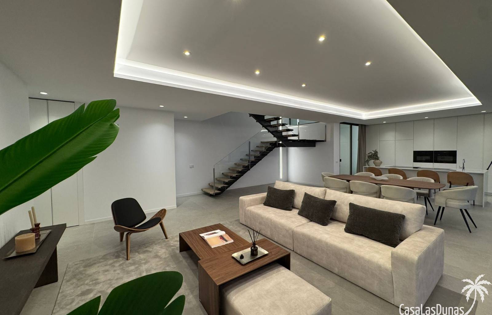 Dubbelhoge plafonds die zorgen voor een lichte, open en luxe leefruimte