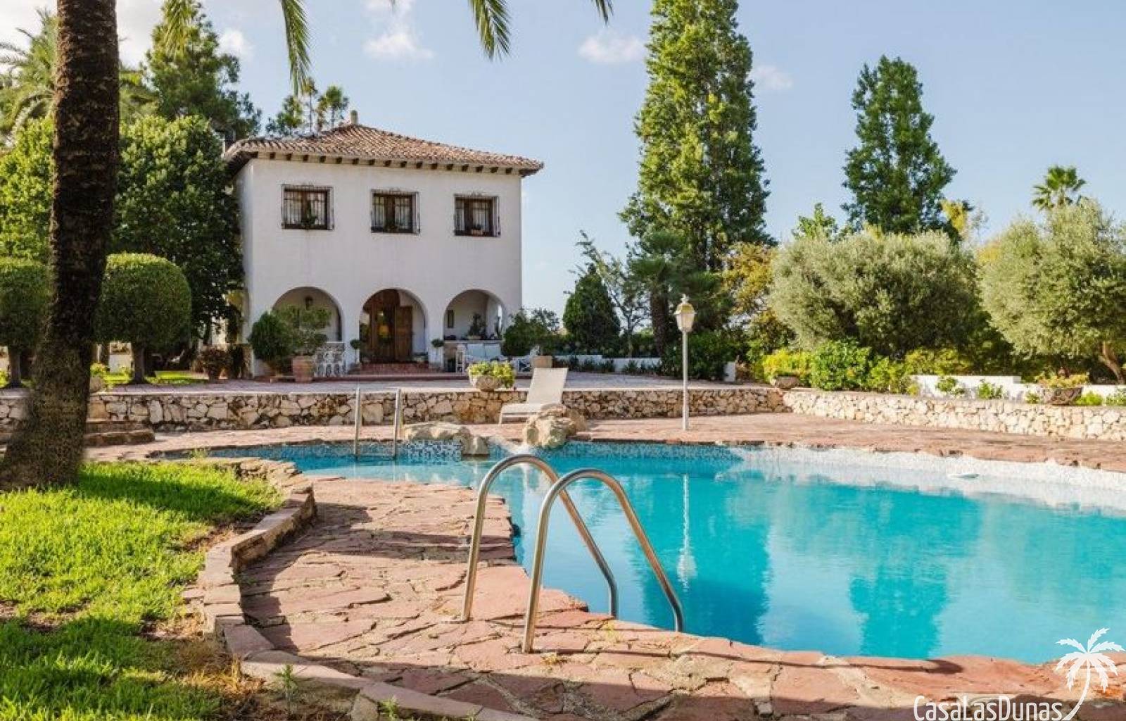 Deze elegante, traditionele finca bevindt zich op een prachtig perceel van ca. 4.703 m² met een prachtige tuin op korte afstand van alle voorzieningen tussen Pedreguer en Denia. Met circa 410 m² woonoppervlak biedt het huis een harmonieuze mix van rustieke elegantie en comfort, met hoge plafonds, houten balken, terracottavloeren en ruime leefvertrekken. Meerdere slaapkamers, sfeervolle patio’s en terrassen maken het ideaal voor familie en gasten. Het hoogtepunt is de prachtig aangelegde tuin met palmen en een indrukwekkend zwembad van 10 x 5 meter met waterval – een oase van ontspanning en levensgenot.