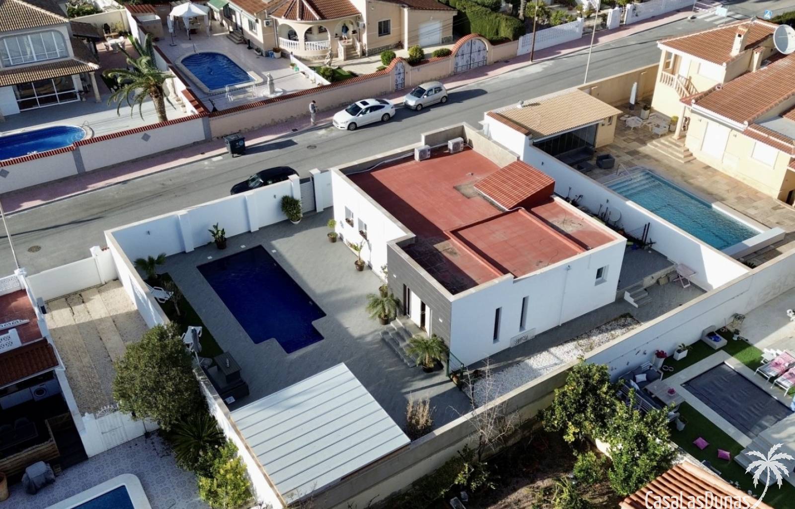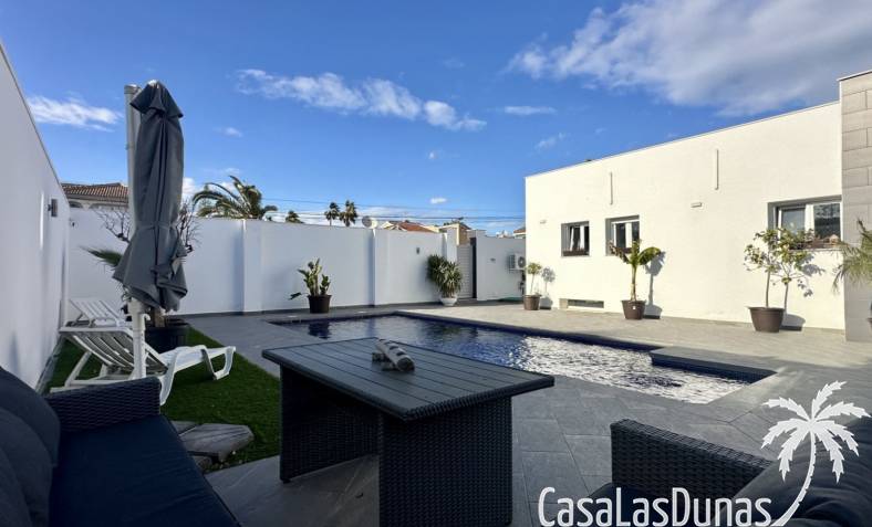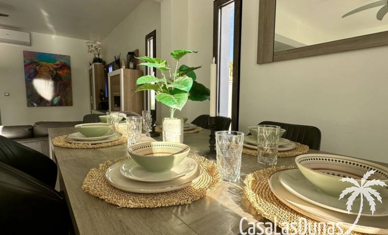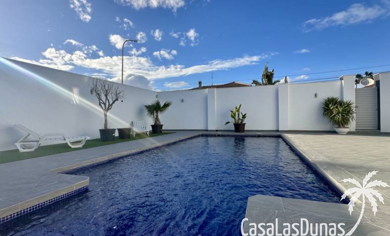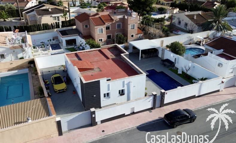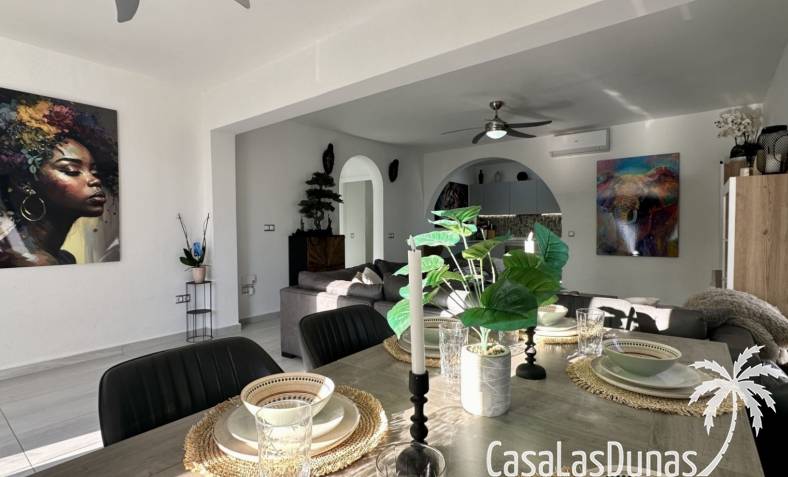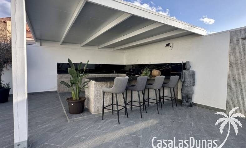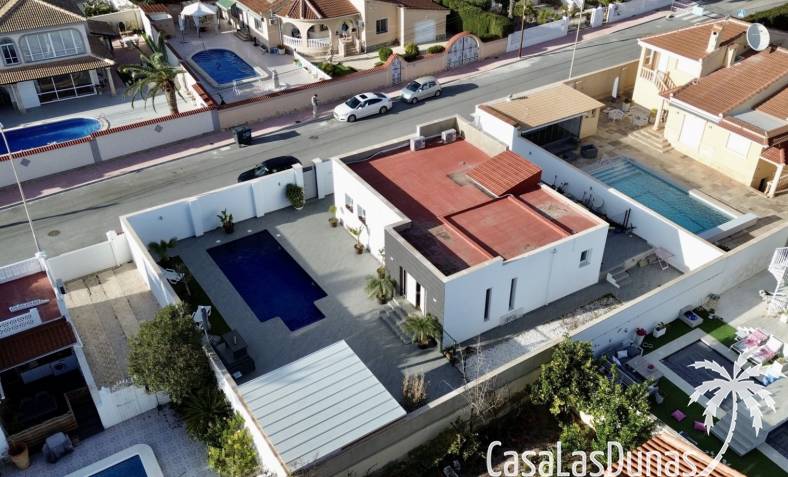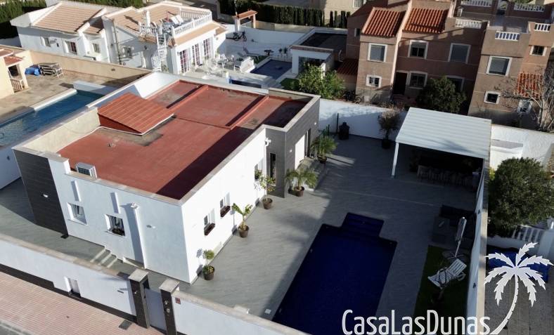 Ontdek deze prachtig gerenoveerde, moderne vrijstaande villa in het populaire woongebied Ciudad Quesada, Rojales. De woning biedt stijlvol design en comfortabele leefruimtes verdeeld over twee verdiepingen, op een ruim perceel van circa 500 m² — ideaal als gezinswoning of vakantieverblijf.
