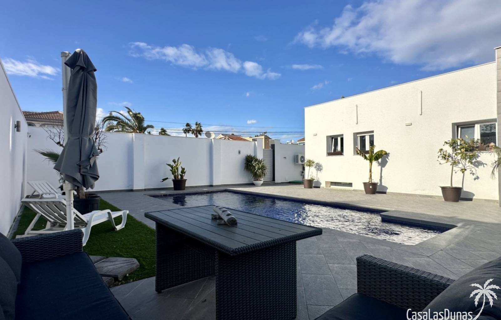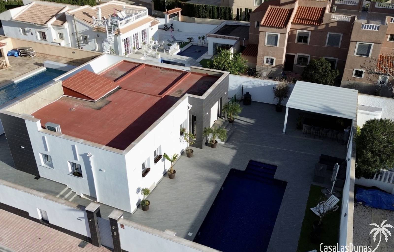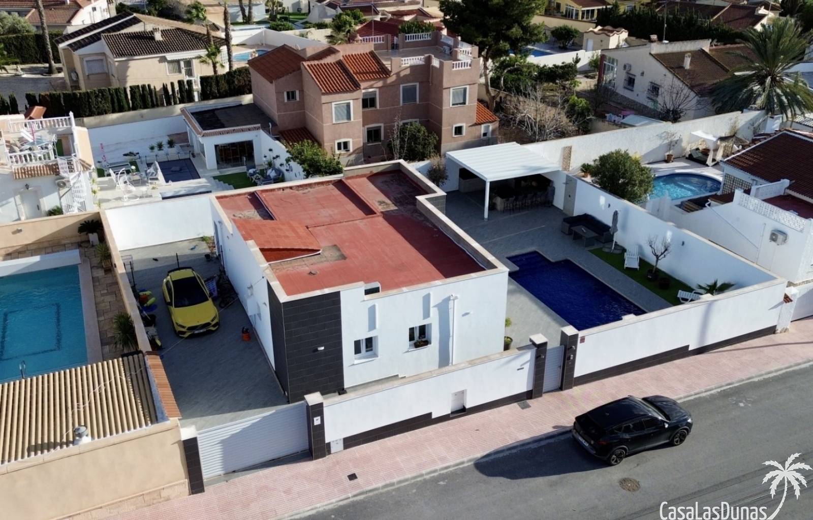 Ontdek deze prachtig gerenoveerde, moderne vrijstaande villa in het populaire woongebied Ciudad Quesada, Rojales. De woning biedt stijlvol design en comfortabele leefruimtes verdeeld over twee verdiepingen, op een ruim perceel van circa 500 m² — ideaal als gezinswoning of vakantieverblijf.