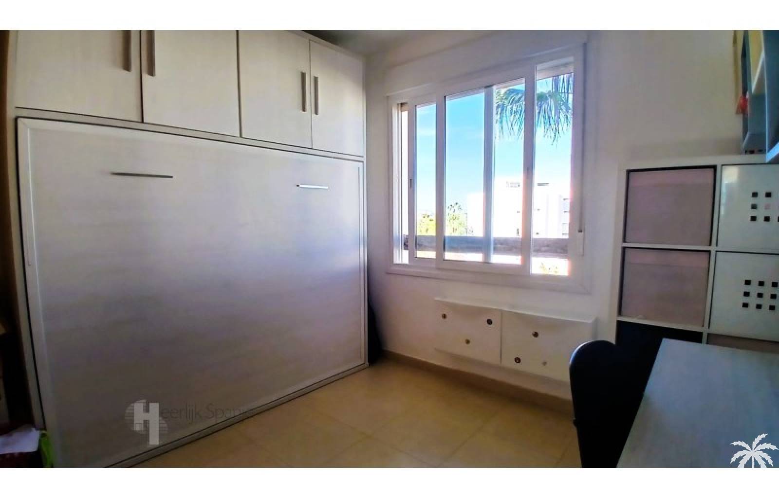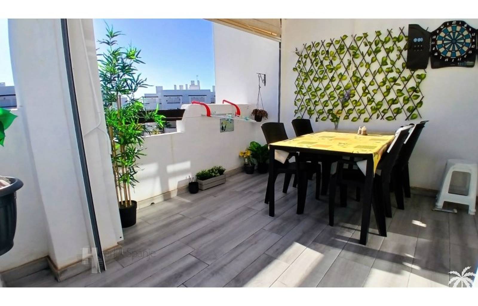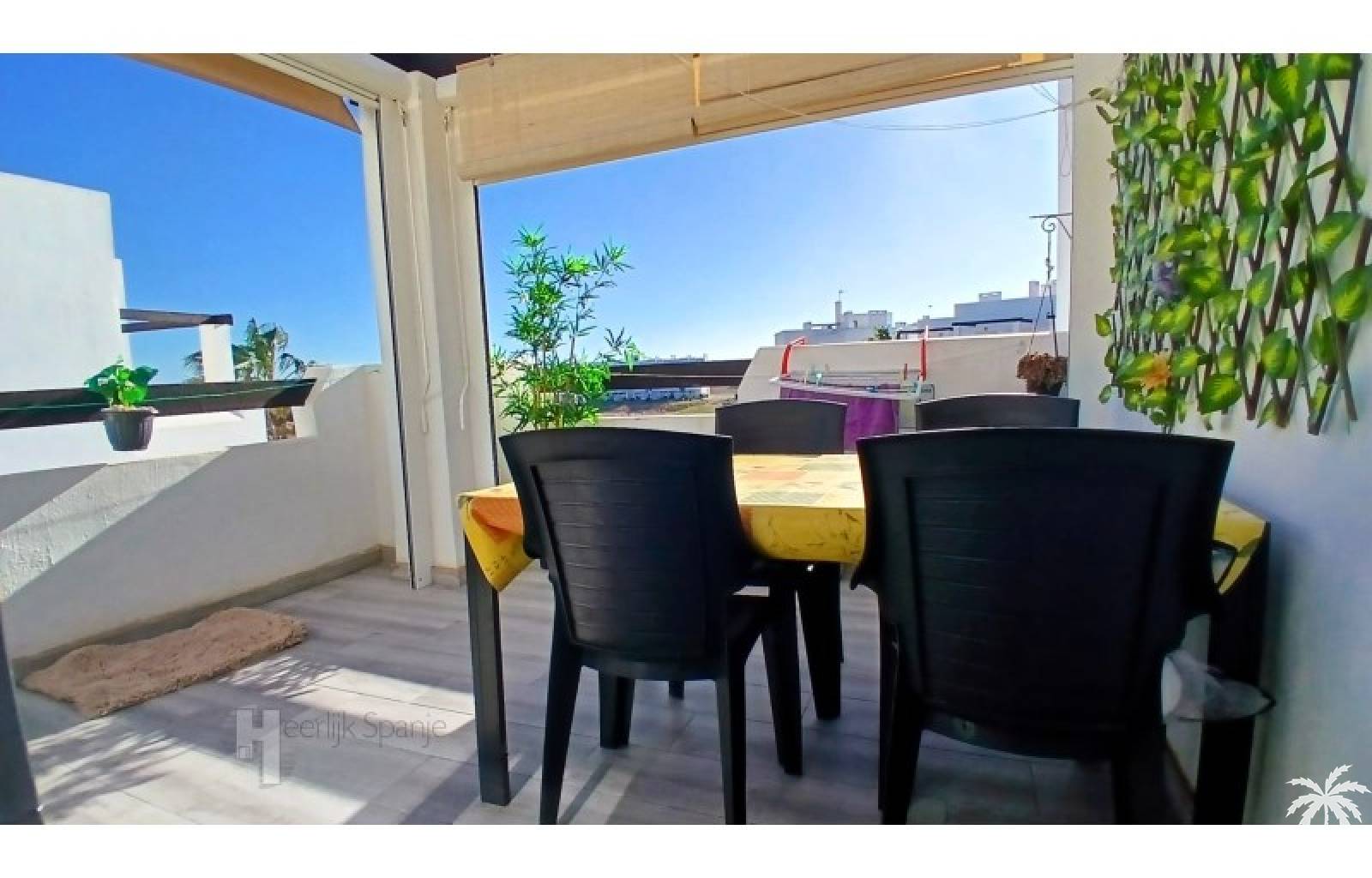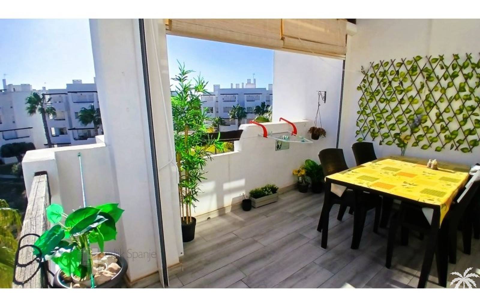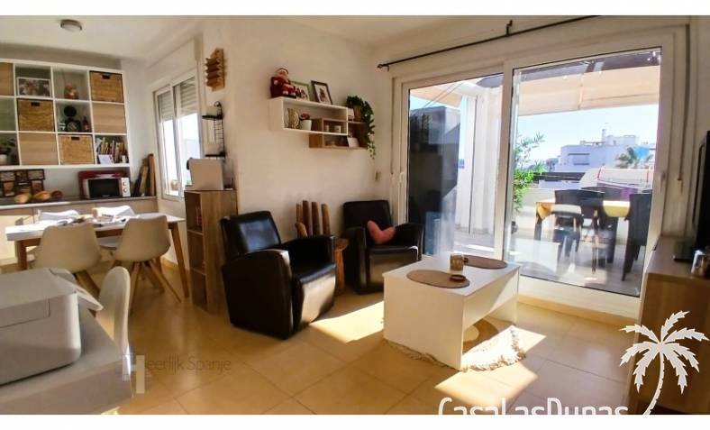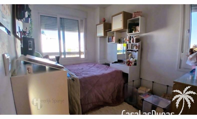 ZUIDGERICHT 3-SLK PENTHOUSE MET 2 BADKAMERS EN RUIM TERRAS OP LAS TERRAZAS DE LA TORRE GOLF Dit lichtrijk penthouse appartement in het groene hart van Roldán biedt alles voor wie wil ontspannen in de Spaanse zon. Een 3-slaapkamerappartement vinden op dit resort? Dat is eerder uitzonderlijk! Dit instapklaar appartement combineert ruimte, zon en comfort met een heerlijk terras dat de hele dag zon vangt. Dankzij de zuidelijke oriëntatie, vernieuwde terrastegels én handige zonwering is het hier genieten in alle seizoenen. Perfect voor wie nét wat meer ruimte zoekt, of wil investeren in een geliefd golfresort met uitstekende faciliteiten. De woning maakt deel uit van een verzorgde en beveiligde urbanisatie met meerdere zwembaden en ligt op 25min rijden van meerdere stranden. BINNEN: - Bebouwde oppervlakte: 87 m² - 3 slaapkamers - 2 badkamers, waarvan 1 vernieuwd - Open keuken - Airconditioning - Dubbele beglazing - Energiecertificaat: info volgt BUITEN: - Zuidgericht terras met zon van 's morgens tot 's avonds - Aluminium zonnescreens + manuele zonneluifel (toldo) - Nieuwe terrastegels - Meerdere gemeenschappelijke zwembaden - Off-road parking - Lift aanwezig in het gebouw EXTRA INFO: - Vraagprijs: €155.000 - Gemeenschappelijke kosten: €140 per maand - Bouwjaar: info volgt - Toeristische verhuur toegestaan in dit resort (Licentie nog aan te vragen) OMGEVING: Las Terrazas de la Torre Golf Resort is een verzorgd en rustig domein met meerdere zwembaden, een fitness, bar/restaurant, supermarkt (SPAR), wasserij en speeltuin. In december 2025 wordt er ook een nieuwe bar geopend op het terrein. De toegang tot het domein is beveiligd, wat zorgt voor extra gemoedsrust. Hoewel het resort zelf in een rustige, groene omgeving ligt, bereik je met de auto in korte tijd verschillende levendige plekken: - Strand: op slechts 14 km (±20-25 min rijden) - Centrum Roldán: 5 minuten rijden - Stad Murcia: 30 minuten - La Zenia Boulevard (shopping): 25 minuten - Luchthaven Murcia (Corvera): 17 km - Luchthaven Alicante: ca. 95 km #ref:HS_15