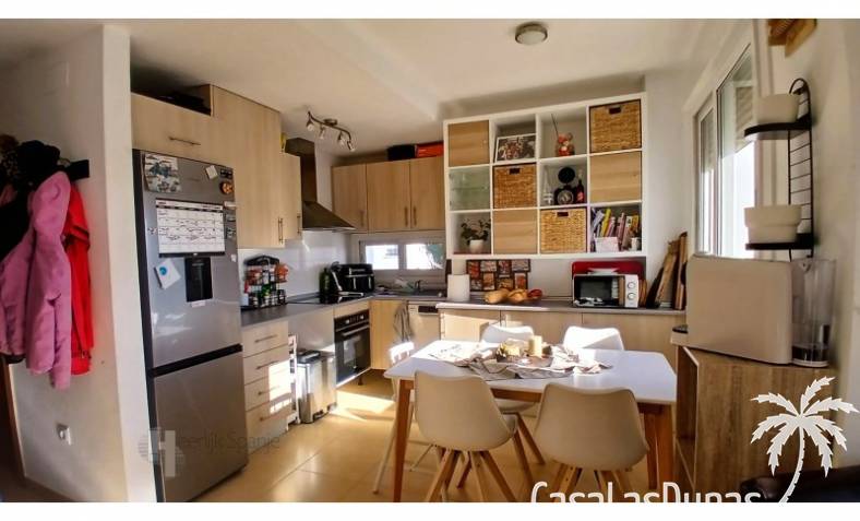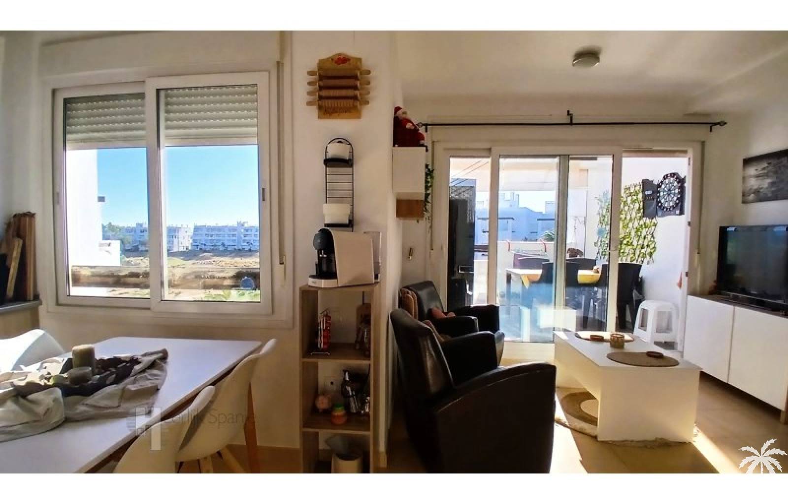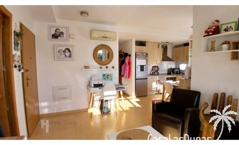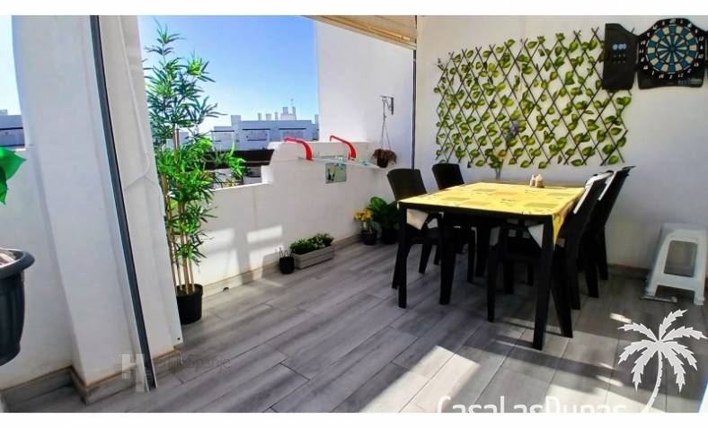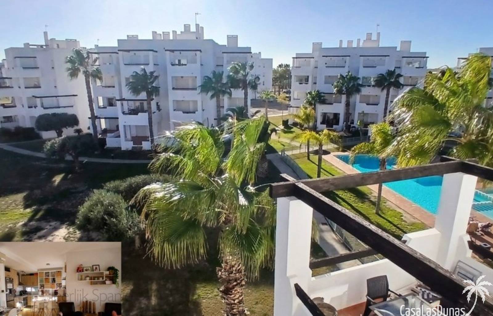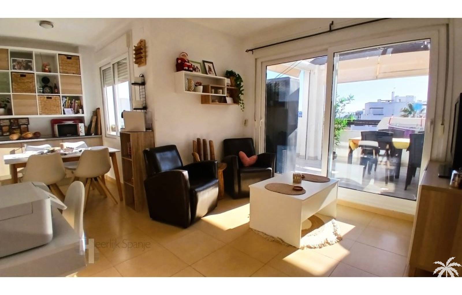 ZUIDGERICHT 3-SLK PENTHOUSE MET 2 BADKAMERS EN RUIM TERRAS OP LAS TERRAZAS DE LA TORRE GOLF Dit lichtrijk penthouse appartement in het groene hart van Roldán biedt alles voor wie wil ontspannen in de Spaanse zon. Een 3-slaapkamerappartement vinden op dit resort? Dat is eerder uitzonderlijk! Dit instapklaar appartement combineert ruimte, zon en comfort met een heerlijk terras dat de hele dag zon vangt. Dankzij de zuidelijke oriëntatie, vernieuwde terrastegels én handige zonwering is het hier genieten in alle seizoenen. Perfect voor wie nét wat meer ruimte zoekt, of wil investeren in een geliefd golfresort met uitstekende faciliteiten. De woning maakt deel uit van een verzorgde en beveiligde urbanisatie met meerdere zwembaden en ligt op 25min rijden van meerdere stranden. BINNEN: - Bebouwde oppervlakte: 87 m² - 3 slaapkamers - 2 badkamers, waarvan 1 vernieuwd - Open keuken - Airconditioning - Dubbele beglazing - Energiecertificaat: info volgt BUITEN: - Zuidgericht terras met zon van 's morgens tot 's avonds - Aluminium zonnescreens + manuele zonneluifel (toldo) - Nieuwe terrastegels - Meerdere gemeenschappelijke zwembaden - Off-road parking - Lift aanwezig in het gebouw EXTRA INFO: - Vraagprijs: €155.000 - Gemeenschappelijke kosten: €140 per maand - Bouwjaar: info volgt - Toeristische verhuur toegestaan in dit resort (Licentie nog aan te vragen) OMGEVING: Las Terrazas de la Torre Golf Resort is een verzorgd en rustig domein met meerdere zwembaden, een fitness, bar/restaurant, supermarkt (SPAR), wasserij en speeltuin. In december 2025 wordt er ook een nieuwe bar geopend op het terrein. De toegang tot het domein is beveiligd, wat zorgt voor extra gemoedsrust. Hoewel het resort zelf in een rustige, groene omgeving ligt, bereik je met de auto in korte tijd verschillende levendige plekken: - Strand: op slechts 14 km (±20-25 min rijden) - Centrum Roldán: 5 minuten rijden - Stad Murcia: 30 minuten - La Zenia Boulevard (shopping): 25 minuten - Luchthaven Murcia (Corvera): 17 km - Luchthaven Alicante: ca. 95 km #ref:HS_15