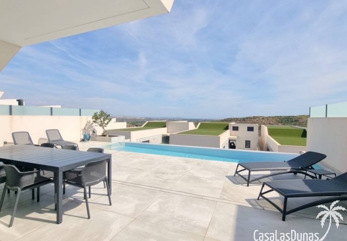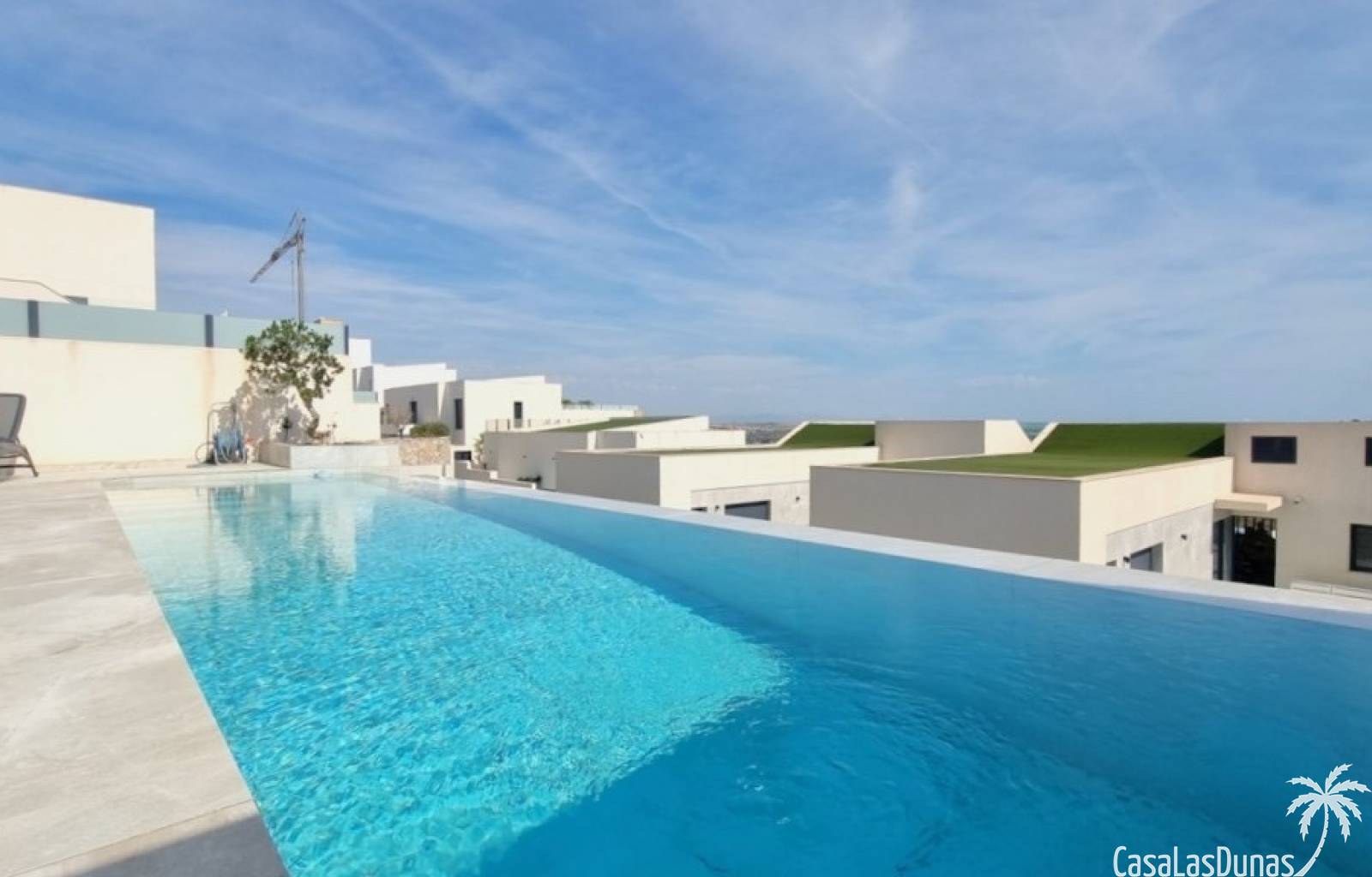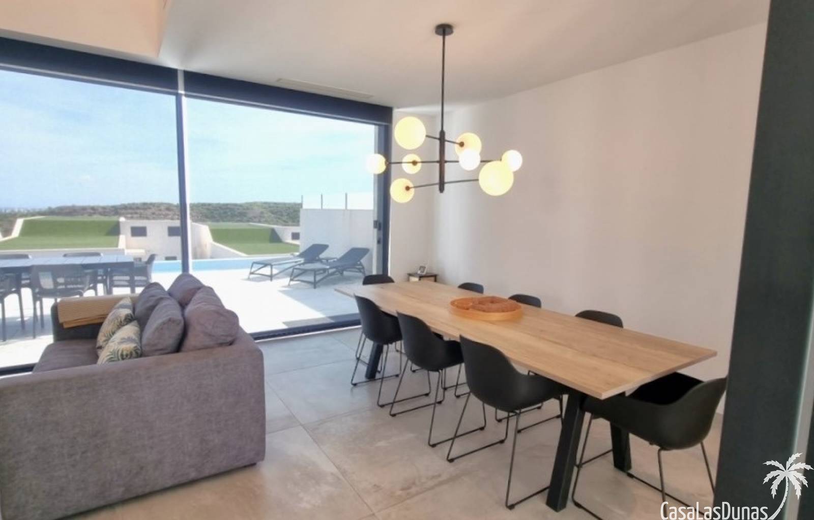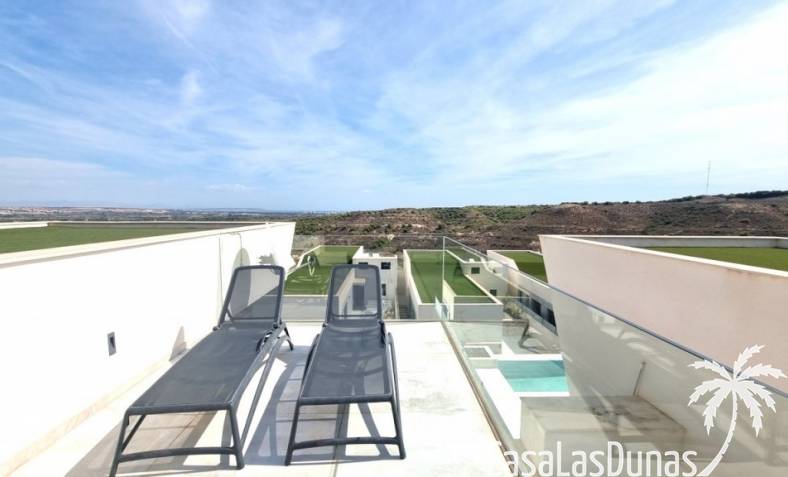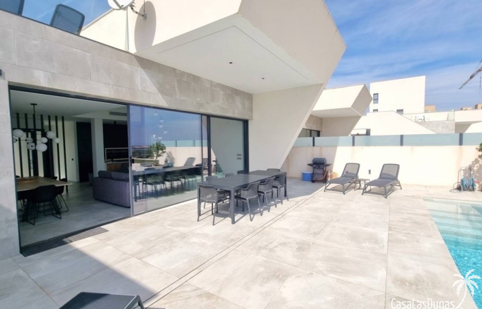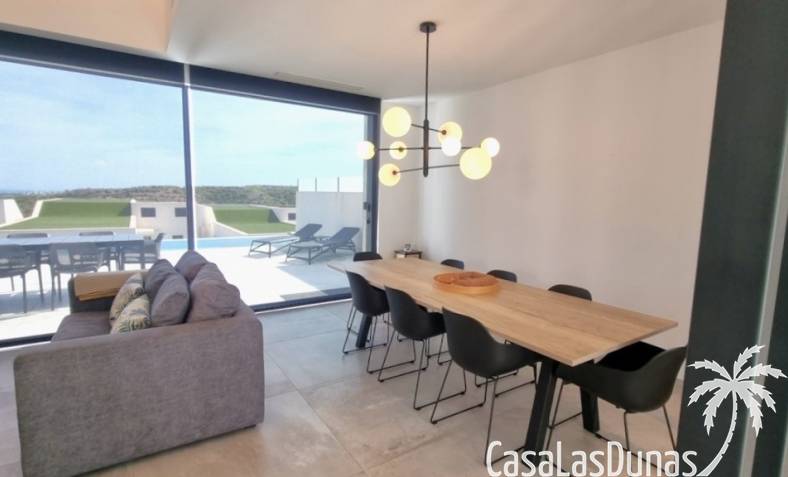 Spectaculair Uitzicht: Vanaf de infinity pool heb je een panoramisch zicht op de skyline van Guardamar, het natuurpark El Recorral en de glinsterende zee. De aangelegde terrassen en het solarium bieden de perfecte setting om van deze prachtige omgeving te genieten en de buitenruimtes optimaal te benutten voor ontspanning en vermaak.Luxueuze Voorzieningen: Vloerverwarming in de badkamers zorgt voor extra comfort, en de garage biedt veilige opslag voor voertuigen. Daarnaast is er een aparte wasruimte voor extra gemak.Instapklare Woning: Deze villa is volledig bemeubeld en uitgerust, waardoor je direct kunt intrekken en genieten zonder verdere voorbereidingen.Modern Comfort: Gebouwd in 2018, biedt deze woning modern comfort en state-of-the-art voorzieningen.