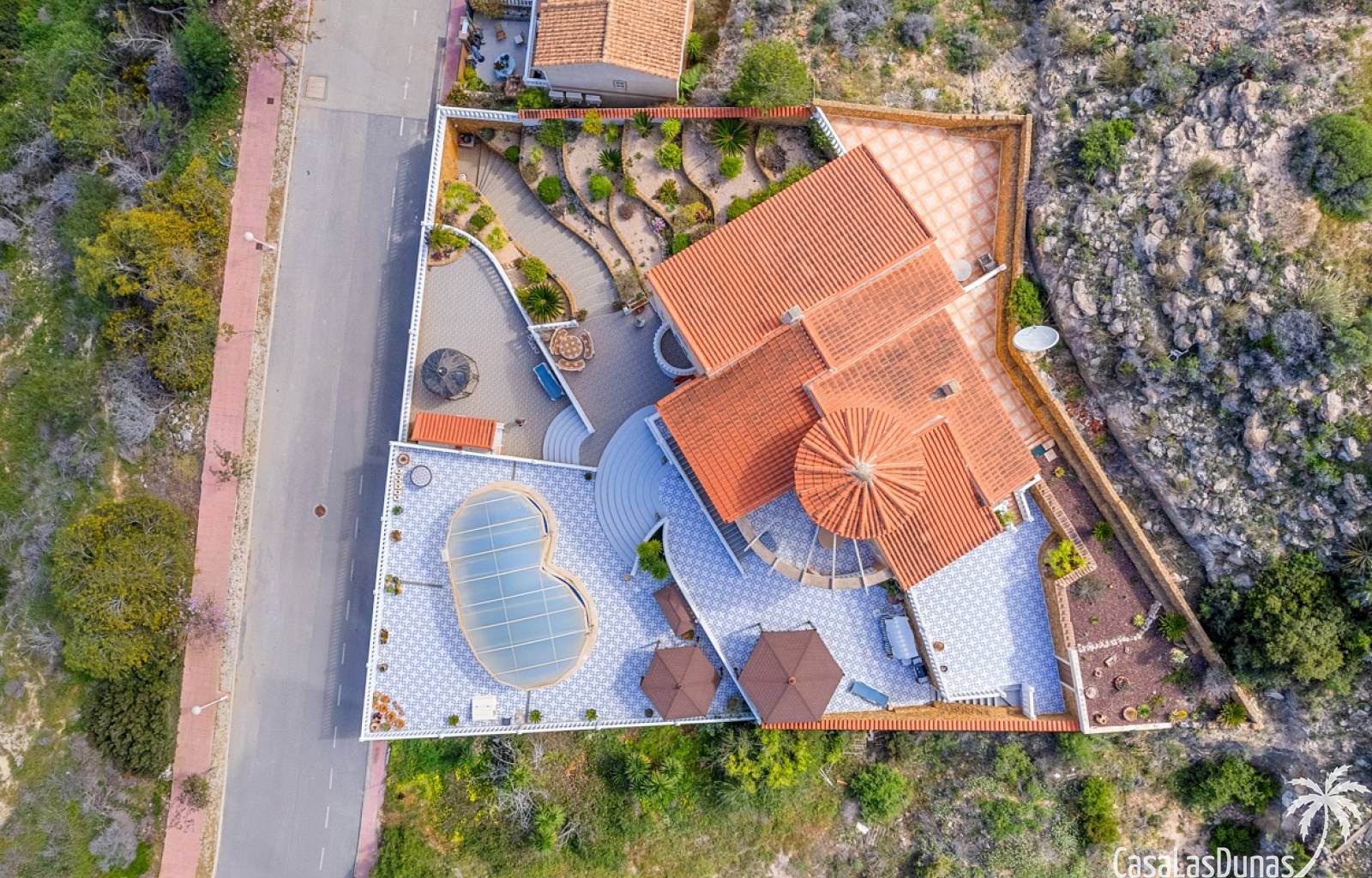 De buitenruimtes zijn ontworpen voor comfort en ontspanning, met een privézwembad, meerdere terrassen en een zithoek onder een pergola. Het pand beschikt ook over een privégarage en een aparte berging. Extra kenmerken zijn airconditioning, ingebouwde kasten en een oostelijke oriëntatie die de ochtendzon opvangt.