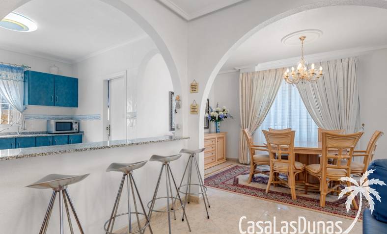 Deze ruime en goed ontworpen villa biedt privacy, flexibele woonmogelijkheden en royale buitenruimtes in een van de rustigste woonwijken van Ciudad Quesada. Gelegen aan het einde van een rustige eenrichtingsstraat, biedt het pand een kalme omgeving met minimale verkeersdrukte, terwijl het toch dicht bij winkels, restaurants en dagelijkse voorzieningen ligt.