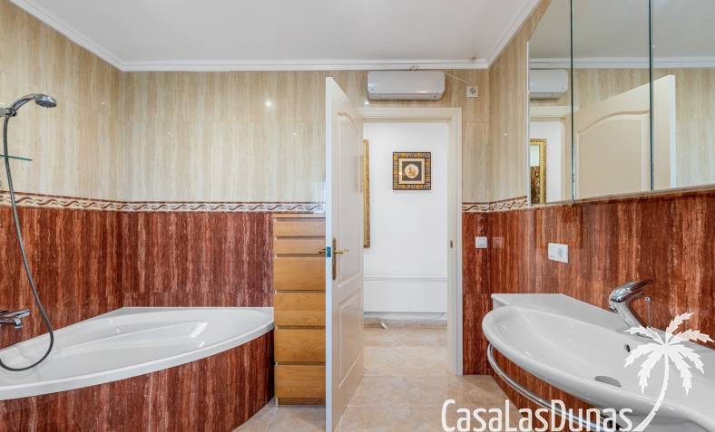 Met in totaal zeven slaapkamers en zes badkamers is deze villa een veelzijdige en uitnodigende woning, geschikt voor gezinnen, meergeneratiewonen of wie op zoek is naar een ruime woning in een rustige maar goed verbonden omgeving.