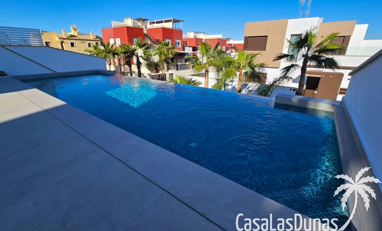 Met een woonoppervlakte van maar liefst ruim 200 m², verdeeld over drie volwaardige verdiepingen, biedt deze woning alle ruimte voor zowel permanent wonen als zorgeloos genieten van uw vakanties onder de Spaanse zon. Hier is werkelijk aan alles gedacht.