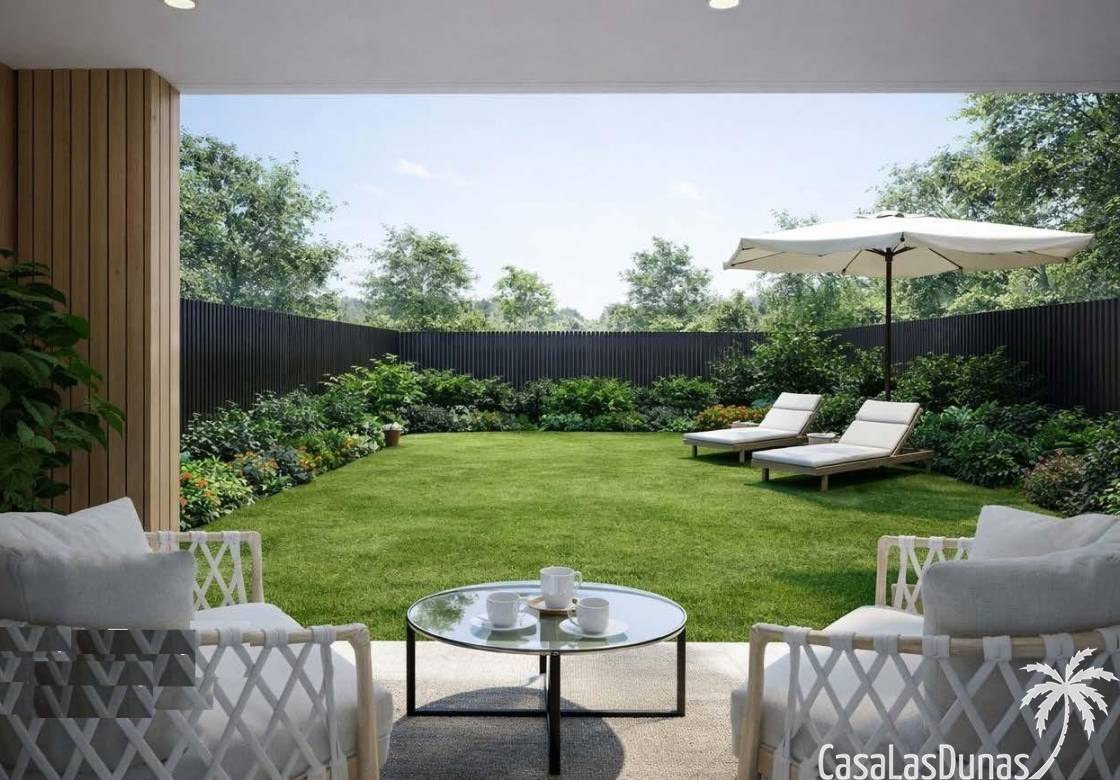 Bewoners kunnen genieten van aangelegde tuinen en een gemeenschappelijk zwembad binnen deze omheinde gemeenschap. Het ontwerp bevordert privacy, ontspanning en verbinding met de natuur en biedt een rustige sfeer dicht bij zowel de zee als de bergen.