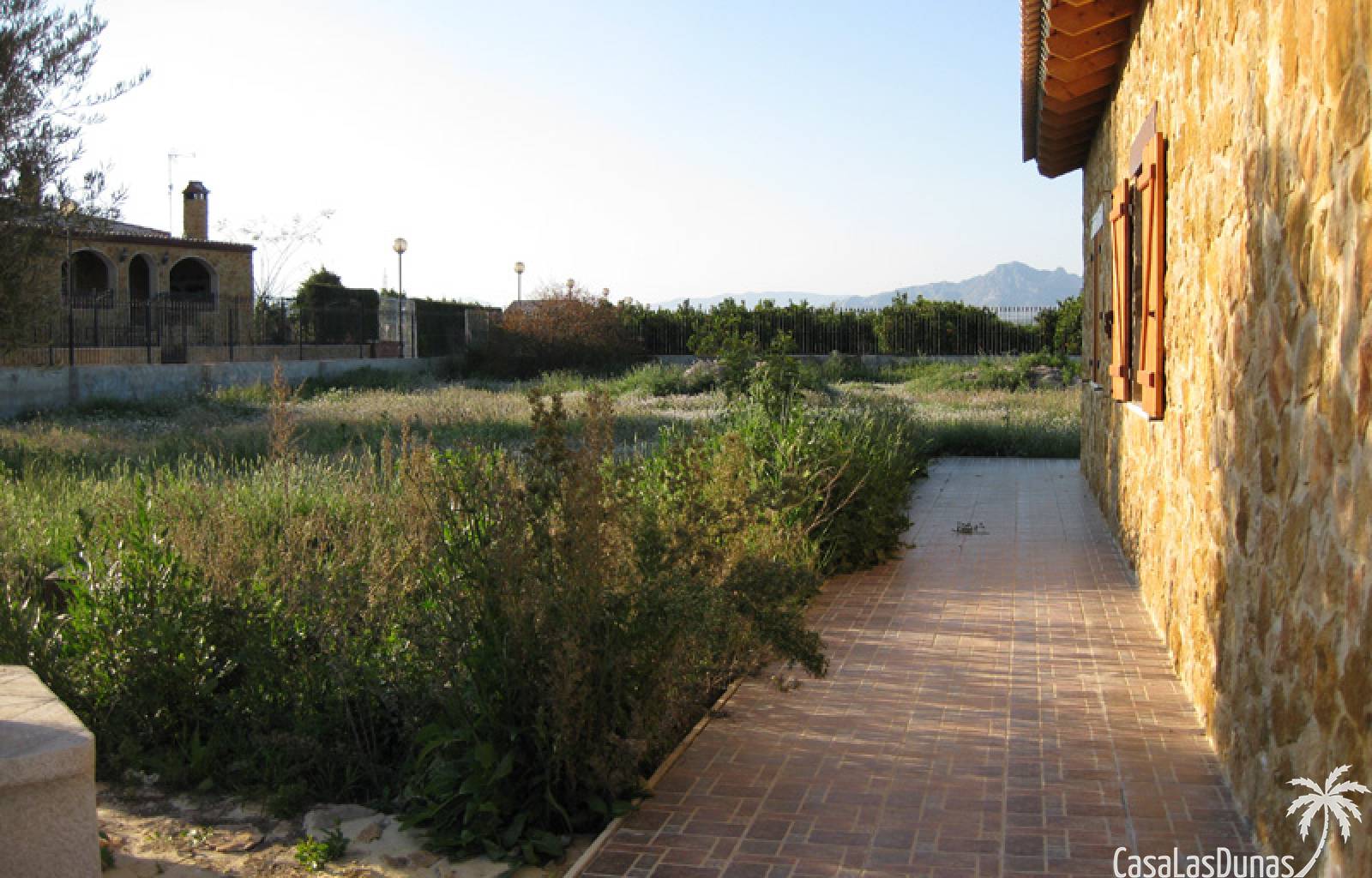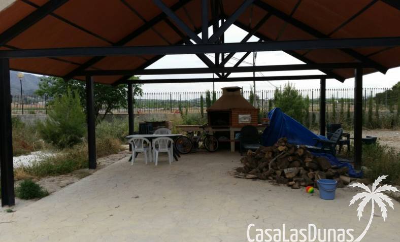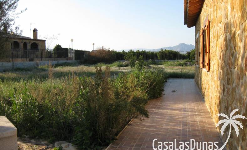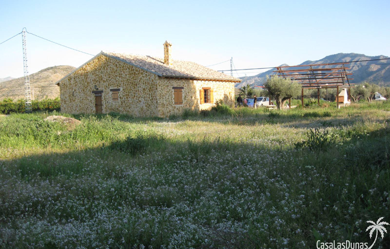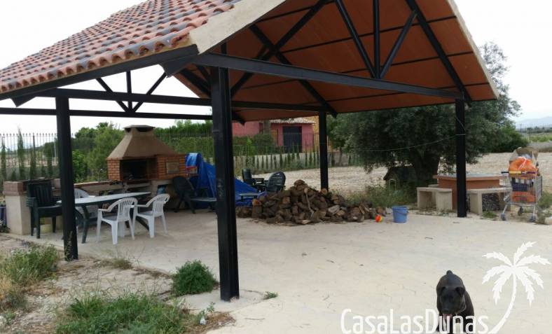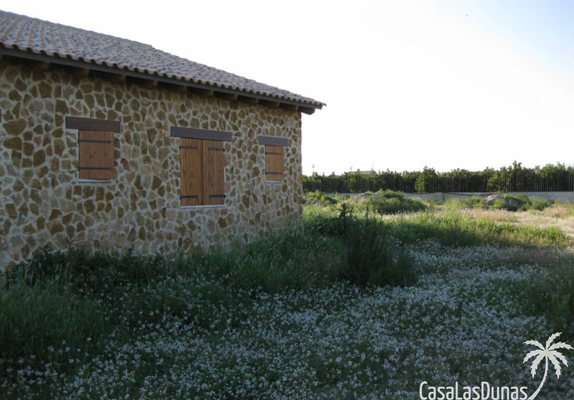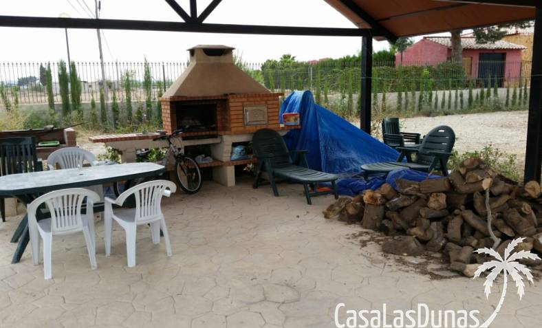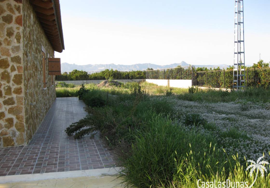 Rustieke villa in Castiliaanse stijl van 150 m² met hoogwaardige afwerking Exclusieve villa in rustieke Castiliaanse stijl met een bebouwde oppervlakte van 150 m², gebouwd met materialen van topkwaliteit. De gevel is bekleed met zandsteen, het interieur heeft een houten zadeldak met zichtbare balken, plint van oud travertijnmarmer, een gietijzeren houtkachel en eikenhout timmerwerk. De ramen hebben dubbele houten luiken en dubbel glas (Climalit-type) voor uitstekende isolatie.De woning bevindt zich in Benferri (Alicante), met een uitstekende ligging, op slechts 2 minuten van de A7-snelweg richting Alicante en Murcia. Afstanden: 7 km naar Orihuela, 25 km naar Murcia en Elche, 45 km naar Alicante, 35 km naar de kust (Guardamar del Segura) en 40 km naar de luchthaven Alicante Miguel Hernández.De woning beschikt over drie slaapkamers, twee badkamers, woonkamer, keuken, berging en wasruimte.Buiten bevindt zich een overdekt terras van ongeveer 60 m² met ijzeren constructie en een zadeldak van metselwerk, uitgerust met gootsteen, barbecue, houtoven en open haard.Het perceel van ongeveer 5.000 m² is volledig ommuurd en omheind met een decoratief smeedijzeren hek. Het heeft buitenverlichting, bomen en sierplanten, en een druppelirrigatiesysteem.De woning is volledig geregistreerd, met elektriciteit en water, TV-antenne, privébewakingssysteem met camera's en internetverbinding.