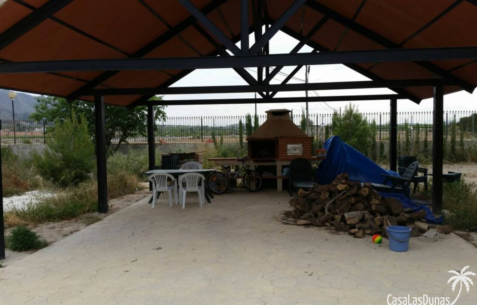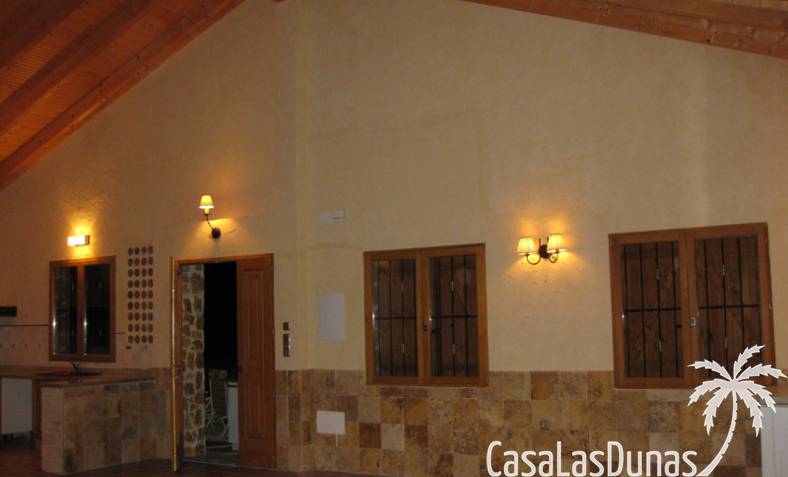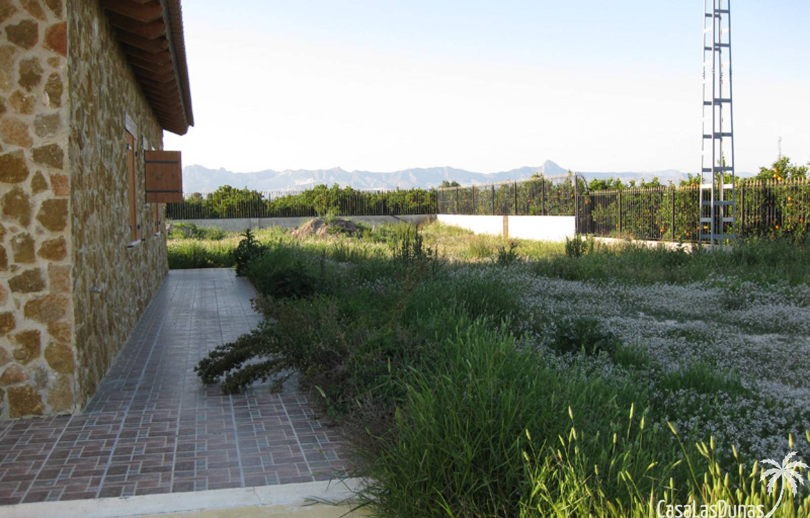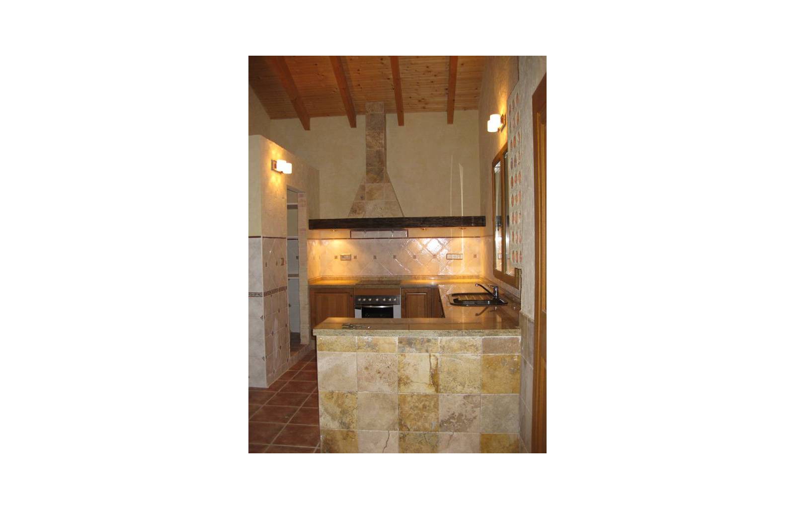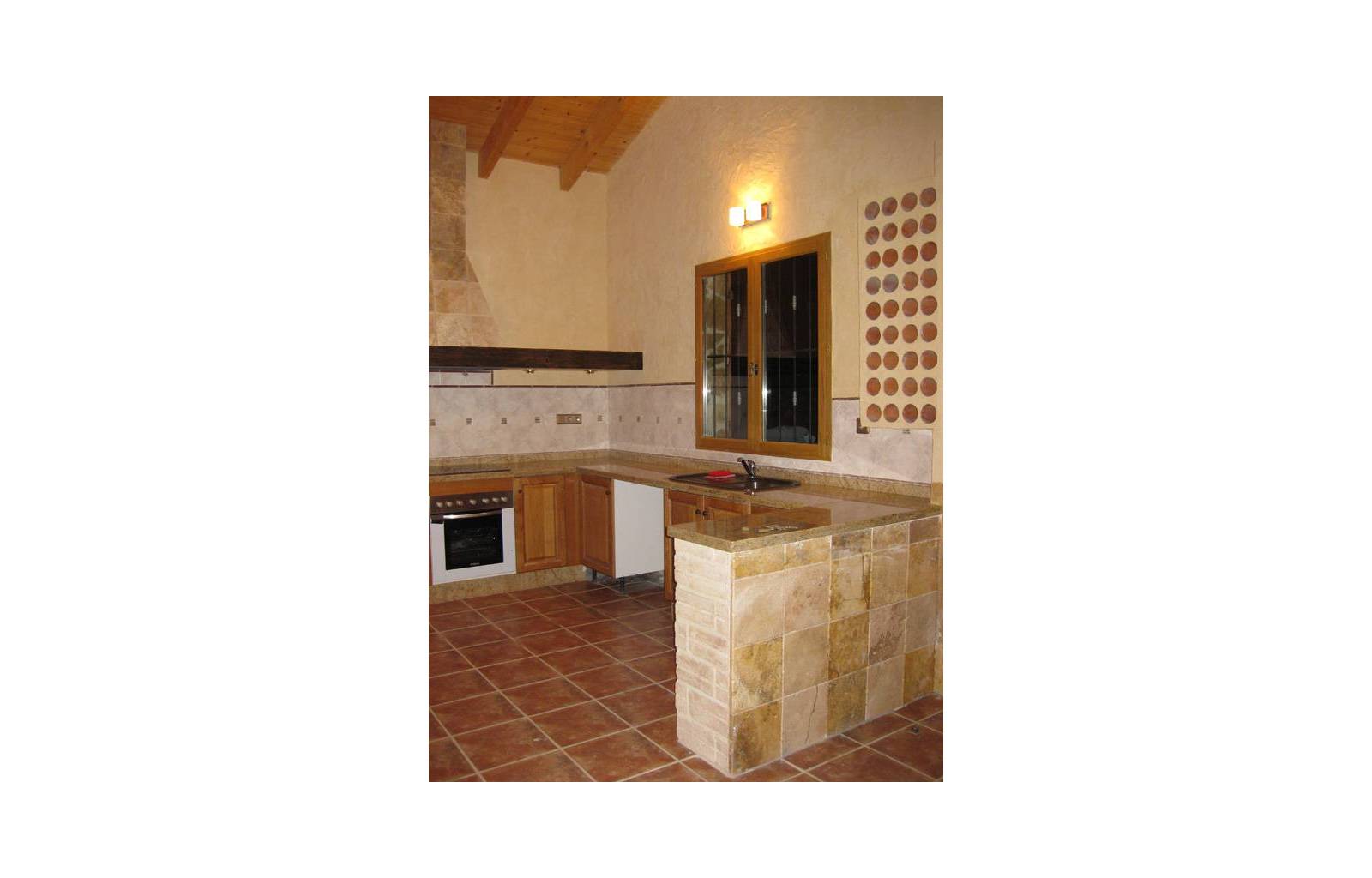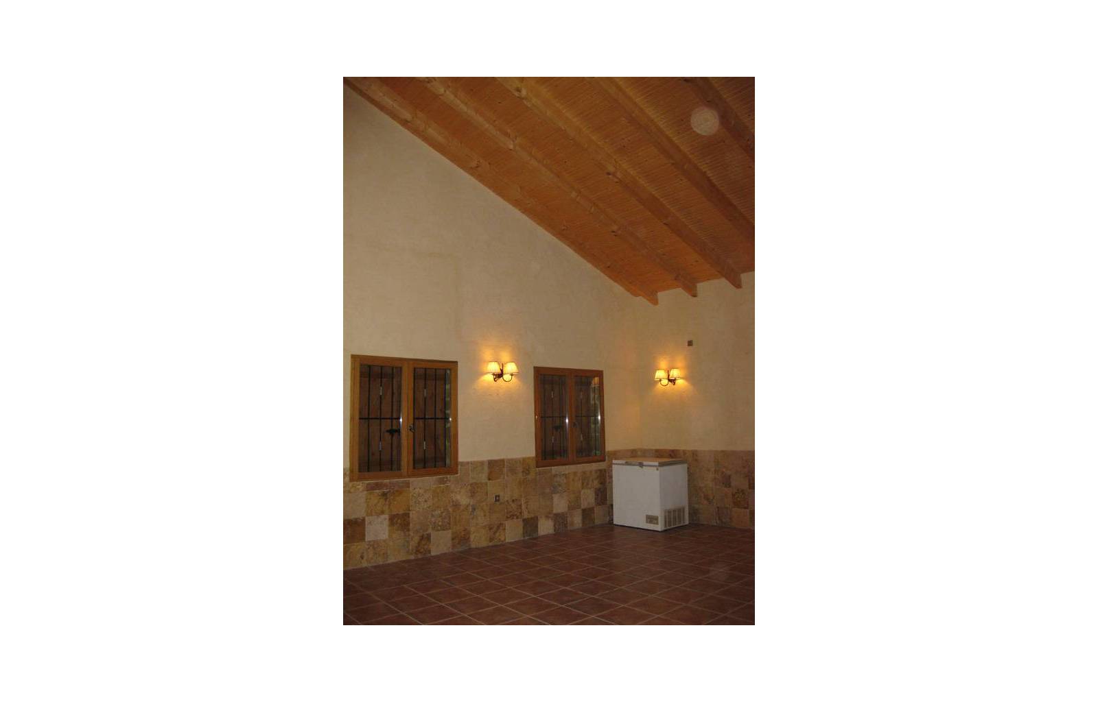 Rustieke villa in Castiliaanse stijl van 150 m² met hoogwaardige afwerking Exclusieve villa in rustieke Castiliaanse stijl met een bebouwde oppervlakte van 150 m², gebouwd met materialen van topkwaliteit. De gevel is bekleed met zandsteen, het interieur heeft een houten zadeldak met zichtbare balken, plint van oud travertijnmarmer, een gietijzeren houtkachel en eikenhout timmerwerk. De ramen hebben dubbele houten luiken en dubbel glas (Climalit-type) voor uitstekende isolatie.De woning bevindt zich in Benferri (Alicante), met een uitstekende ligging, op slechts 2 minuten van de A7-snelweg richting Alicante en Murcia. Afstanden: 7 km naar Orihuela, 25 km naar Murcia en Elche, 45 km naar Alicante, 35 km naar de kust (Guardamar del Segura) en 40 km naar de luchthaven Alicante Miguel Hernández.De woning beschikt over drie slaapkamers, twee badkamers, woonkamer, keuken, berging en wasruimte.Buiten bevindt zich een overdekt terras van ongeveer 60 m² met ijzeren constructie en een zadeldak van metselwerk, uitgerust met gootsteen, barbecue, houtoven en open haard.Het perceel van ongeveer 5.000 m² is volledig ommuurd en omheind met een decoratief smeedijzeren hek. Het heeft buitenverlichting, bomen en sierplanten, en een druppelirrigatiesysteem.De woning is volledig geregistreerd, met elektriciteit en water, TV-antenne, privébewakingssysteem met camera's en internetverbinding.