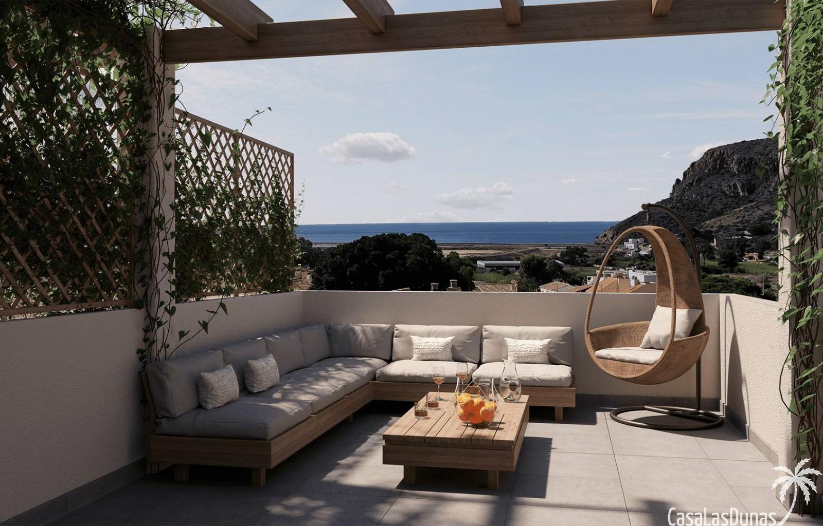 Vanaf uw privéterras kunt u genieten van een 360 graden uitzicht op de zee en het omliggende landschap, waardoor een unieke ruimte ontstaat om te ontspannen, te zonnen of gasten te ontvangen.