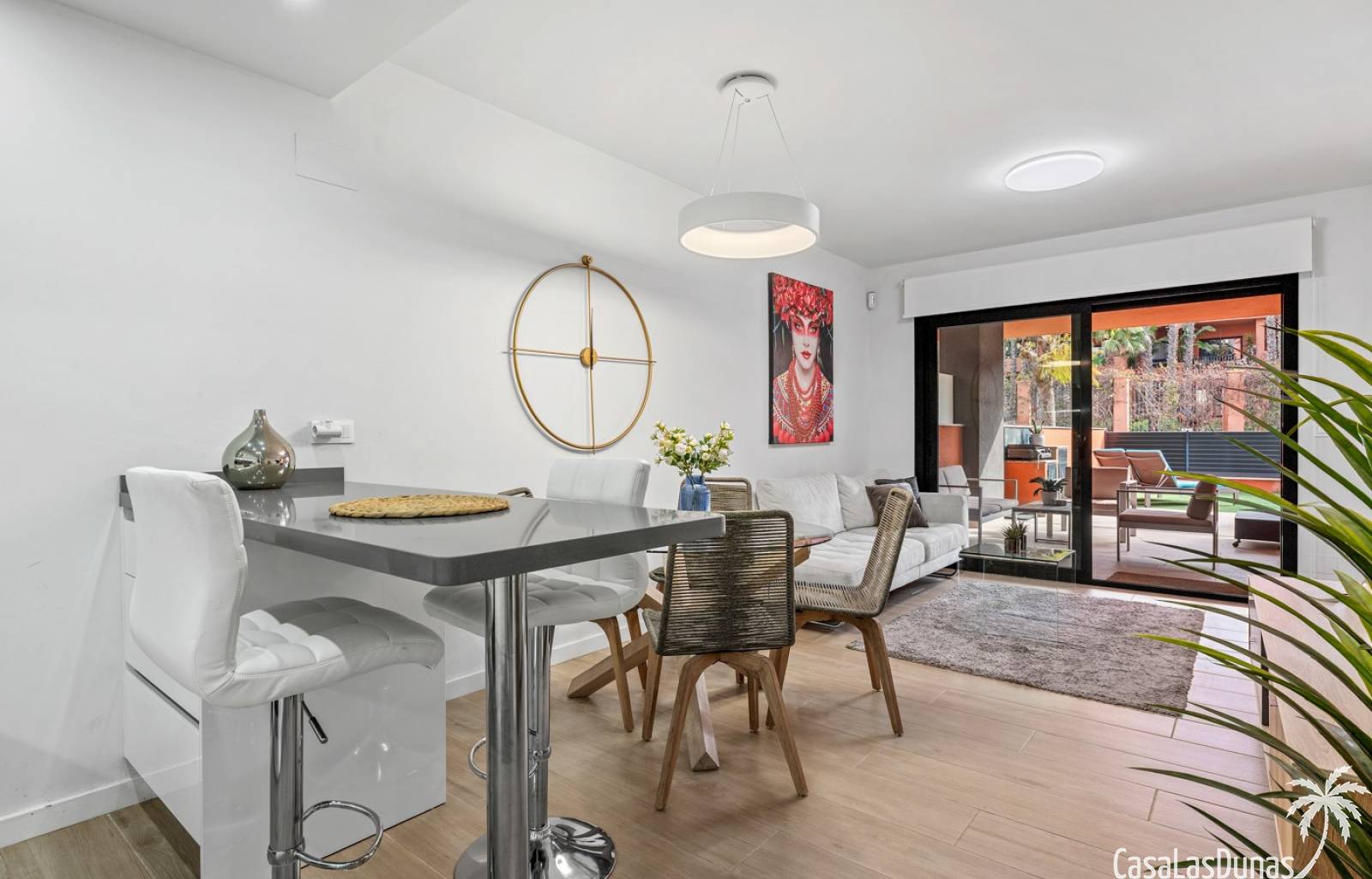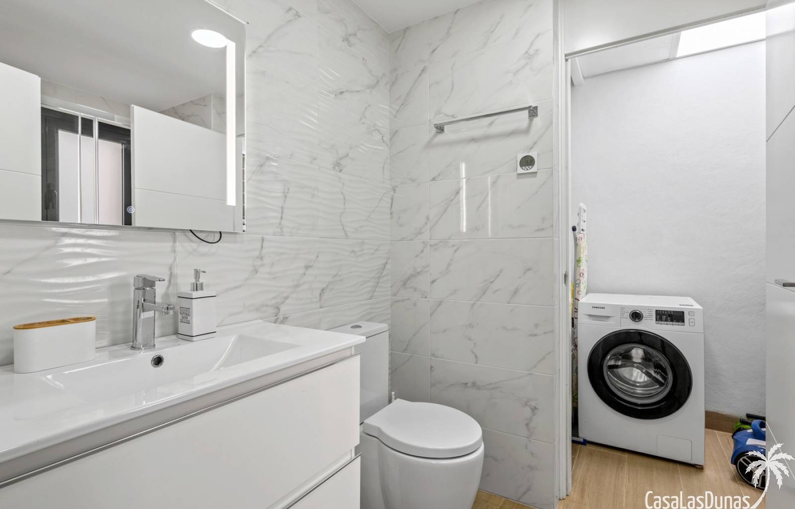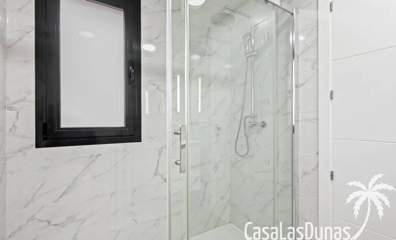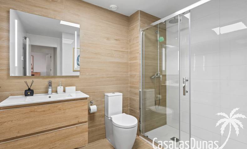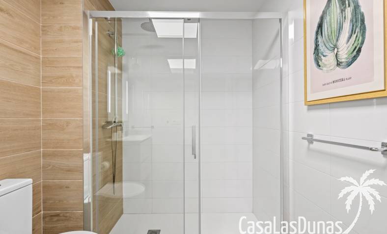 De woning beschikt over twee slaapkamers en twee badkamers en is praktisch ingedeeld met een open leefruimte en keuken, waardoor er een aangenaam gevoel van ruimte en licht ontstaat en het dagelijkse wonen bijzonder comfortabel aanvoelt. Vanuit de woonkamer is er directe toegang tot het terras en de tuin, wat zorgt voor een vlotte overgang tussen binnen en buiten.