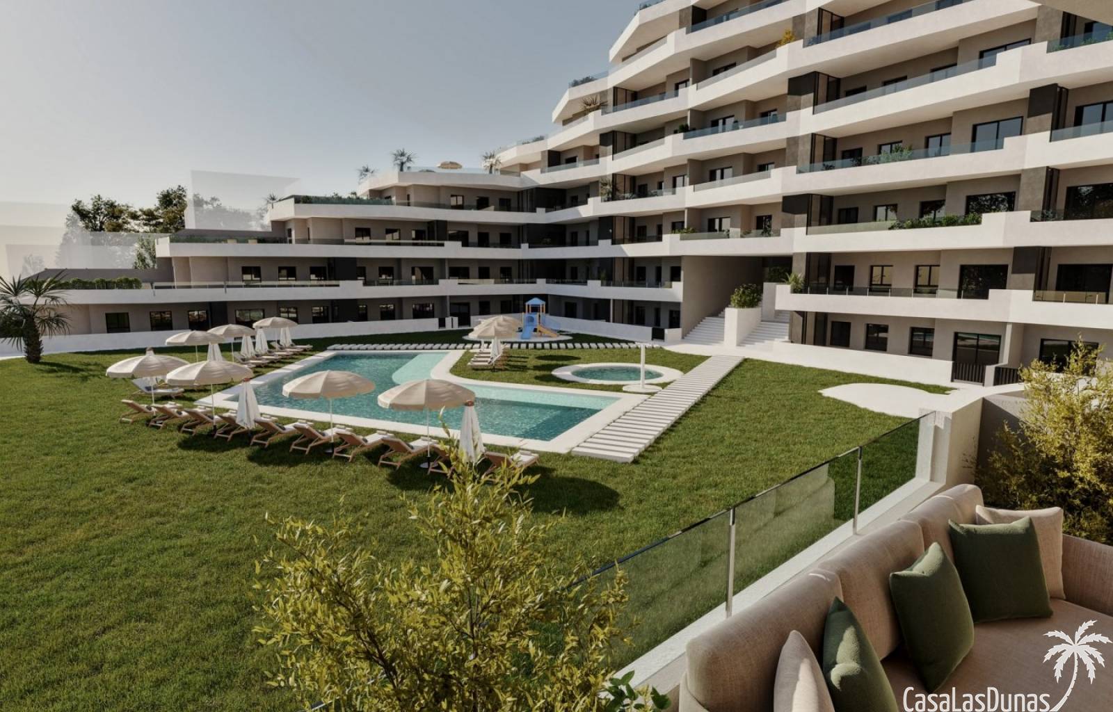 Volledig afgesloten woonwijk met gemeenschappelijke zwembaden voor volwassenen en kinderen, groene zones, speeltuin voor kinderen en een zone voor volwassenen met bio-gezondheidscircuit, gelegen aan de Costa Blanca in San Miguel de Salinas nabij golfbanen, strand en winkelcentra.