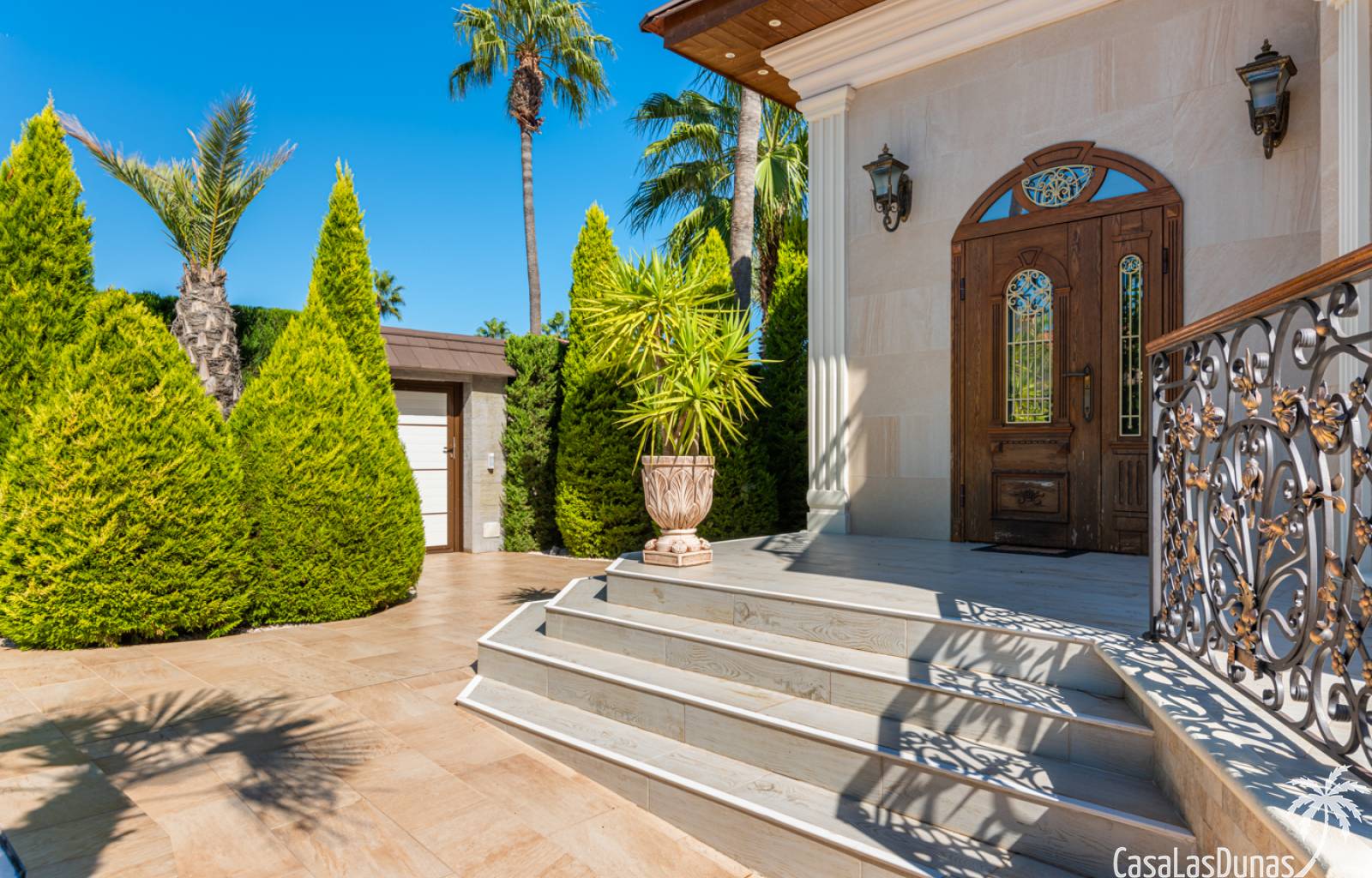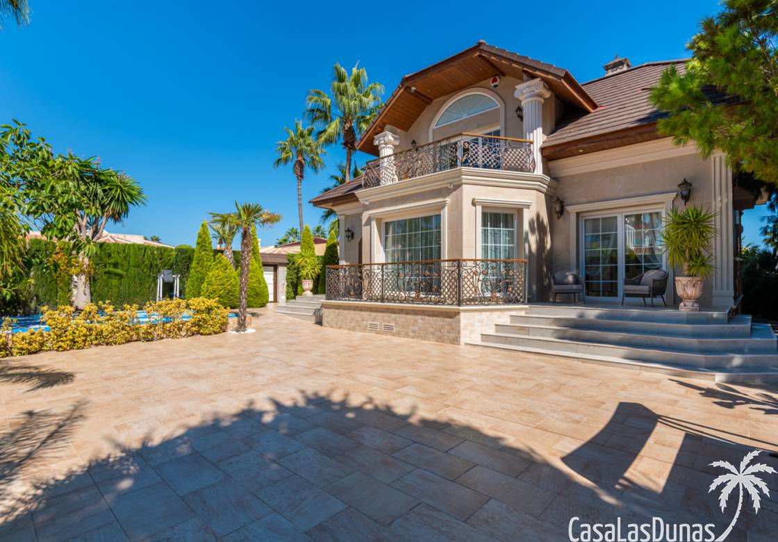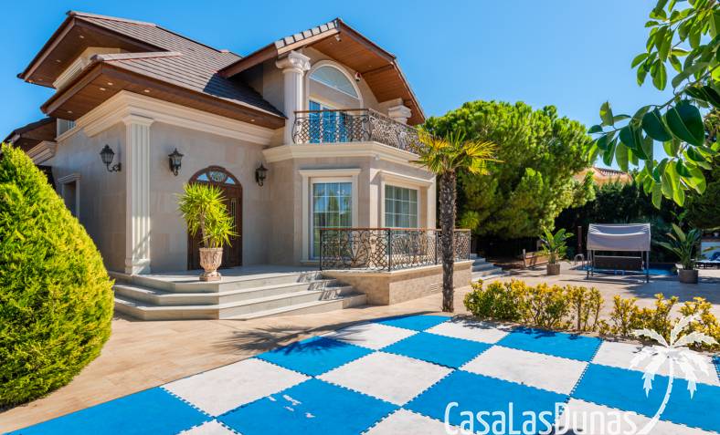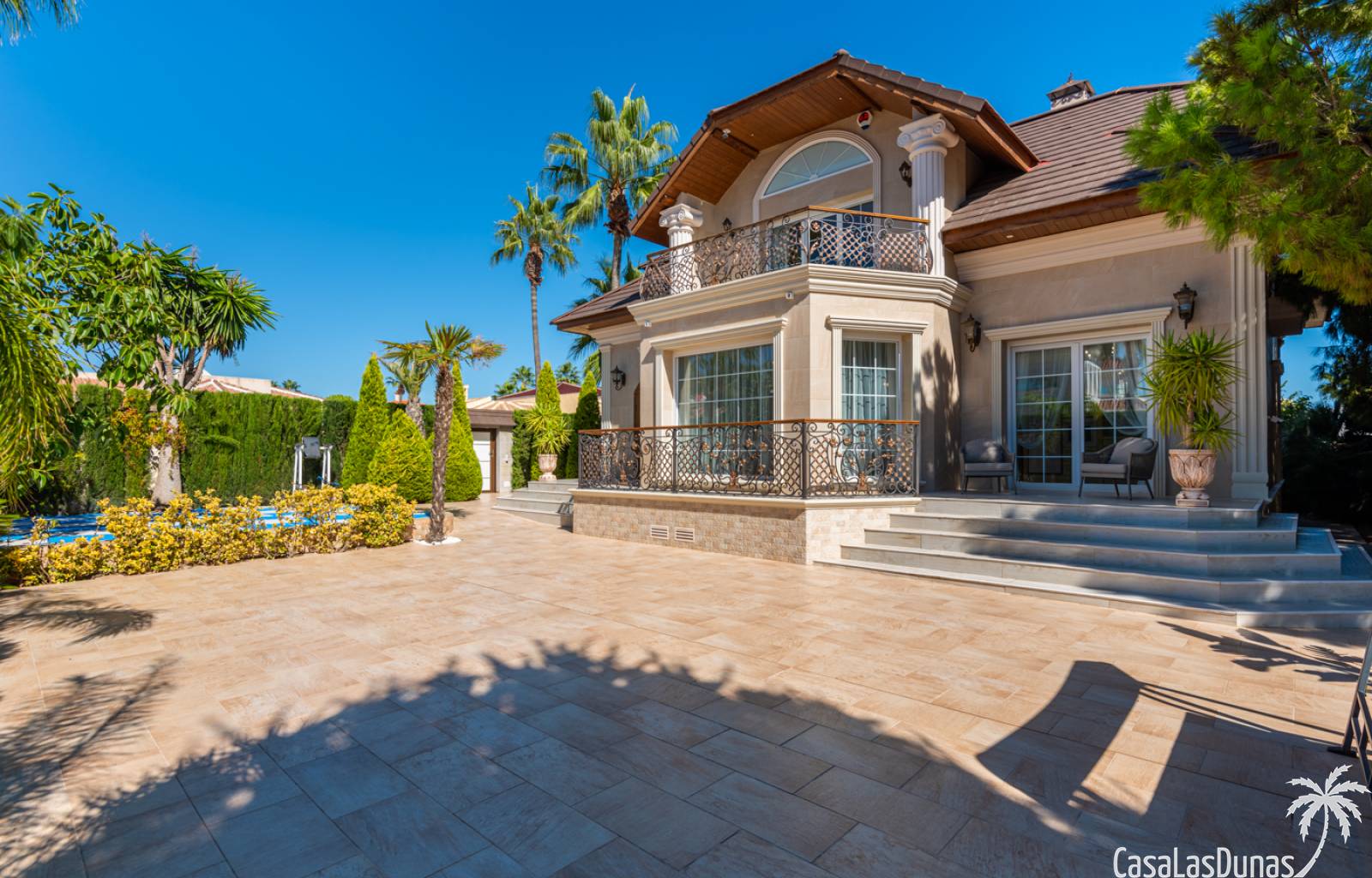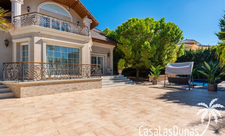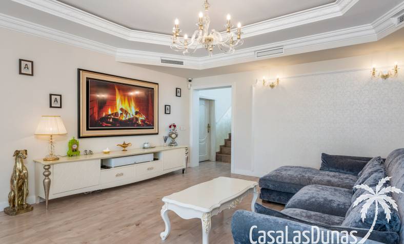Met genoegen presenteren wij u deze prachtige woning met 5 slaapkamers en 3 badkamers in de populaire wijk Doña Pepa - Ciudad Quesada. De woning heeft een woonoppervlakte van 303 m², inclusief een garage van 20 m², en bestaat uit twee verdiepingen. U komt binnen in een open hal met een lichte en open toegang tot de woonkamer met hoge plafonds. Verder vindt u op de begane grond 2 tweepersoonsslaapkamers en 1 badkamer. De woonkamer is ruim en luchtig met directe toegang tot een prachtig terras met uitzicht op de tuin. Op deze verdieping vindt u ook een wasruimte en directe toegang tot de garage.