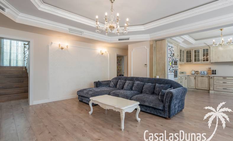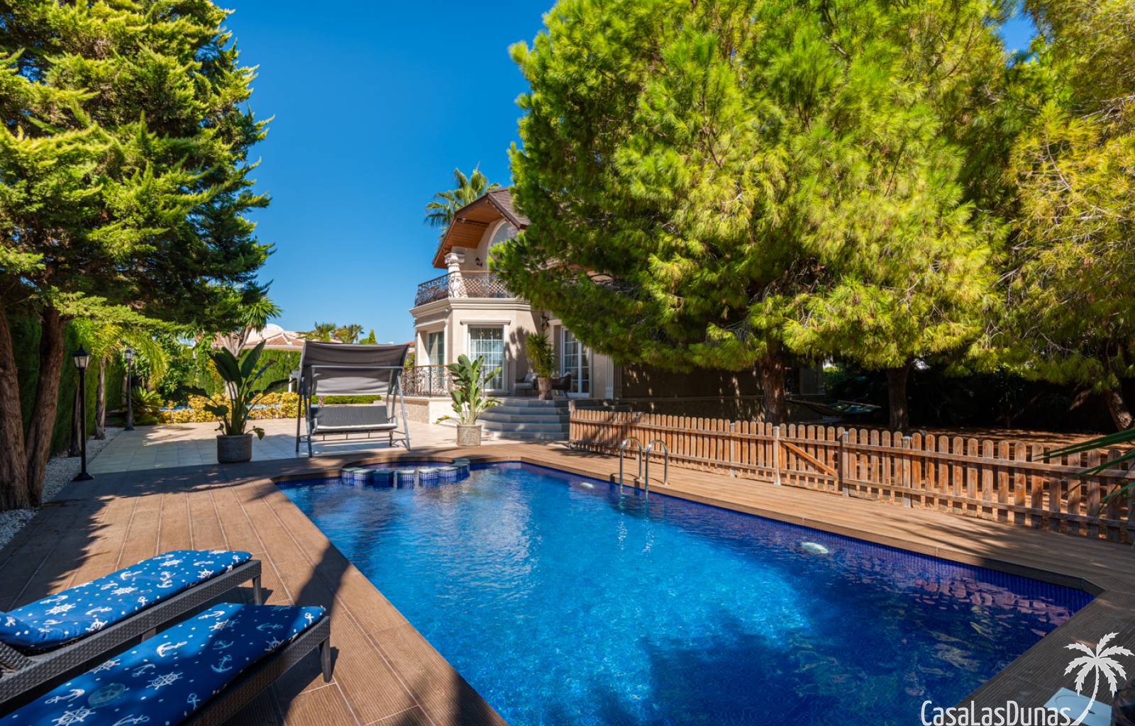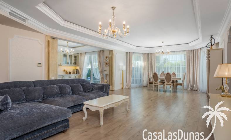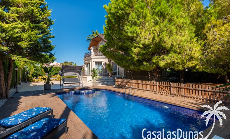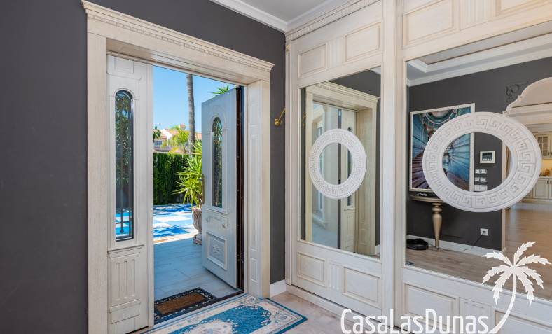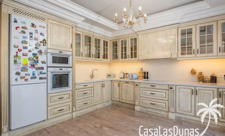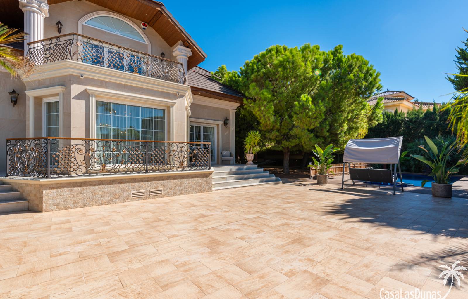 Met genoegen presenteren wij u deze prachtige woning met 5 slaapkamers en 3 badkamers in de populaire wijk Doña Pepa - Ciudad Quesada. De woning heeft een woonoppervlakte van 303 m², inclusief een garage van 20 m², en bestaat uit twee verdiepingen. U komt binnen in een open hal met een lichte en open toegang tot de woonkamer met hoge plafonds. Verder vindt u op de begane grond 2 tweepersoonsslaapkamers en 1 badkamer. De woonkamer is ruim en luchtig met directe toegang tot een prachtig terras met uitzicht op de tuin. Op deze verdieping vindt u ook een wasruimte en directe toegang tot de garage.