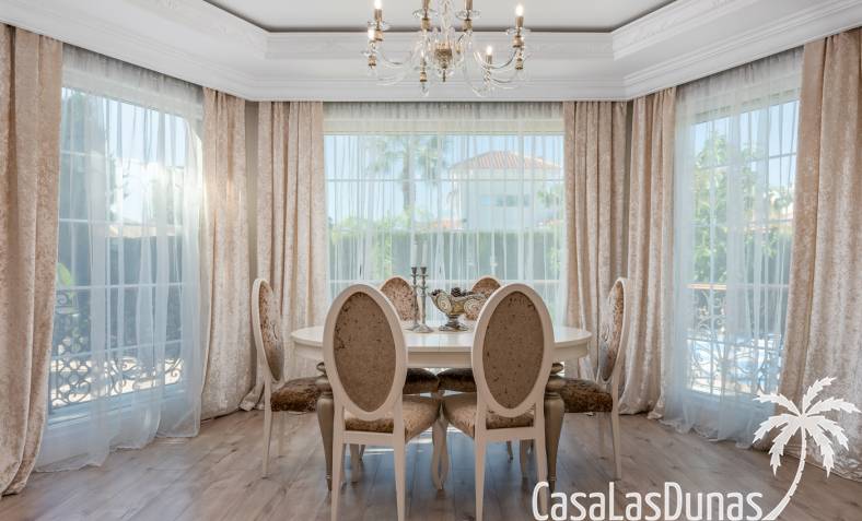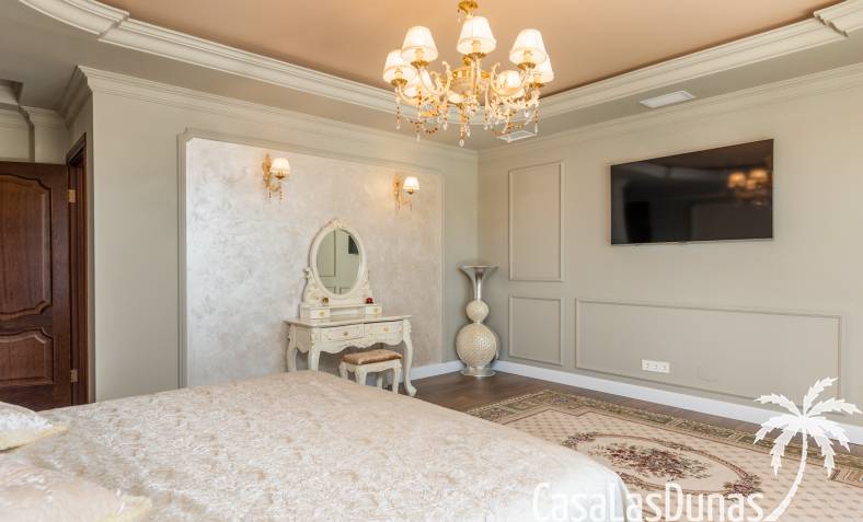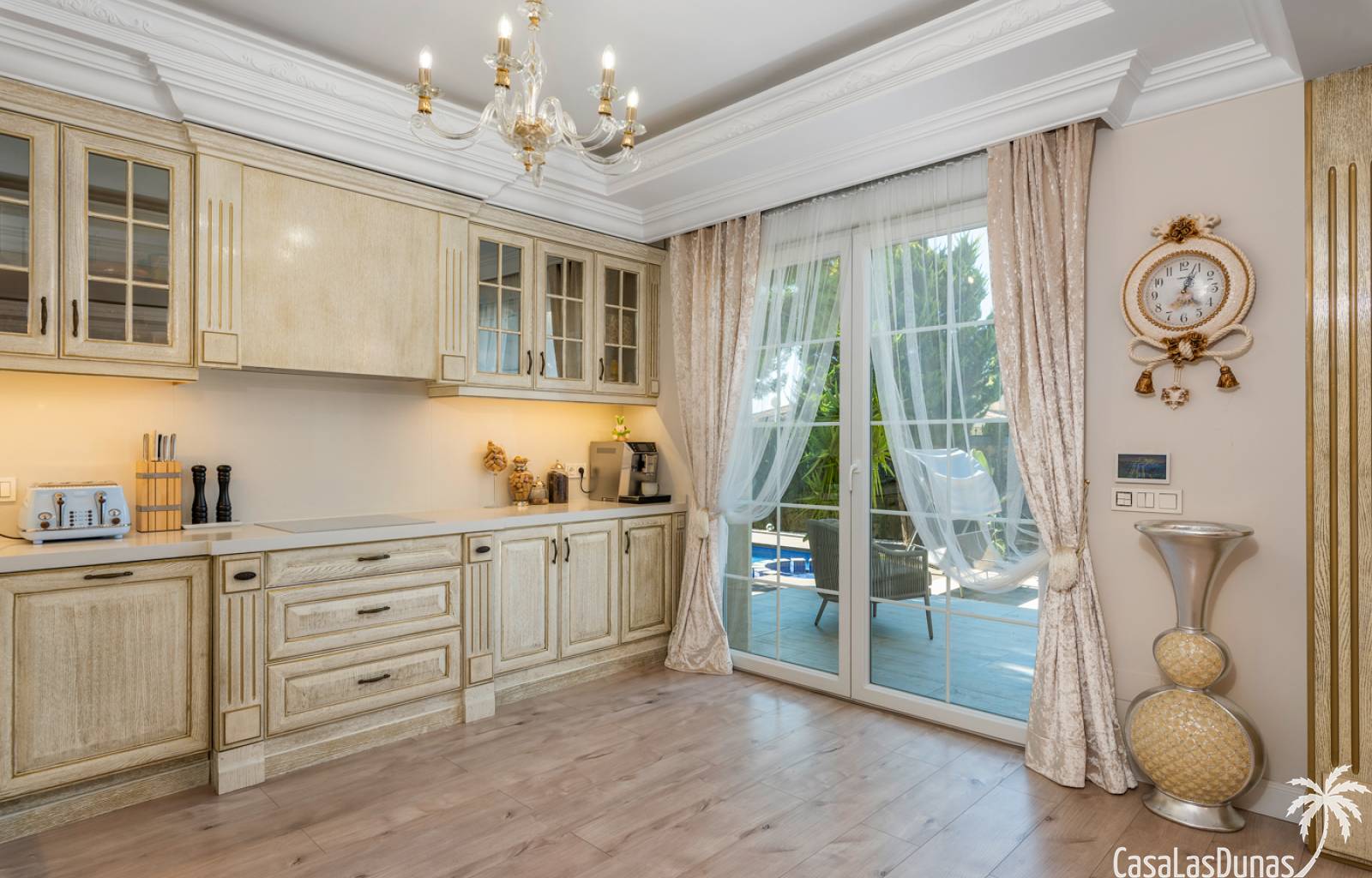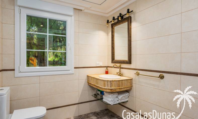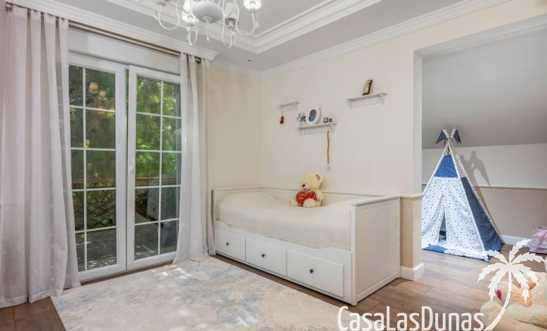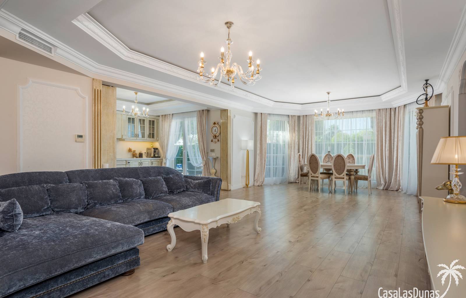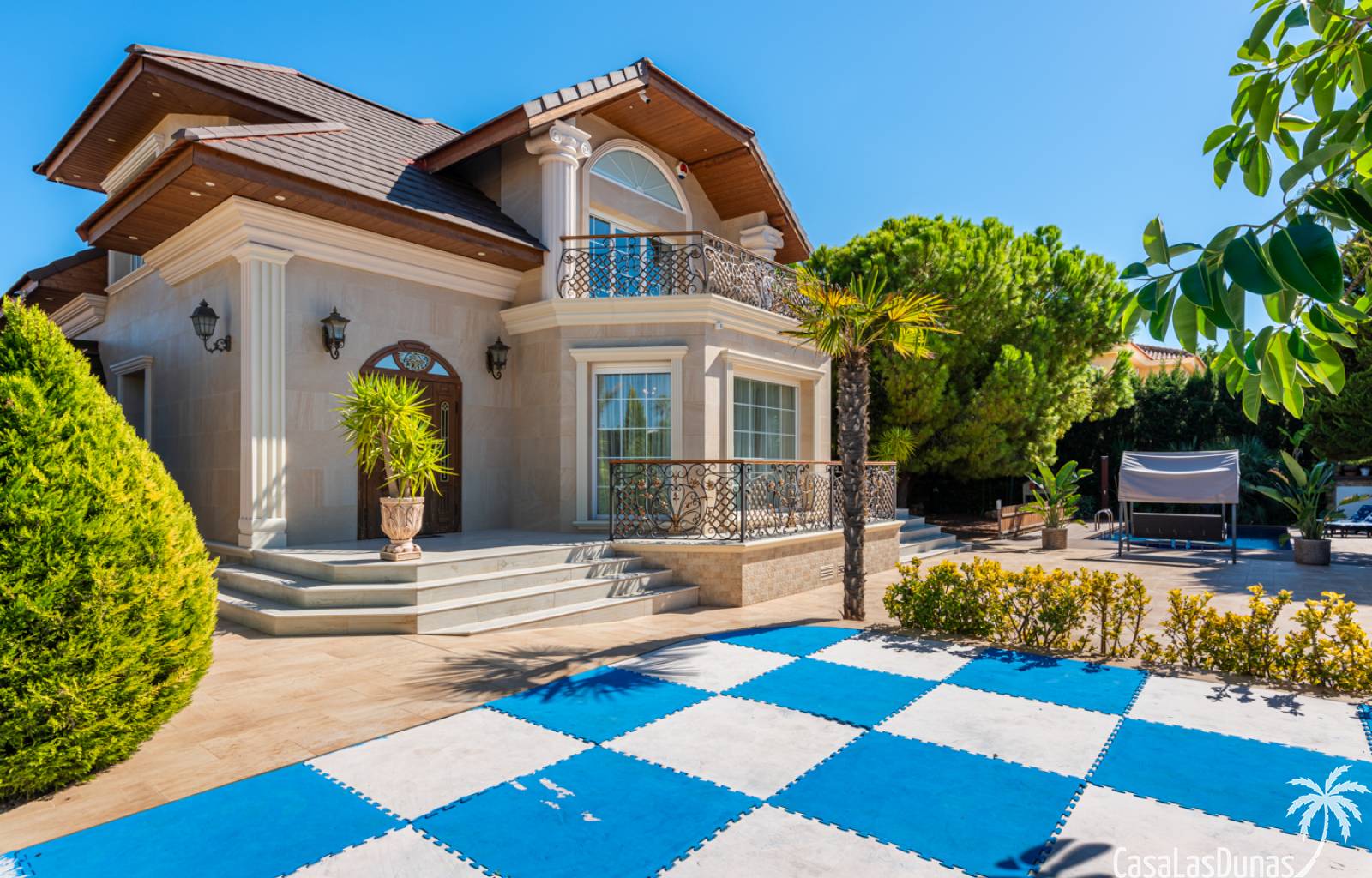 Met genoegen presenteren wij u deze prachtige woning met 5 slaapkamers en 3 badkamers in de populaire wijk Doña Pepa - Ciudad Quesada. De woning heeft een woonoppervlakte van 303 m², inclusief een garage van 20 m², en bestaat uit twee verdiepingen. U komt binnen in een open hal met een lichte en open toegang tot de woonkamer met hoge plafonds. Verder vindt u op de begane grond 2 tweepersoonsslaapkamers en 1 badkamer. De woonkamer is ruim en luchtig met directe toegang tot een prachtig terras met uitzicht op de tuin. Op deze verdieping vindt u ook een wasruimte en directe toegang tot de garage.