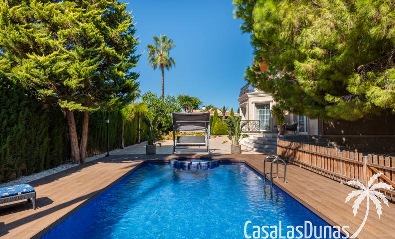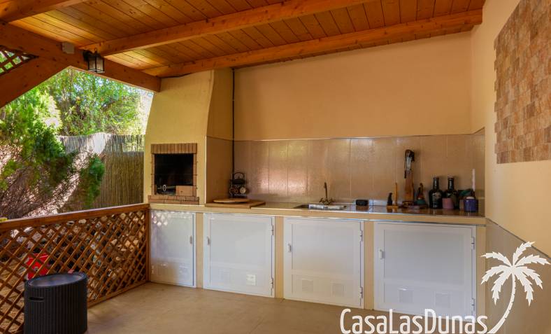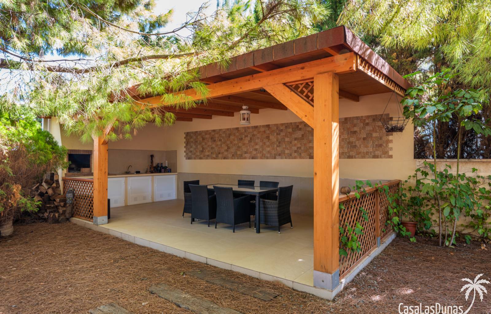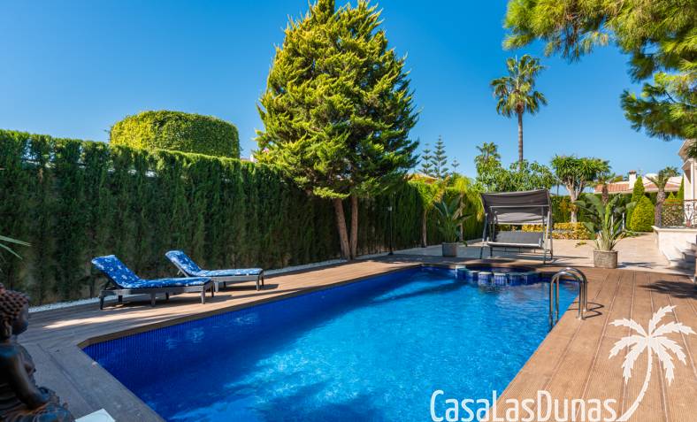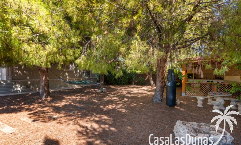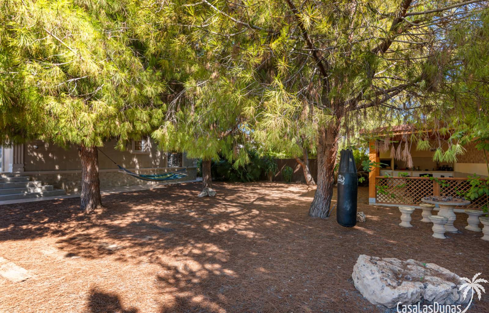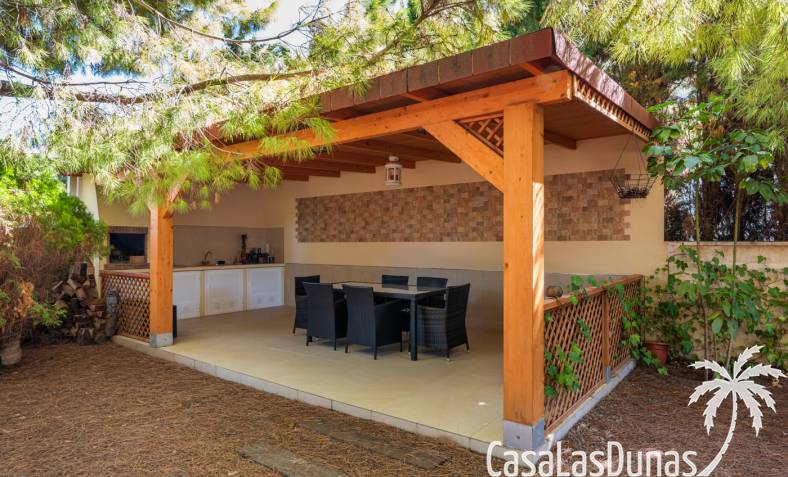 Het perceel is 882 m² groot en biedt een zoutwaterzwembad van 8 x 4 m, een buitenkeuken met barbecue en een kinderspeelplaats. Er is voldoende ruimte voor diverse zitjes en ligstoelen.