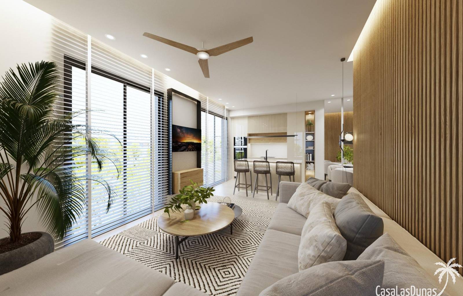 Het omvat wandel-en fietspaden, sportfaciliteiten, paddle-en tennisbanen, een mini-golfbaan, tuinen, honden parken, recreatiegebieden, clubhuis.... Ook in het centrale gebied is het juweel van het resort, een kristalhelder kunstmatig meer van bijna 17.000 m2 wateroppervlak, omgeven door witte zandstranden en palmbomen, die een stukje van het Caribisch gebied naar de regio Murcia brengen.