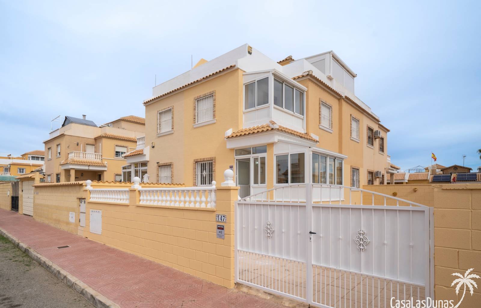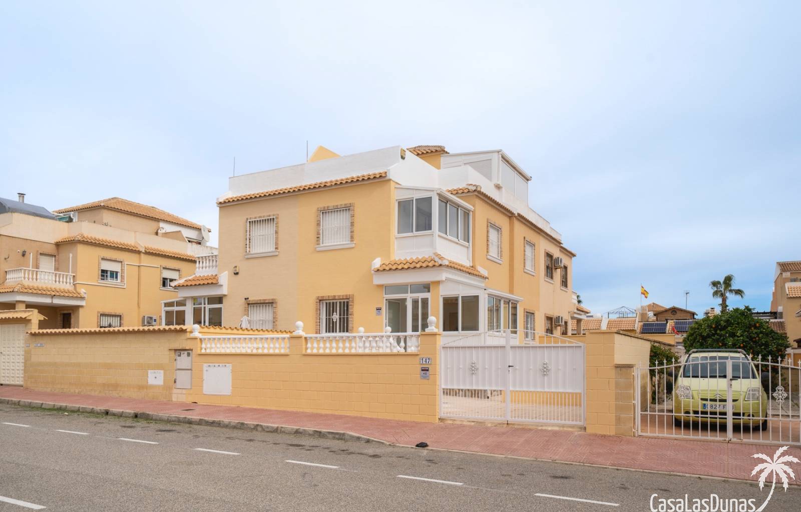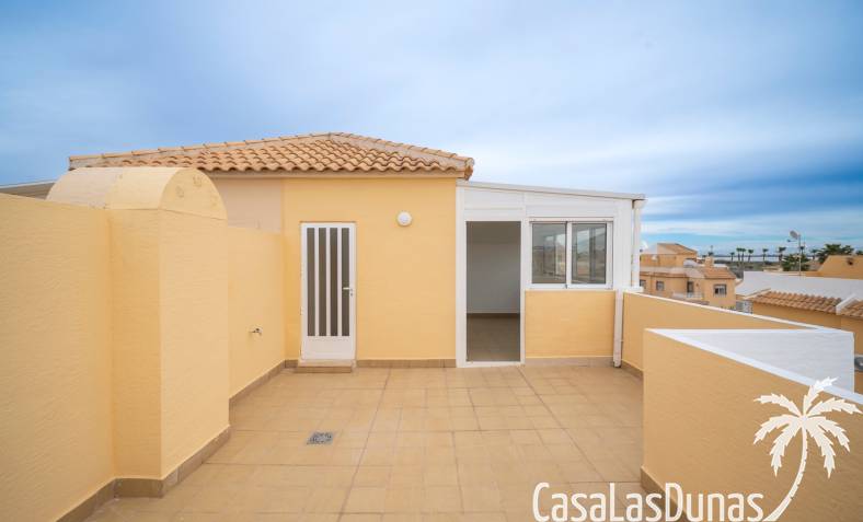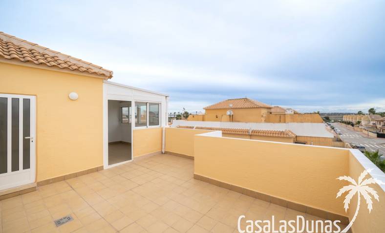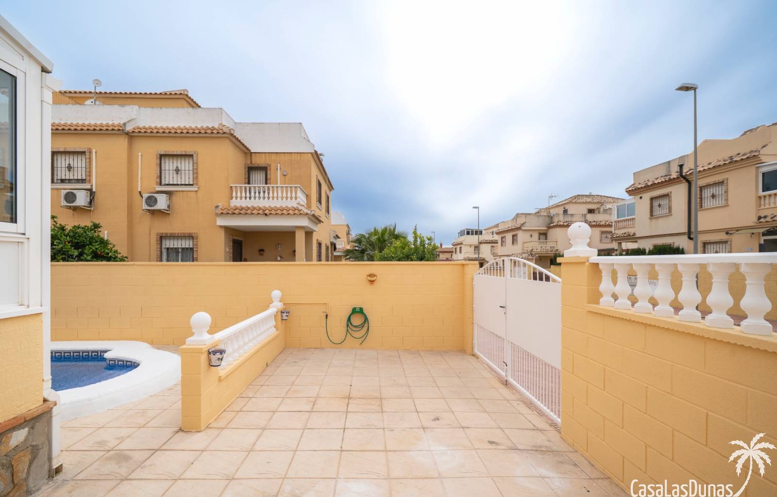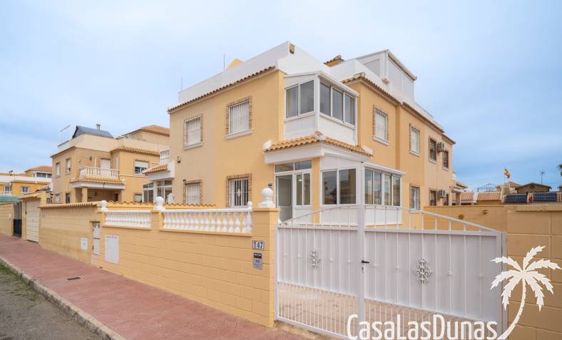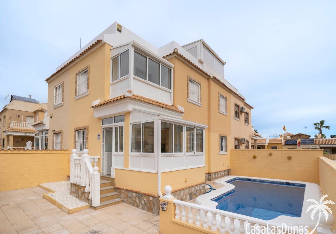 De woning is verdeeld over twee verdiepingen plus een solarium en ligt op een privéperceel met tuin en eigen zwembad, binnen een residentie met twee gemeenschappelijke zwembaden in Ciudad Quesada (Rojales).