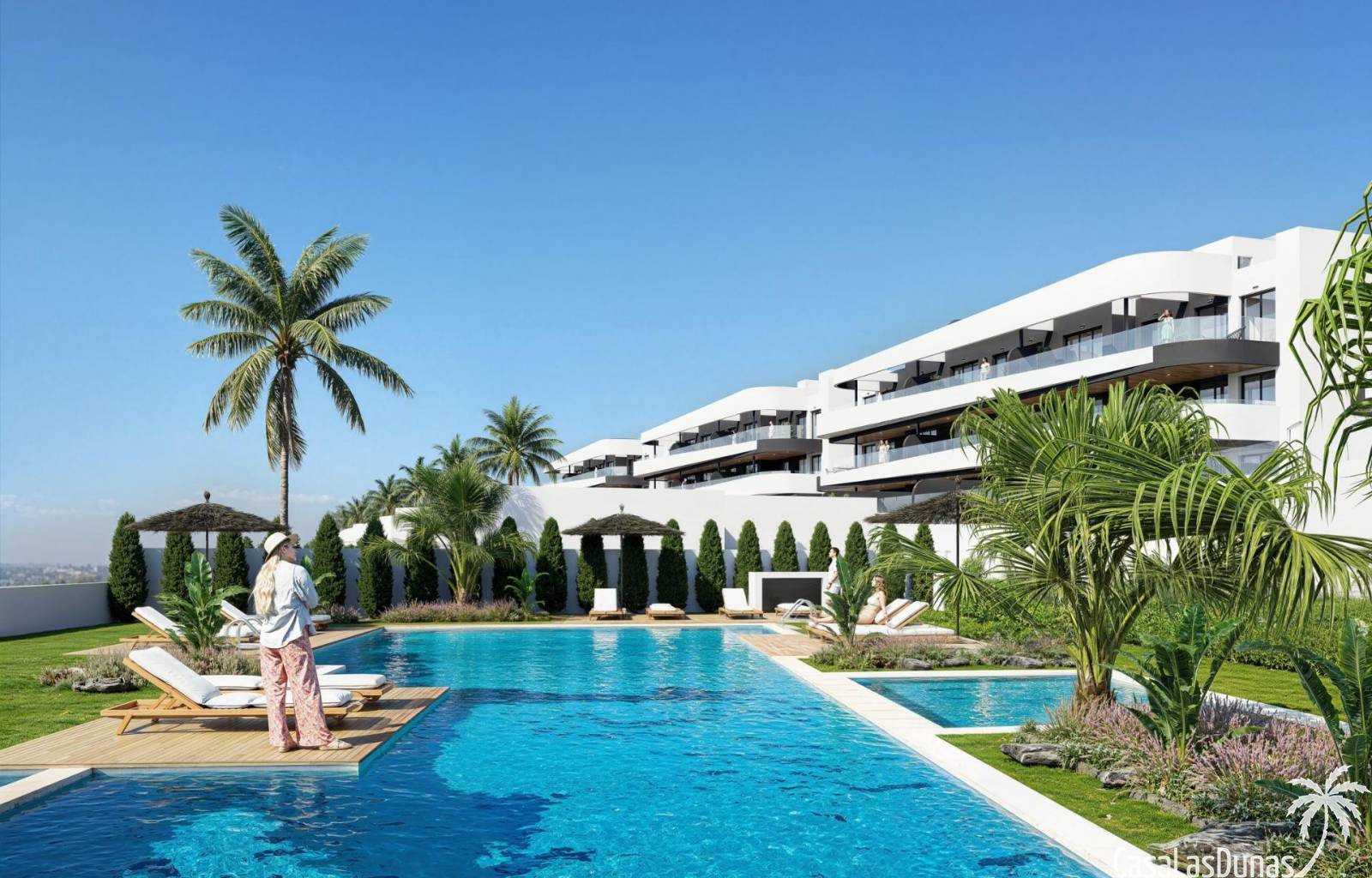 Appartementen op de begane grond beschikken over ruime terrassen met de mogelijkheid om een privézwembad toe te voegen. Woningen op de tussenverdiepingen bieden royale buitenterrassen, terwijl penthouses zijn voorzien van privé-zonneterrassen die ideaal zijn om te zonnen en buiten te dineren.