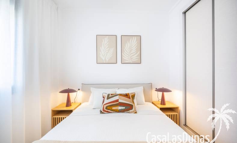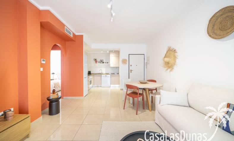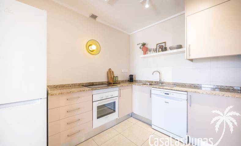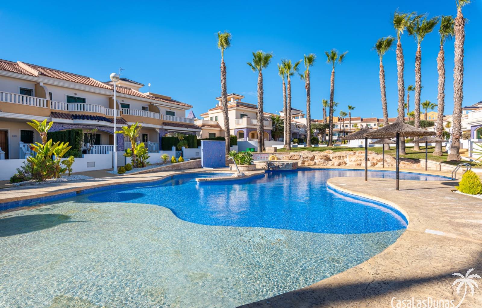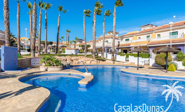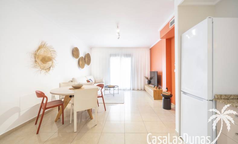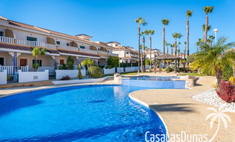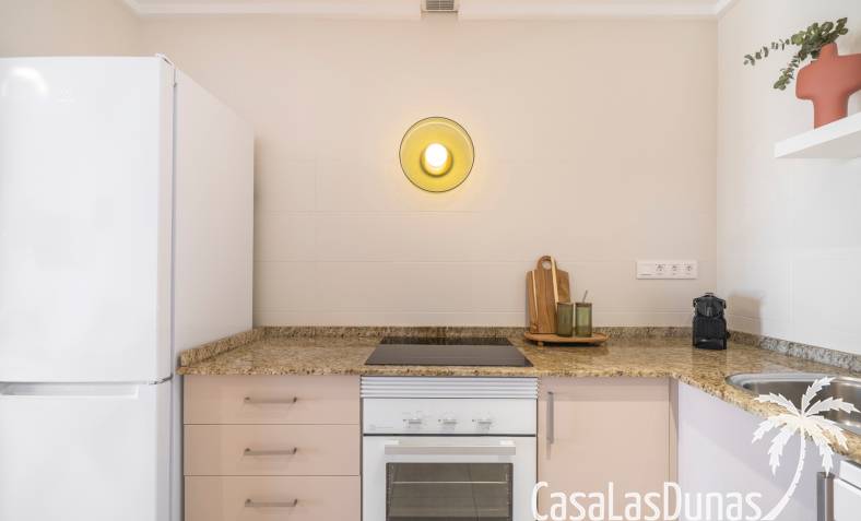 De prijs is inclusief een parkeerplaats in de ondergrondse garage. De urbanisatie biedt meerdere zwembaden, kinderbad en tuinen. Dicht bij voorzieningen in Doña Pepa.