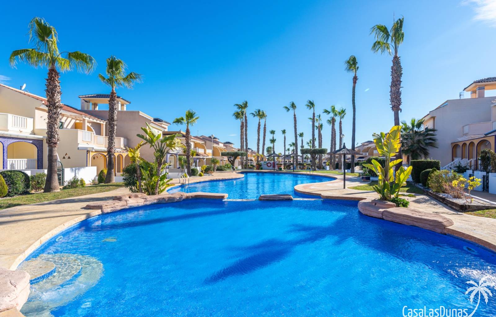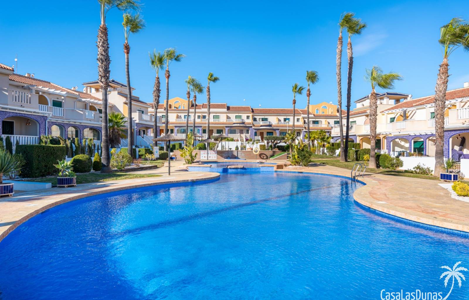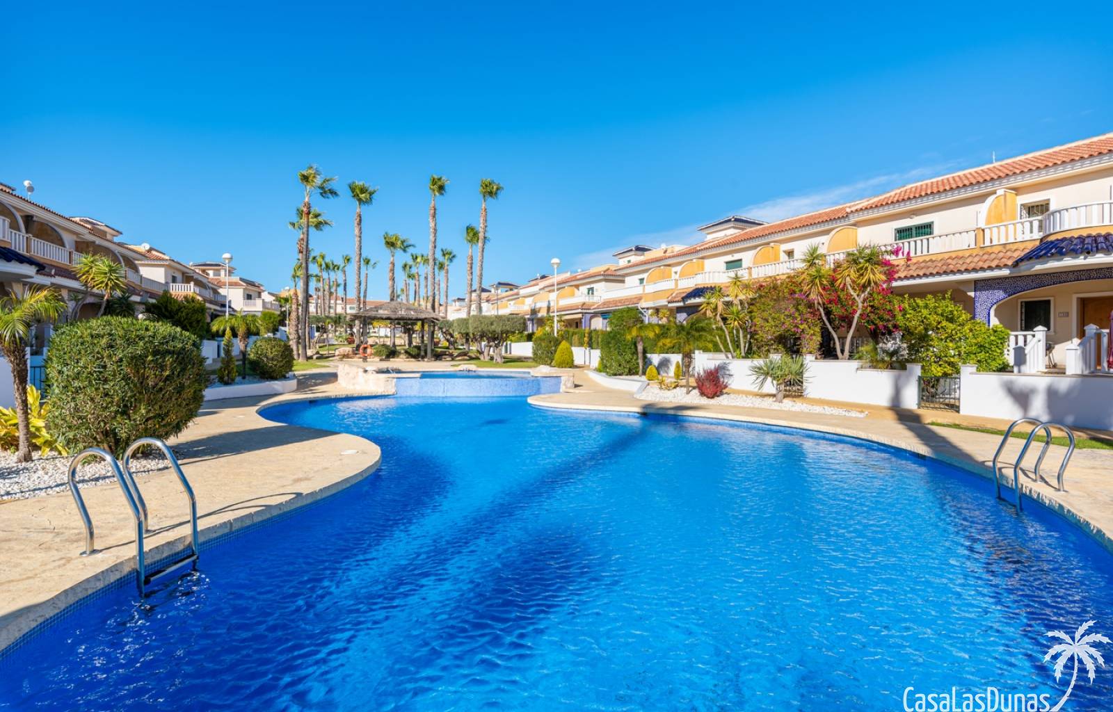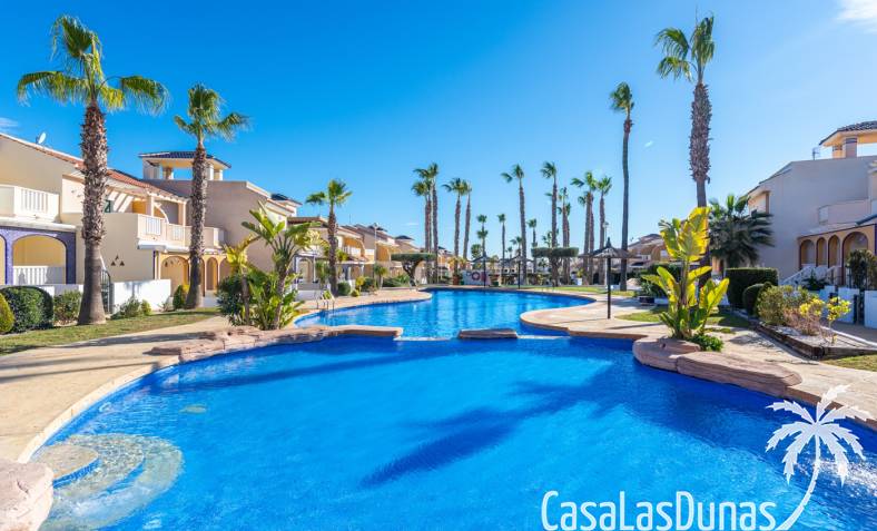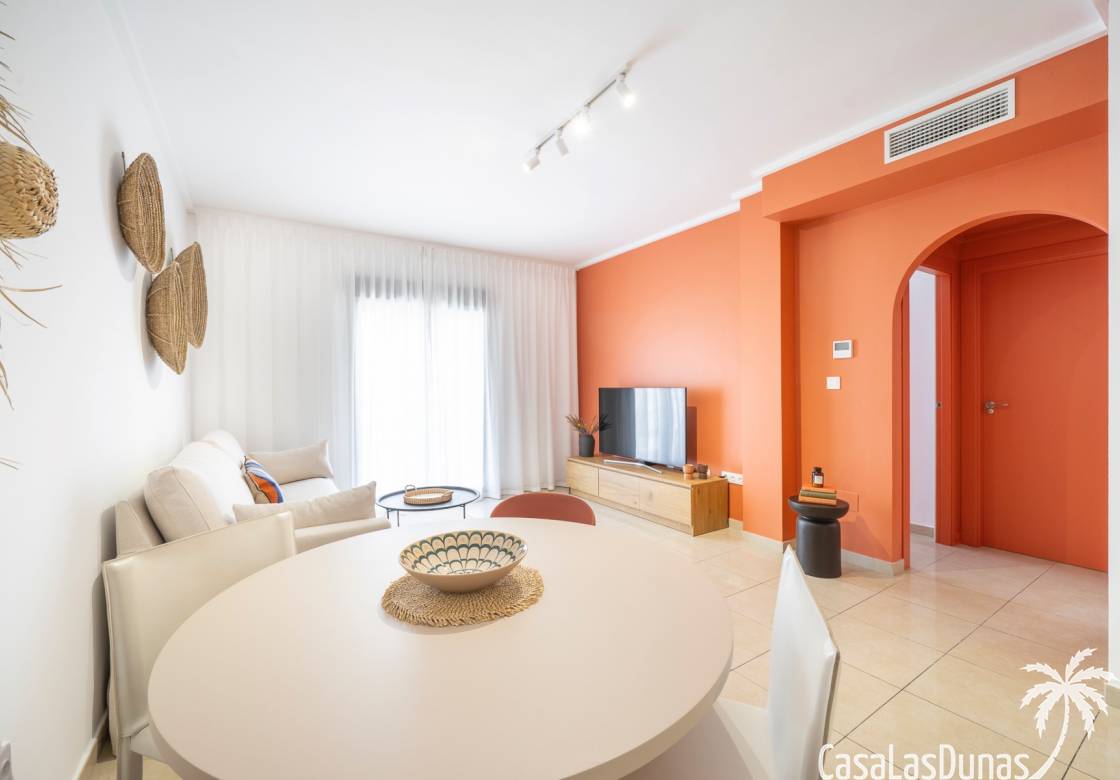 De prijs is inclusief een parkeerplaats in de ondergrondse garage. De urbanisatie biedt meerdere zwembaden, kinderbad en tuinen. Dicht bij voorzieningen in Doña Pepa.