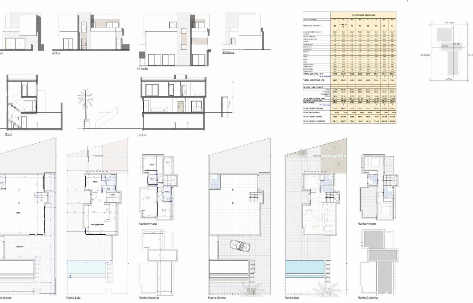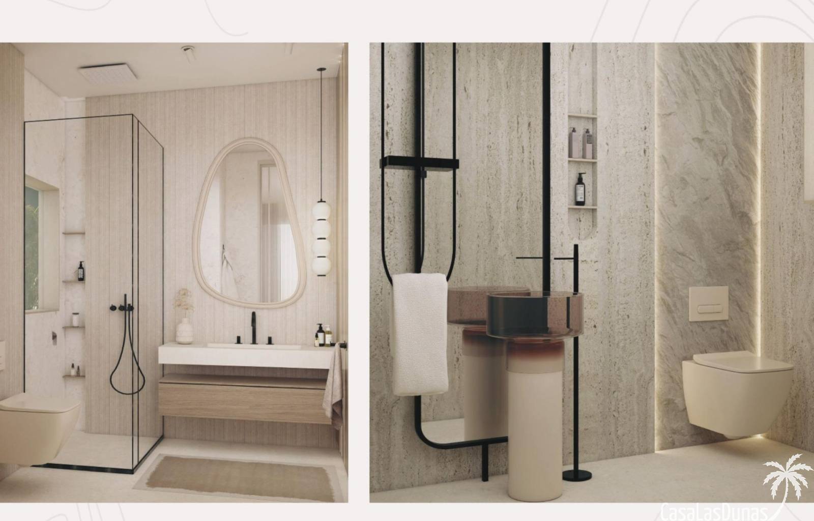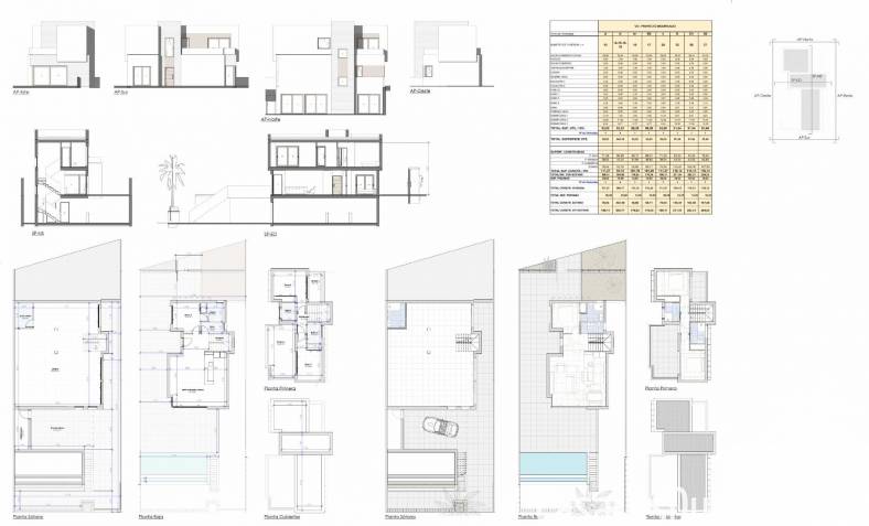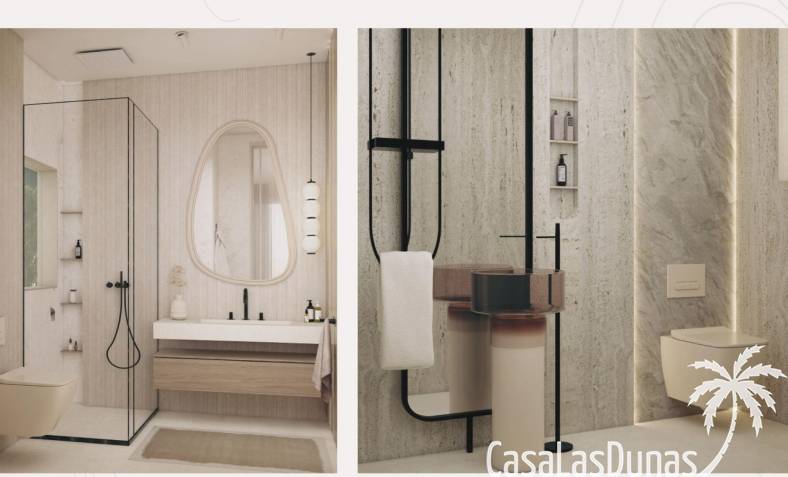 Elke villa beschikt over drie slaapkamers en vier badkamers, waarvan drie en suite, plus een extra gastentoilet. De woningen zijn verdeeld over drie verdiepingen en ontworpen om comfort en veelzijdigheid te maximaliseren.
