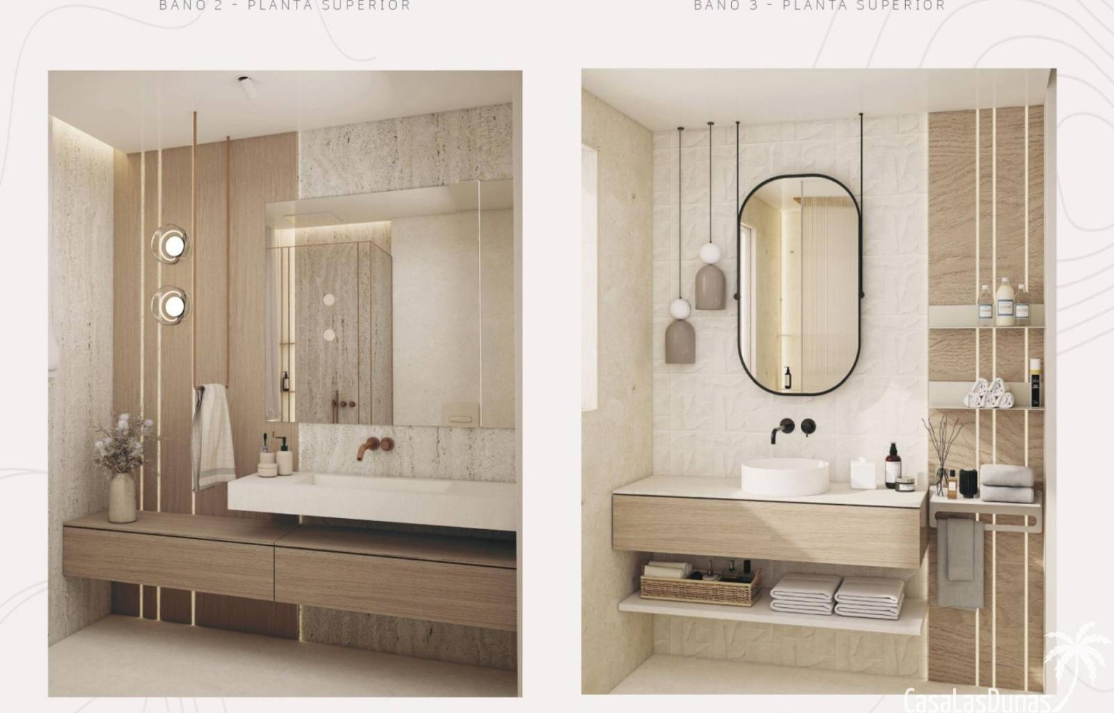 De bovenverdieping omvat twee extra slaapkamers met en-suite badkamers en toegang tot privéterrassen met prachtig vrij uitzicht.