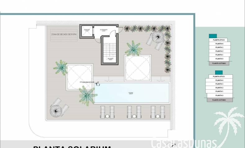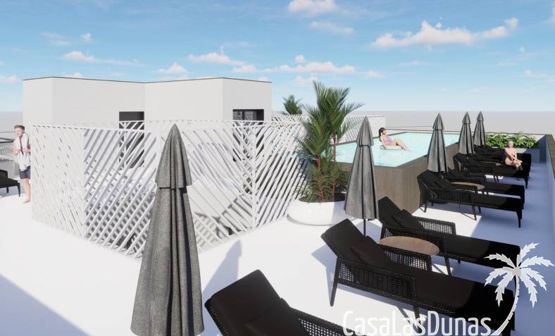 Op het dak kunnen bewoners genieten van een gemeenschappelijk solarium met een ontspannende lounge en een zwembad, perfect om het hele jaar door van de zon en de zeewind te genieten.
