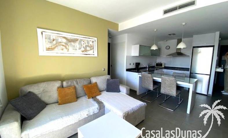 In het gezellige dorpje La Mata, aan de Costa Blanca, bevindt zich dit prachtige appartement Aqua Nature-1-2C. Dit appartement is modern en voorzien van al het nodige comfort die u zich mag wensen. Het appartement bestaat uit 2 slaapkamers, 2 badkamers en een volledig ingerichte keuken met een Dolce Gusto koffiemachine. Eén slaapkamer met en suite badkamer heeft een tweepersoonsbed van 150 x 200 cm en in de andere slaapkamer staan twee eenpersoonsbedden die desgewenst tegen elkaar kunnen worden geschoven. Doordat dit appartement is voorzien van glazen panelen die open en dicht kunnen, is het appartement ook ideaal voor de wintermaanden!