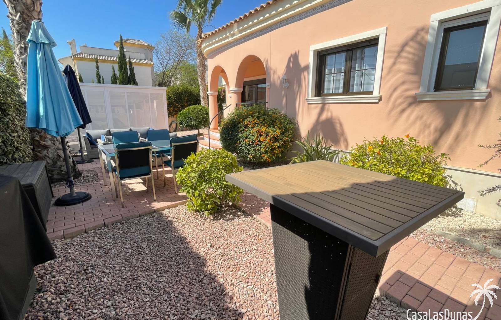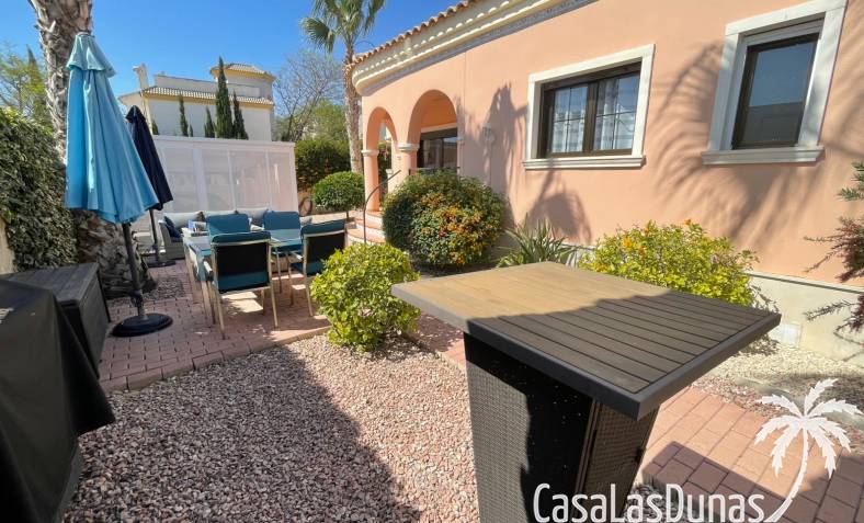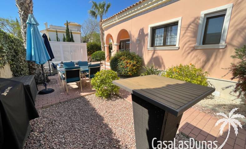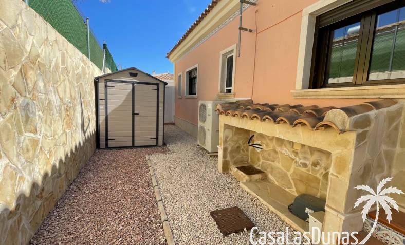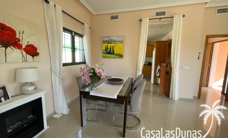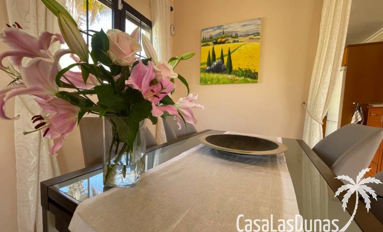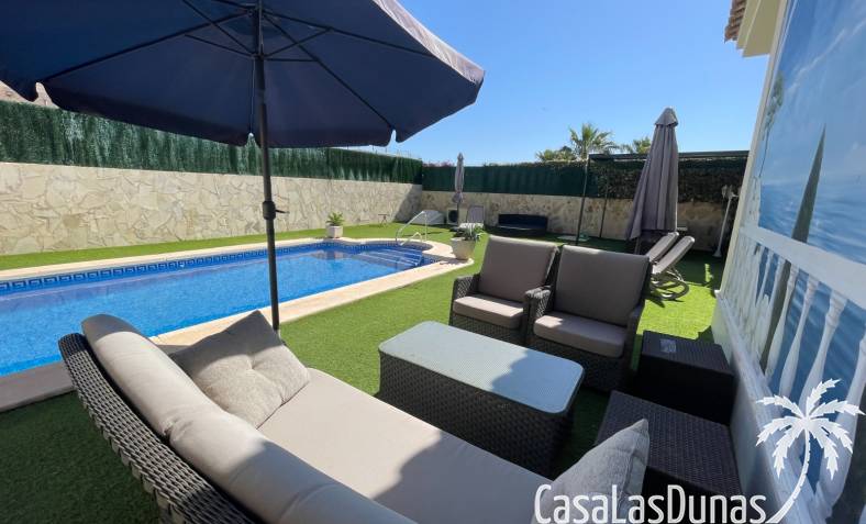 Villa Marina, gelegen in de charmante urbanisatie La Marina in San Fulgencio, biedt een oase van rust en luxe voor iedereen die op zoek is naar een unieke vakantiebestemming. Deze betoverende woning is omgeven door een overvloed aan weelderige groene struiken. Dit zorgt ervoor dat u kunt genieten van volledige privacy, zodat u zich kunt onderdompelen in uw eigen paradijs zonder gestoord te worden door de buitenwereld. Het hoogtepunt van deze villa is zonder twijfel het prachtige privézwembad, dat perfect is voor een verfrissende duik op elk moment van de dag, terwijl u zich koestert in de warme stralen van de Spaanse zon.