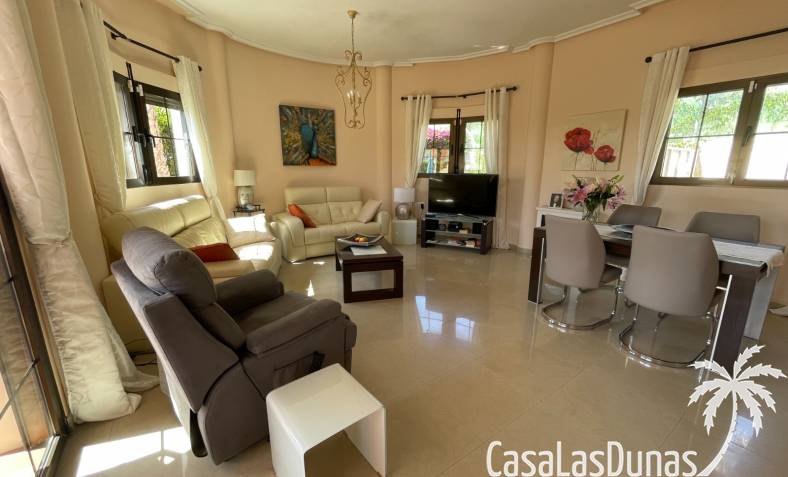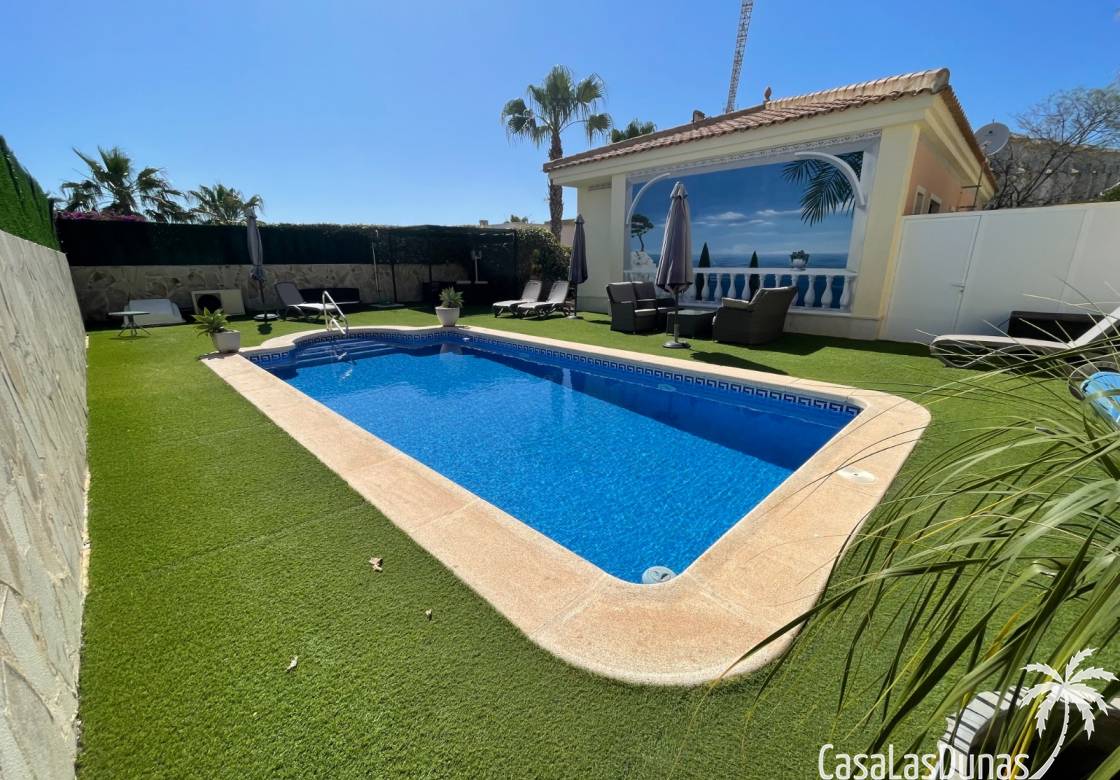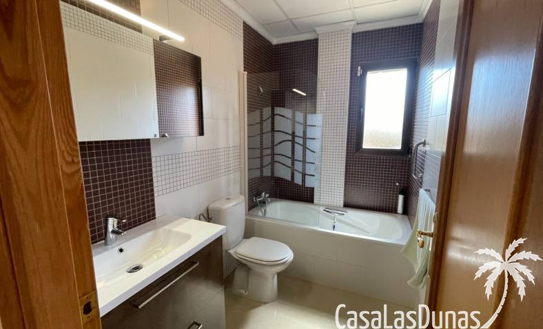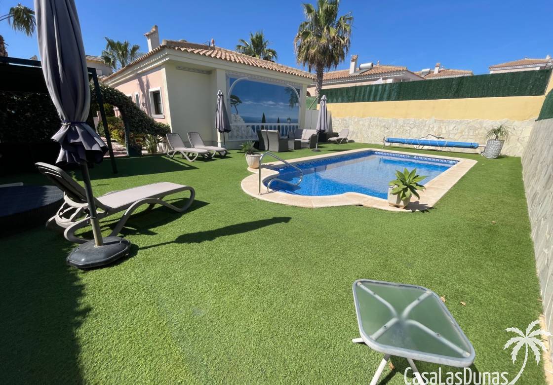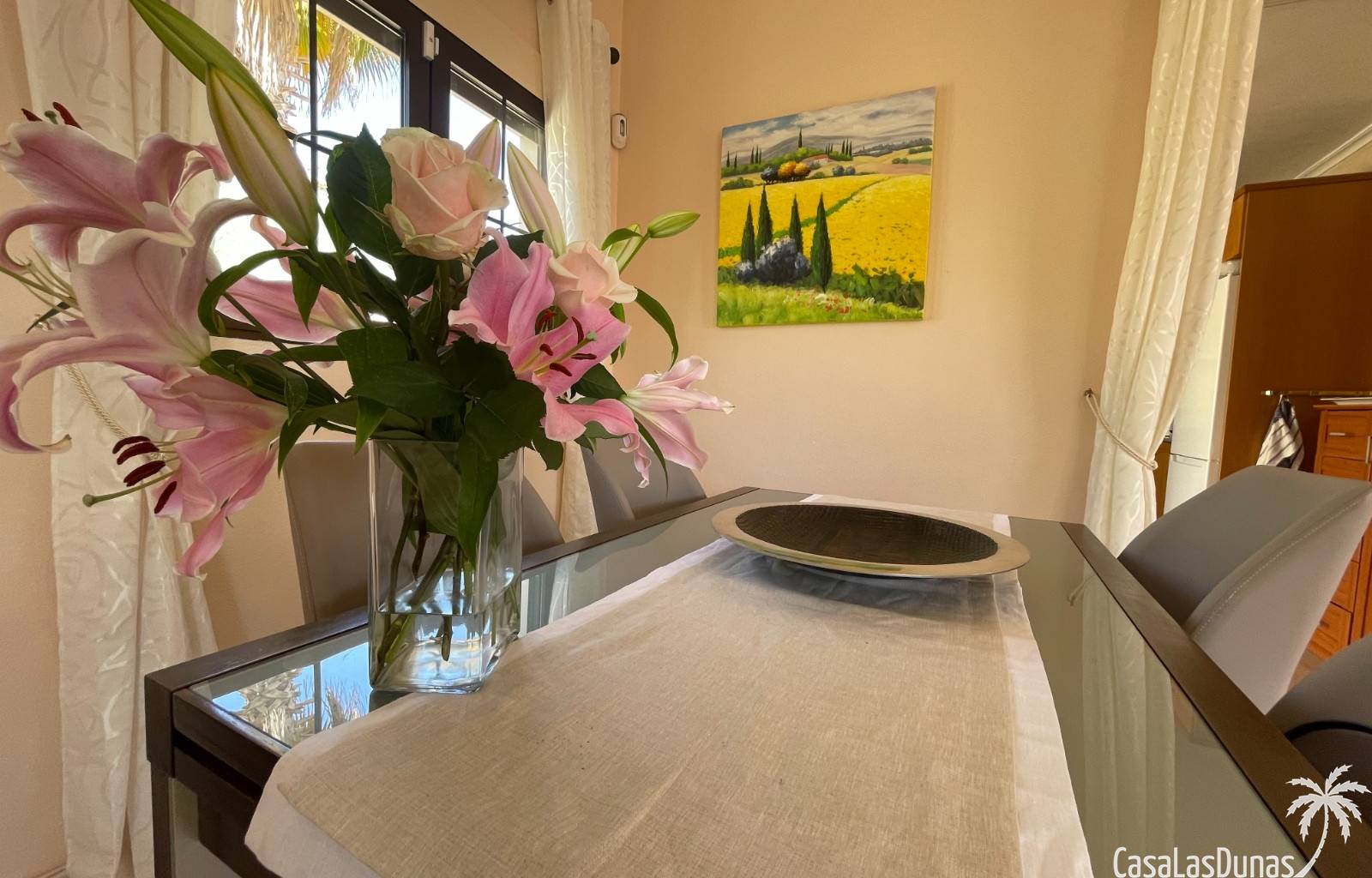Villa Marina, gelegen in de charmante urbanisatie La Marina in San Fulgencio, biedt een oase van rust en luxe voor iedereen die op zoek is naar een unieke vakantiebestemming. Deze betoverende woning is omgeven door een overvloed aan weelderige groene struiken. Dit zorgt ervoor dat u kunt genieten van volledige privacy, zodat u zich kunt onderdompelen in uw eigen paradijs zonder gestoord te worden door de buitenwereld. Het hoogtepunt van deze villa is zonder twijfel het prachtige privézwembad, dat perfect is voor een verfrissende duik op elk moment van de dag, terwijl u zich koestert in de warme stralen van de Spaanse zon.